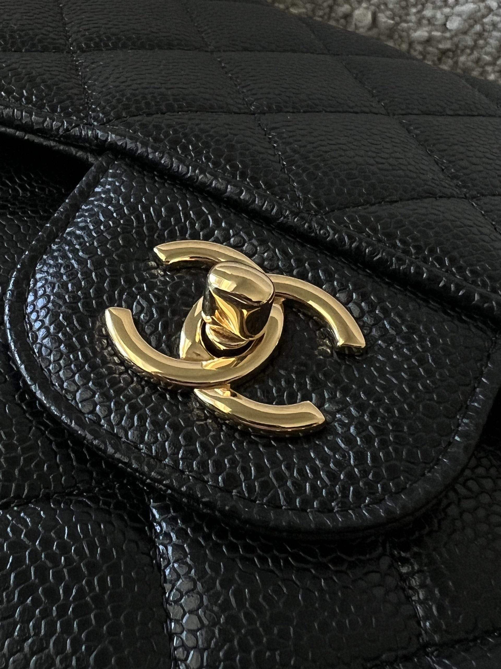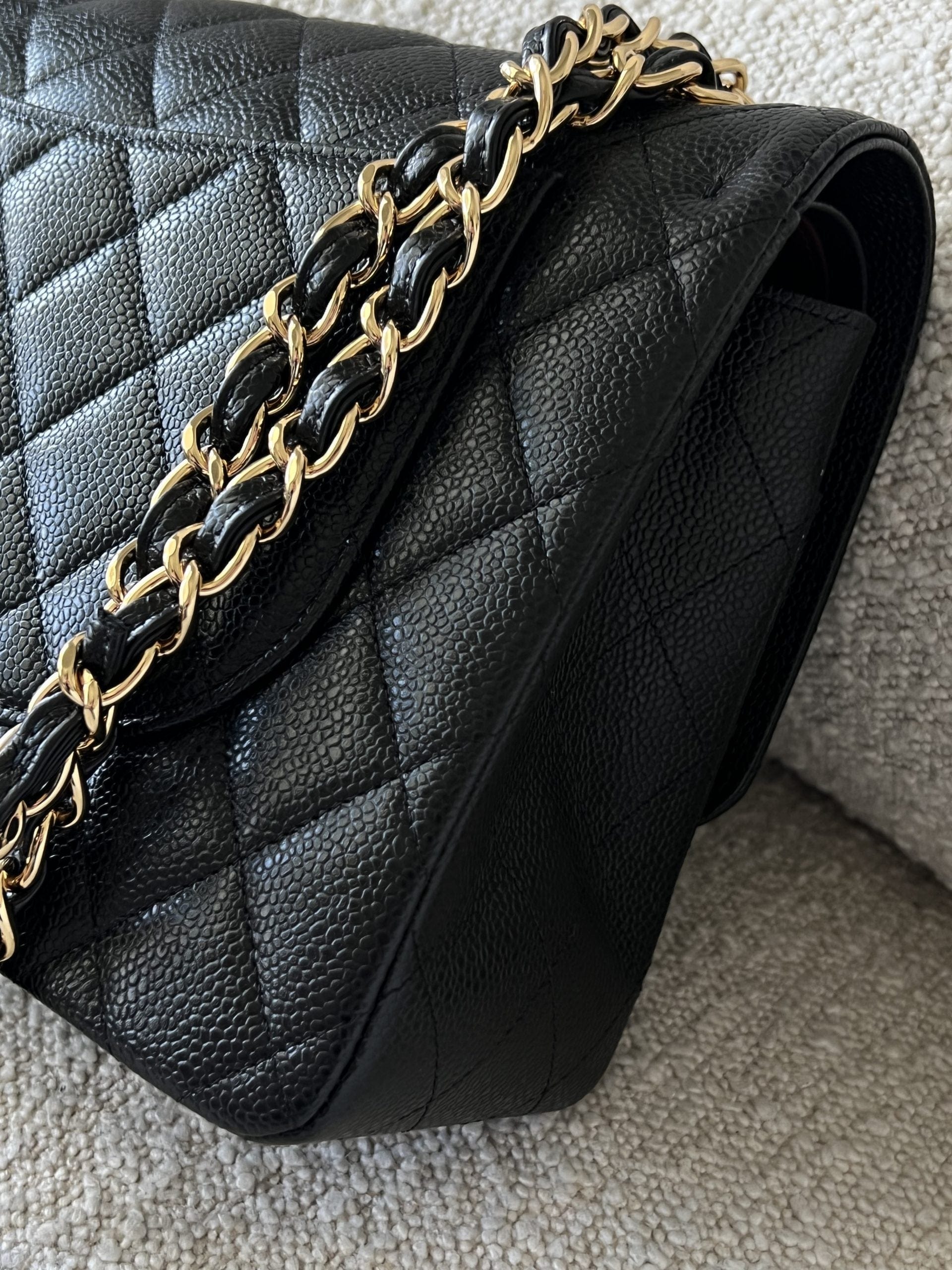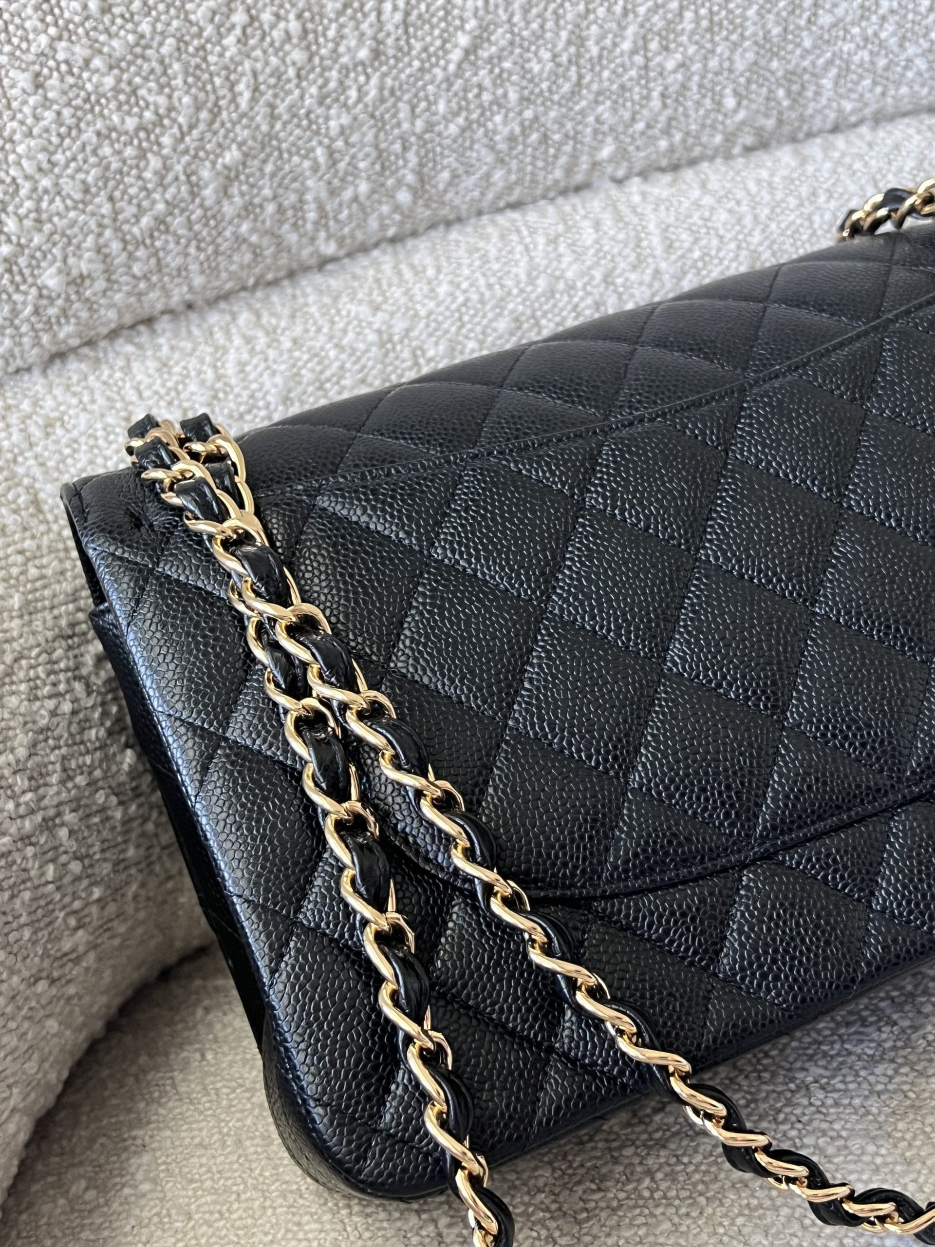 Chanel Black Caviar Quilted Jumbo Classic Flap GHW