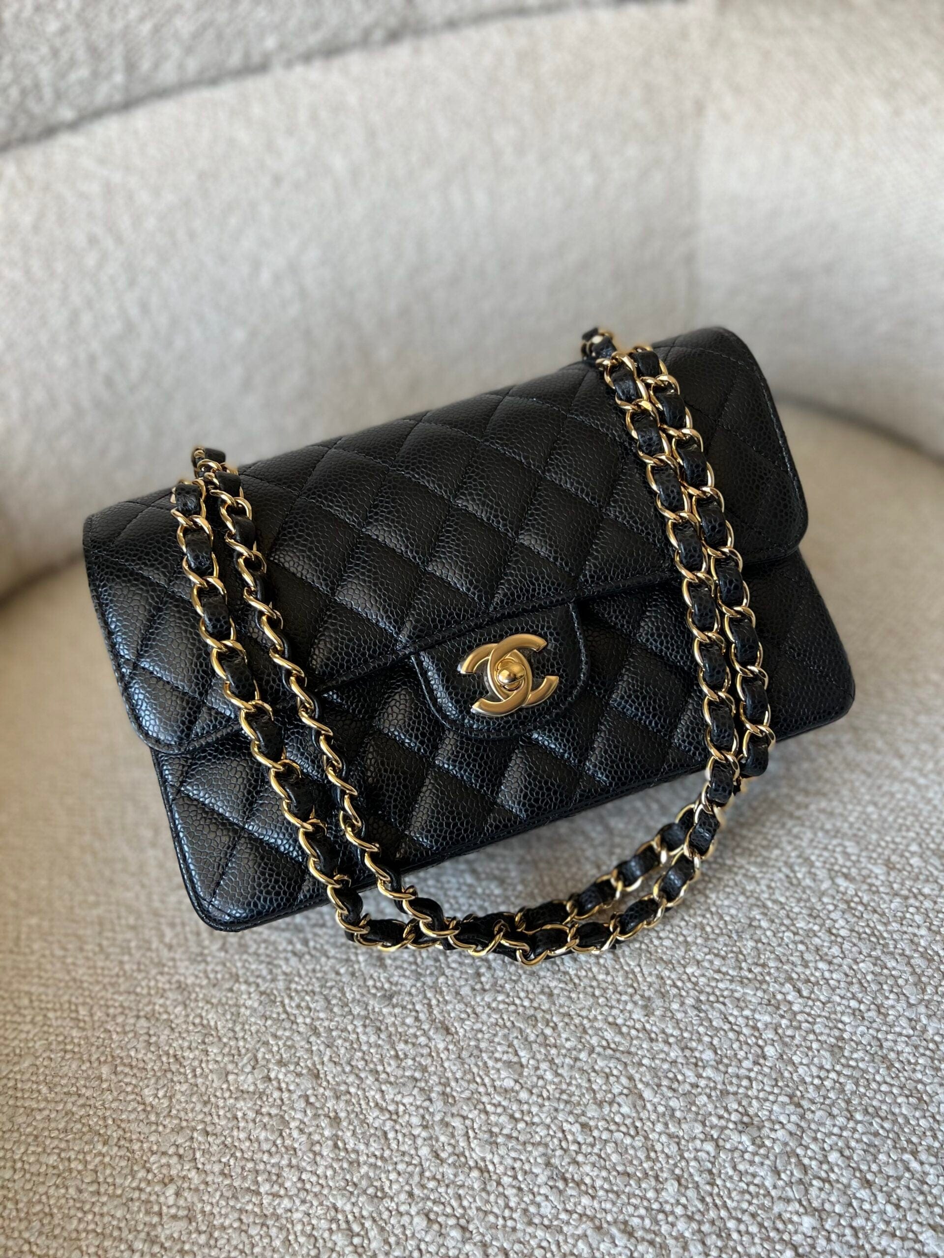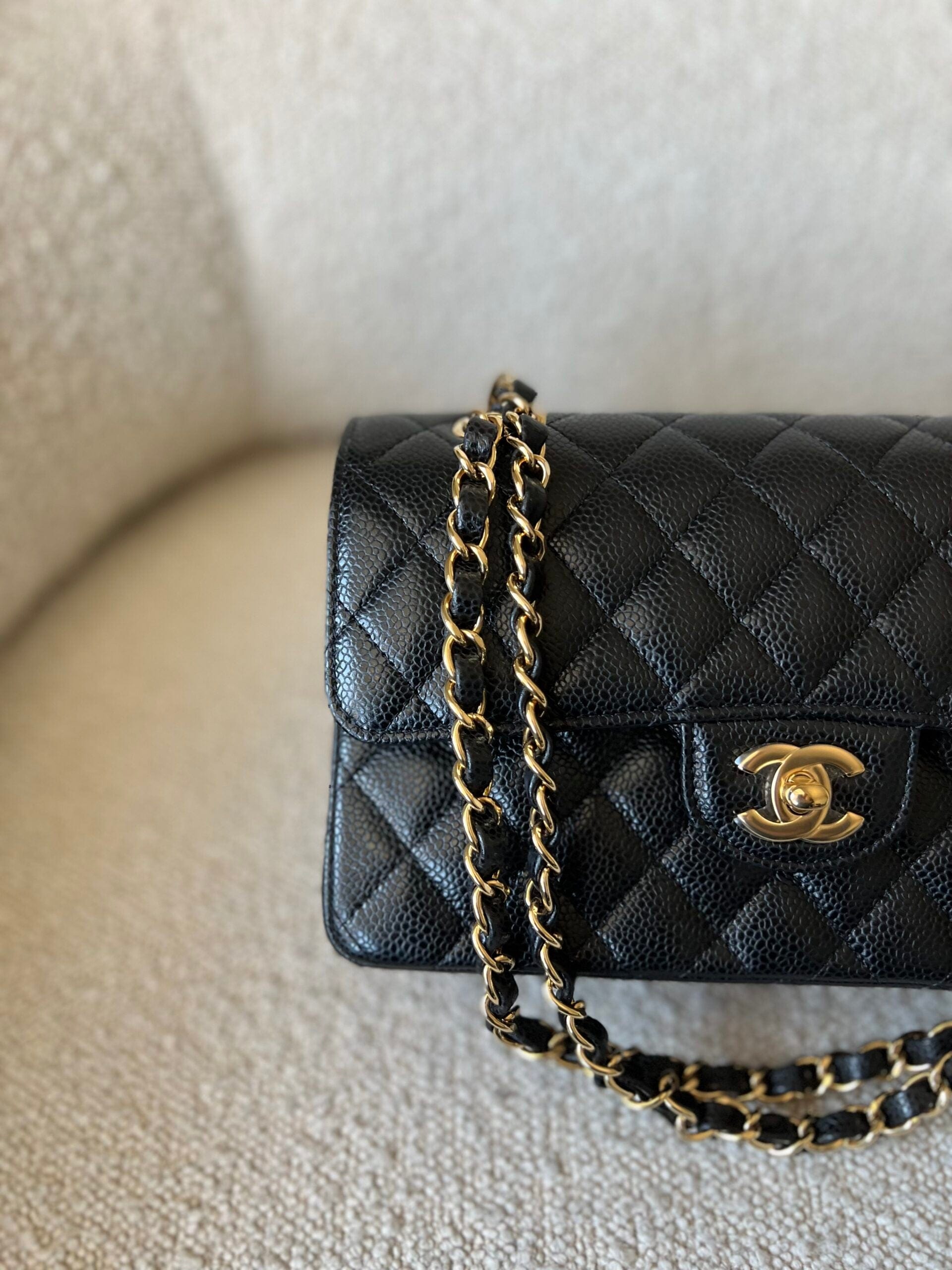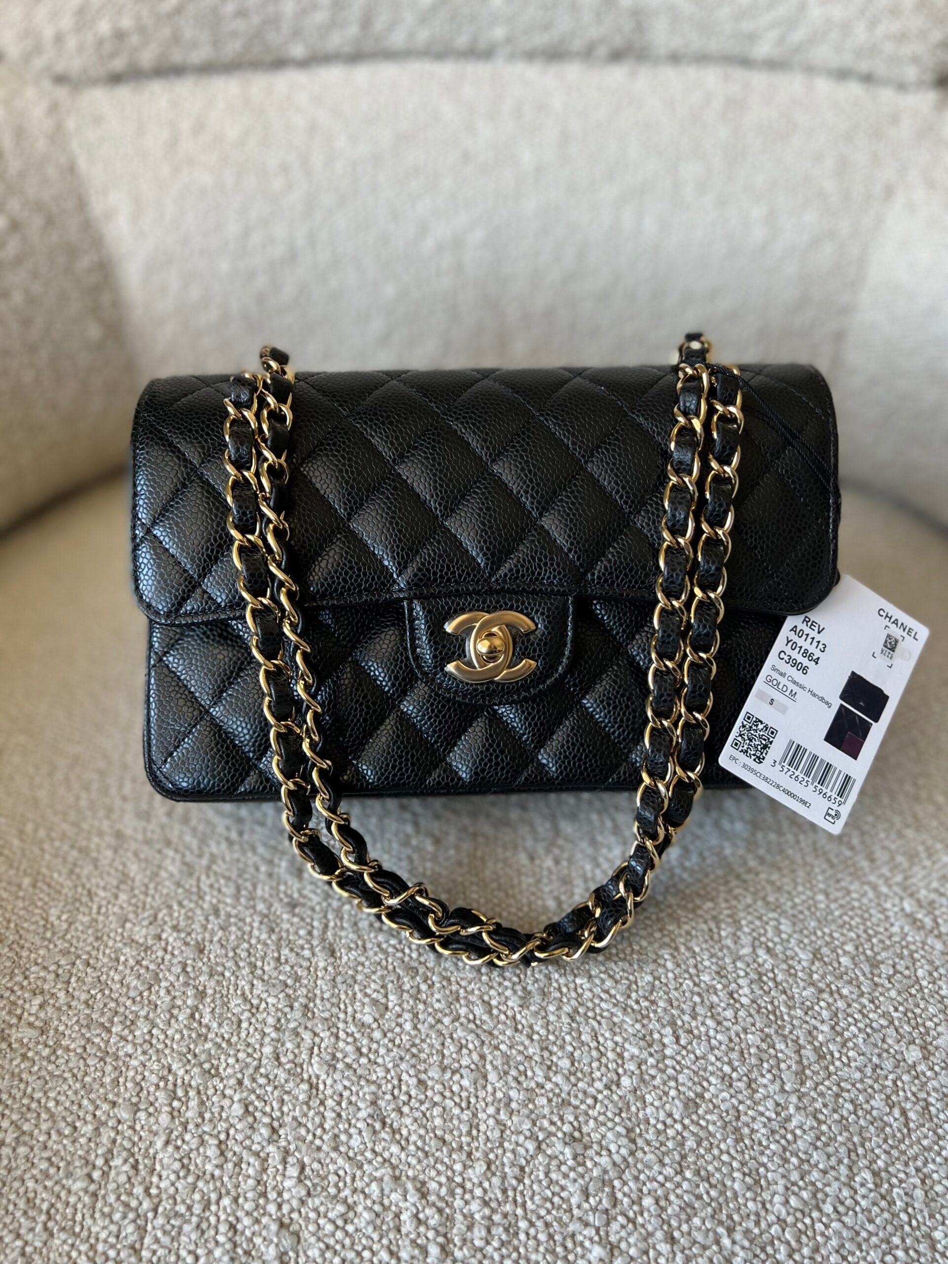 Chanel Black Caviar Quilted Classic Flap Small Gold Hardware