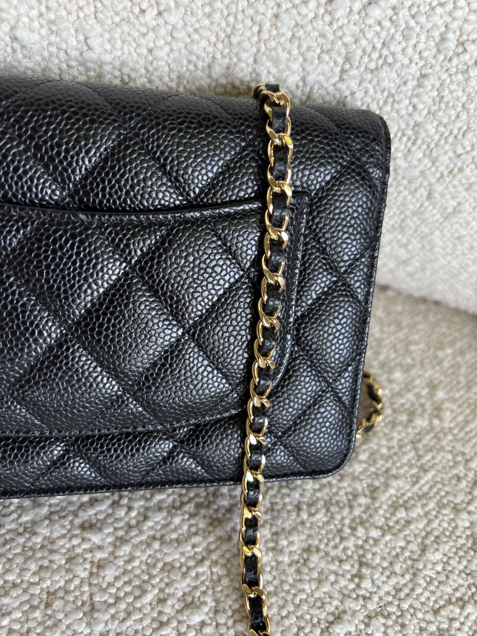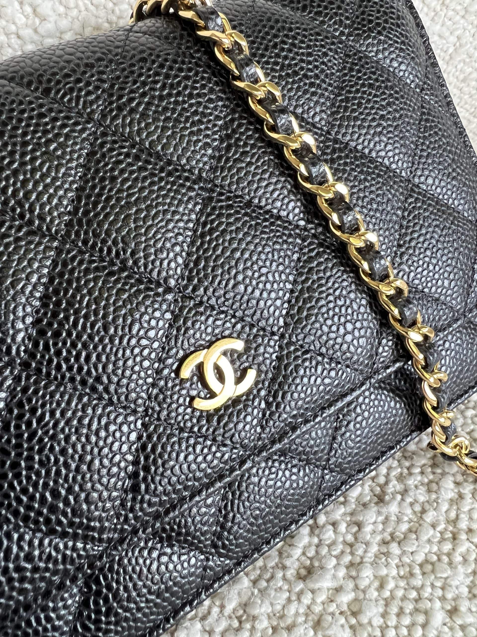 Chanel Black Caviar Quilted Wallet On Chain GHW (WOC)