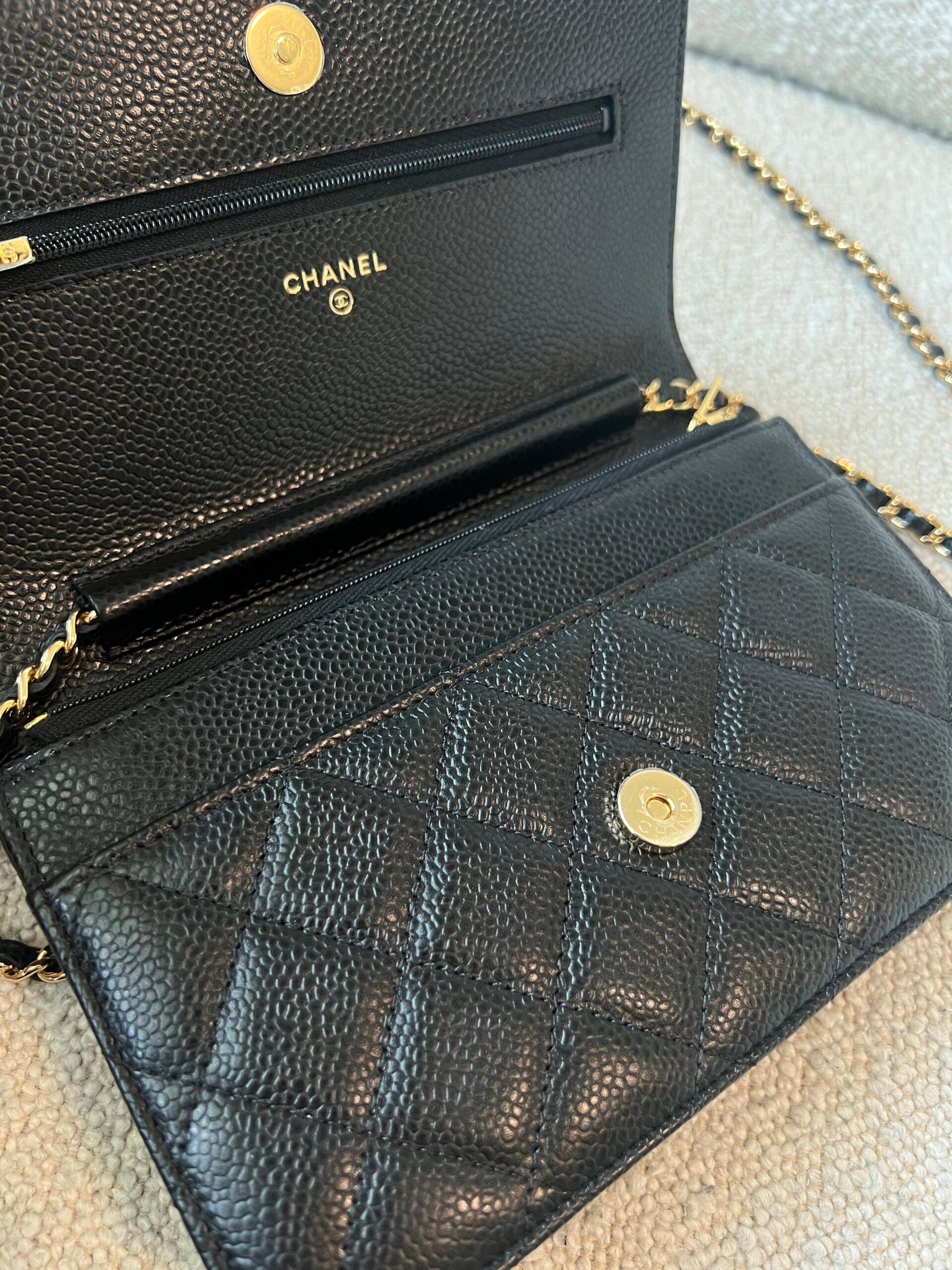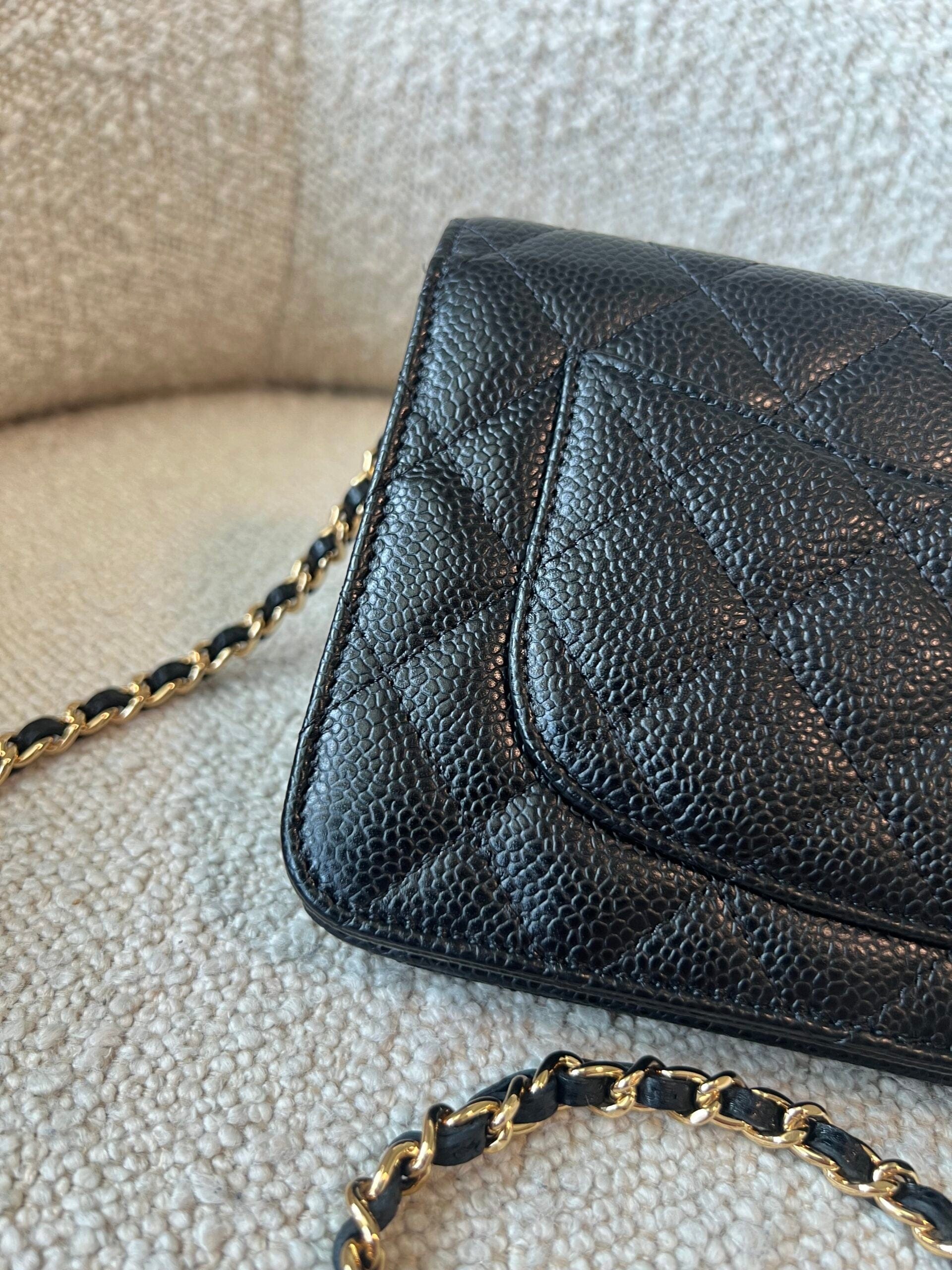 Chanel Black Caviar Quilted Wallet On Chain GHW (WOC)