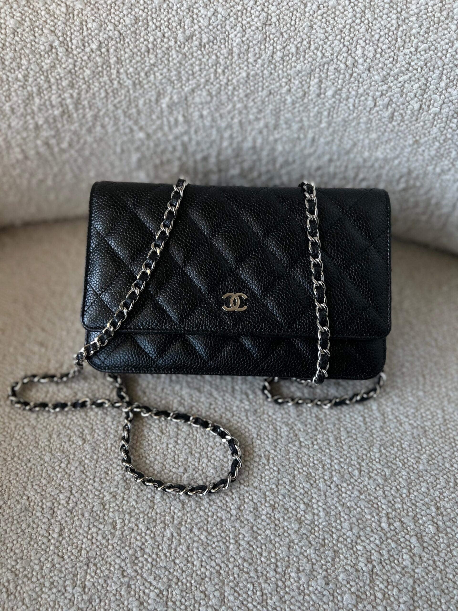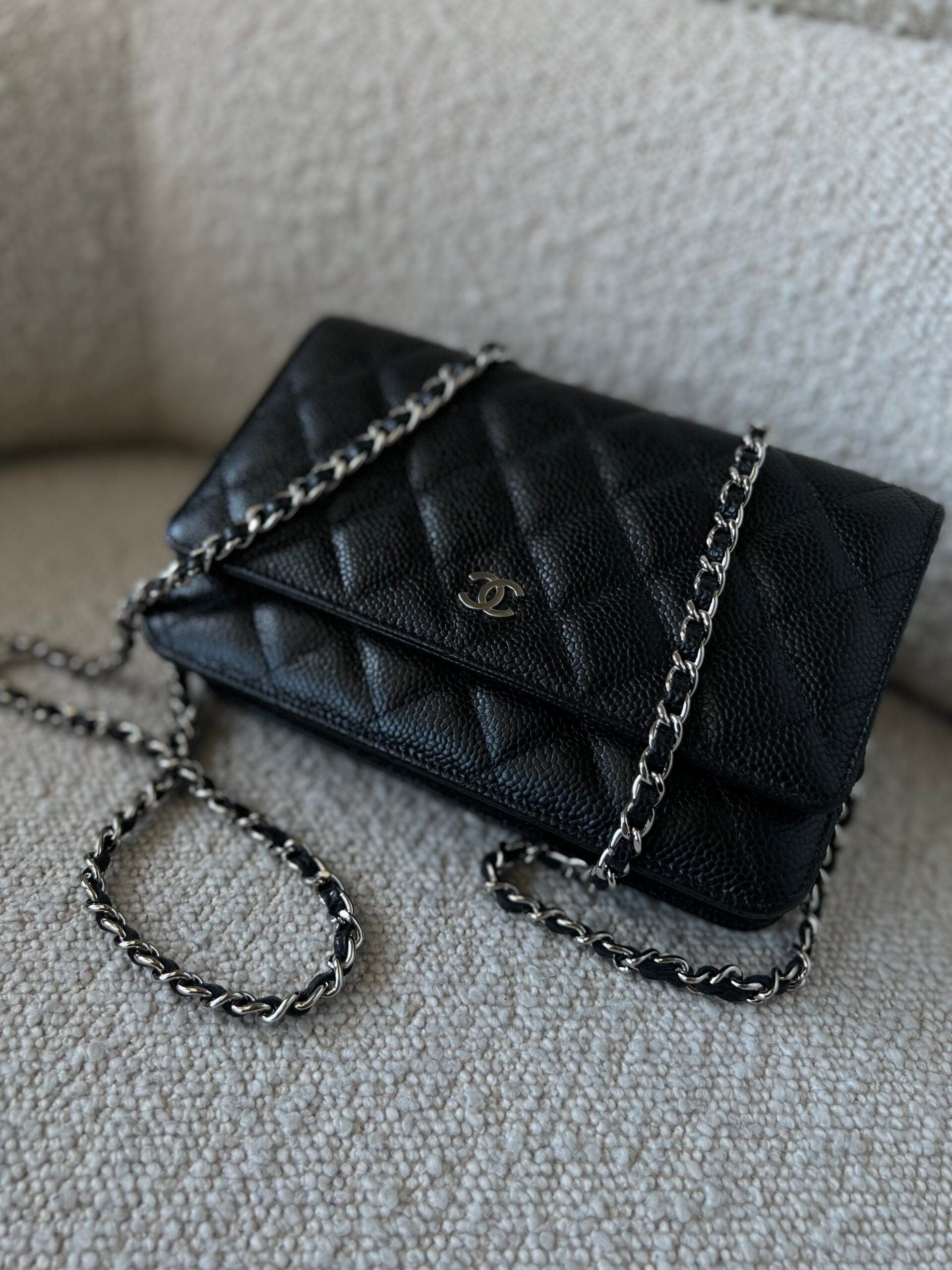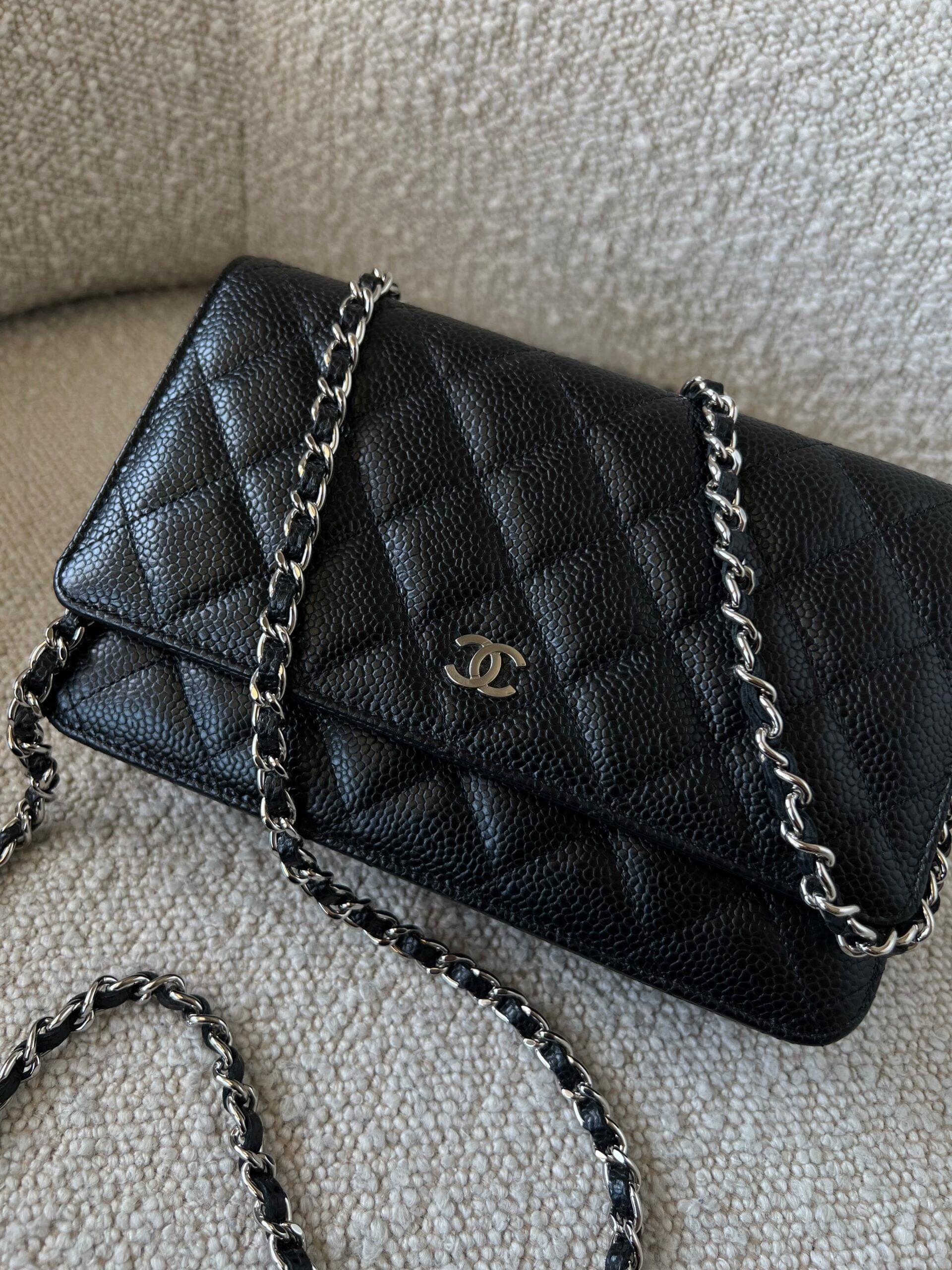 Chanel Black Caviar Quilted Wallet On Chain Silver Hardware (WOC)