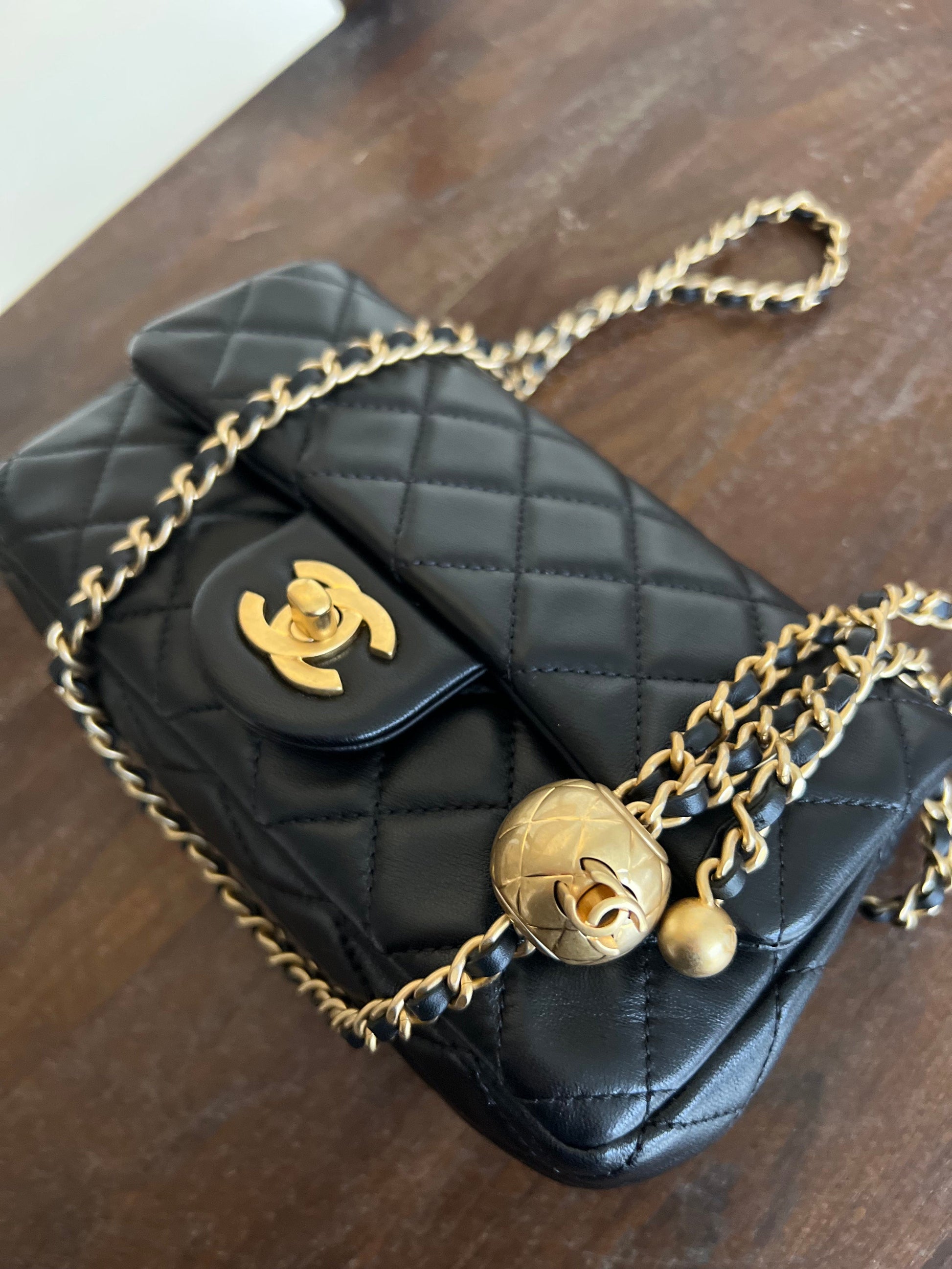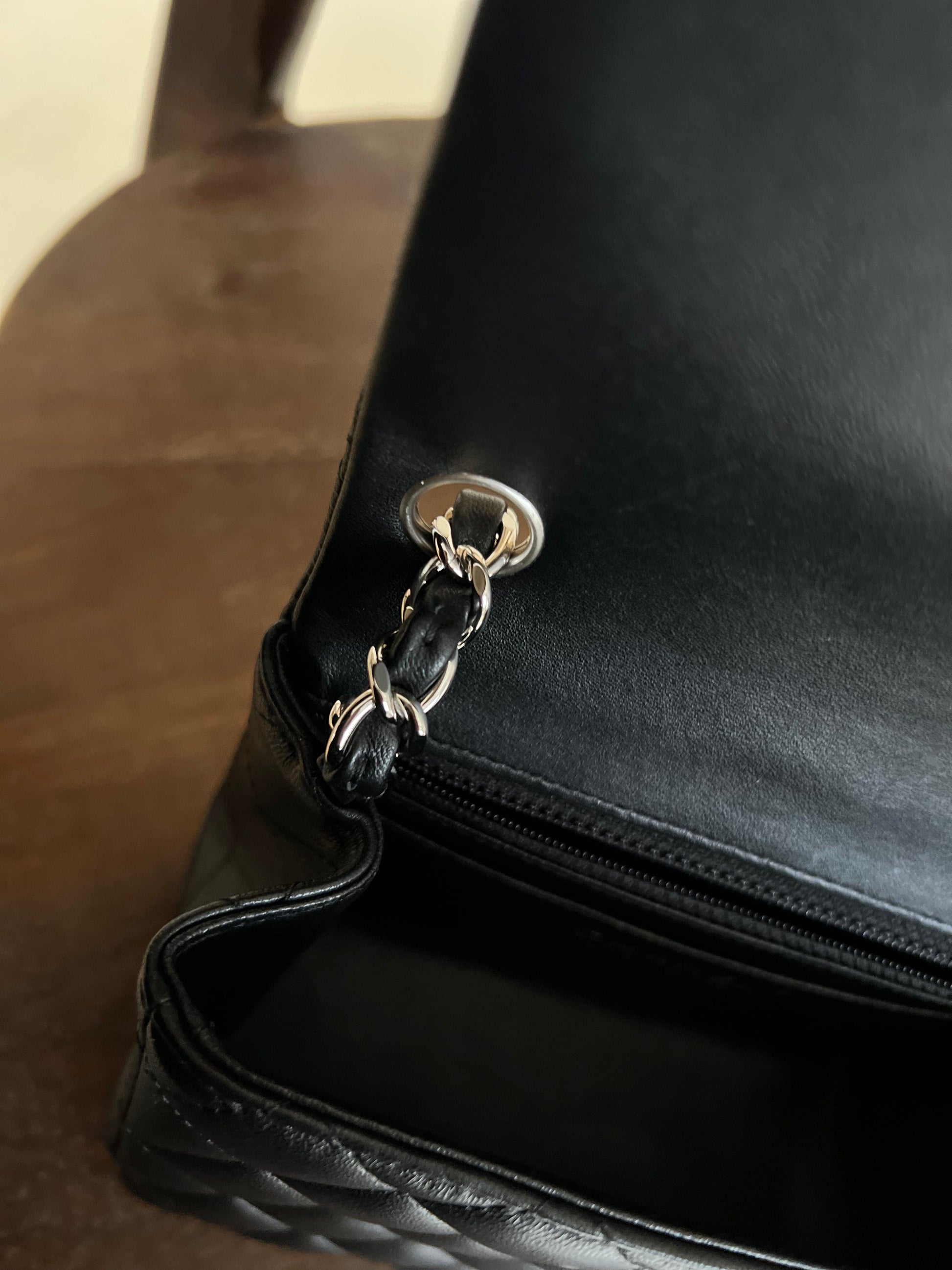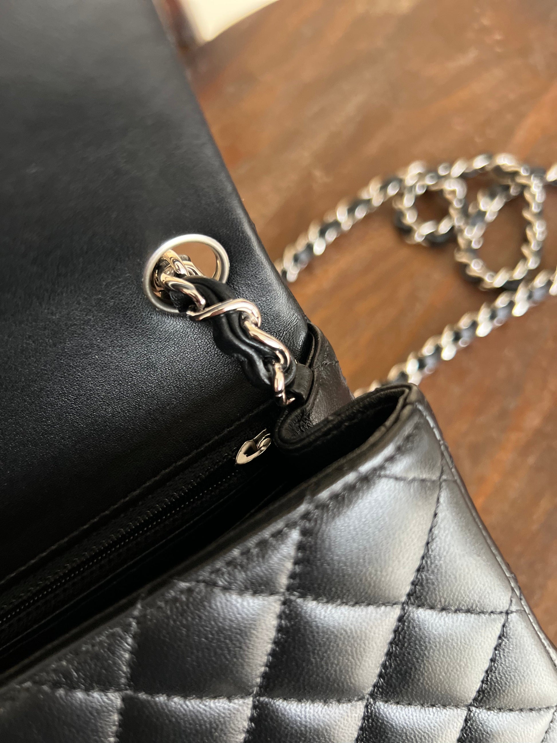 CHANEL BLACK MINI SQUARE LAMBSKIN QUILTED FLAP SILVER HARDWARE