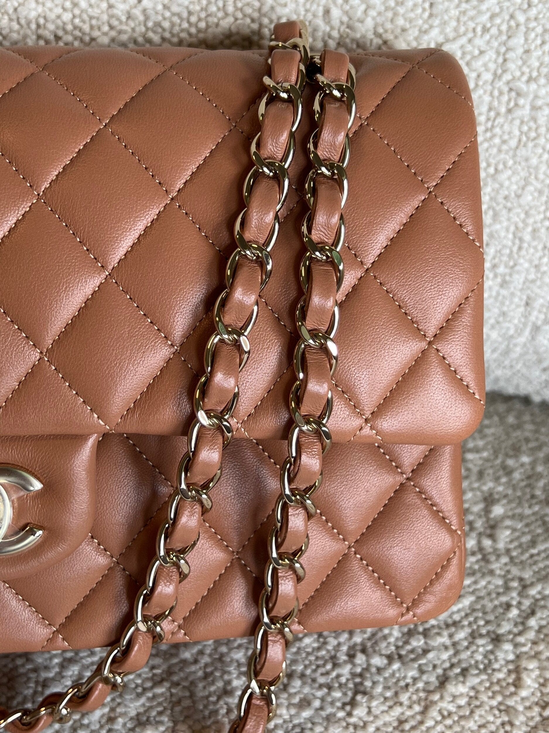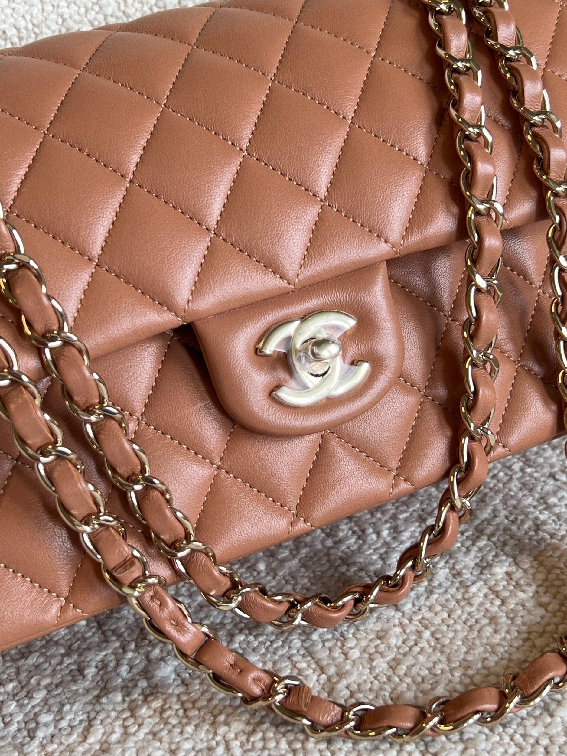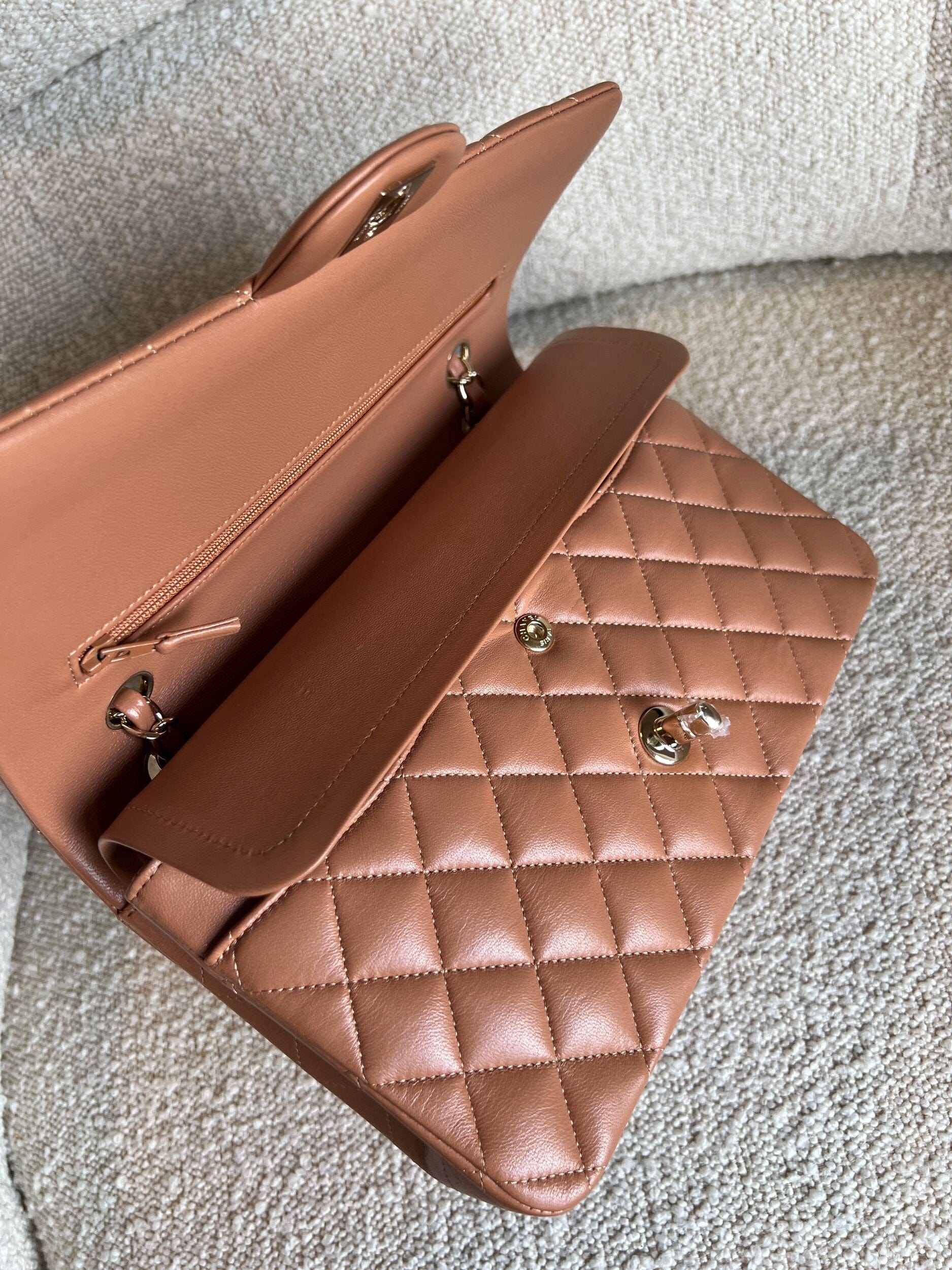 Chanel Caramel Lambskin Quilted Classic Flap Medium LGHW