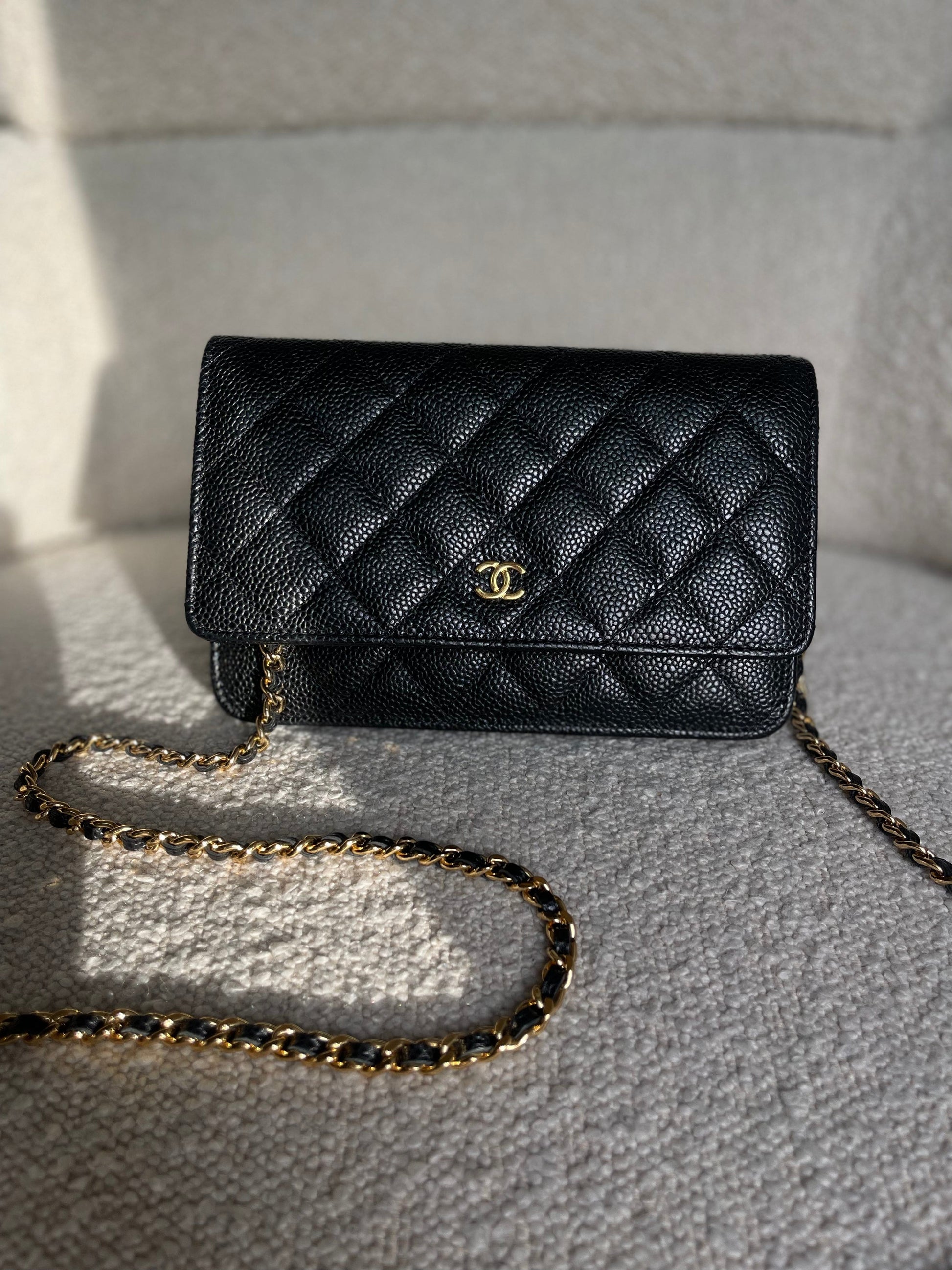 Chanel Black Caviar Quilted Wallet on Chain WOC GHW
