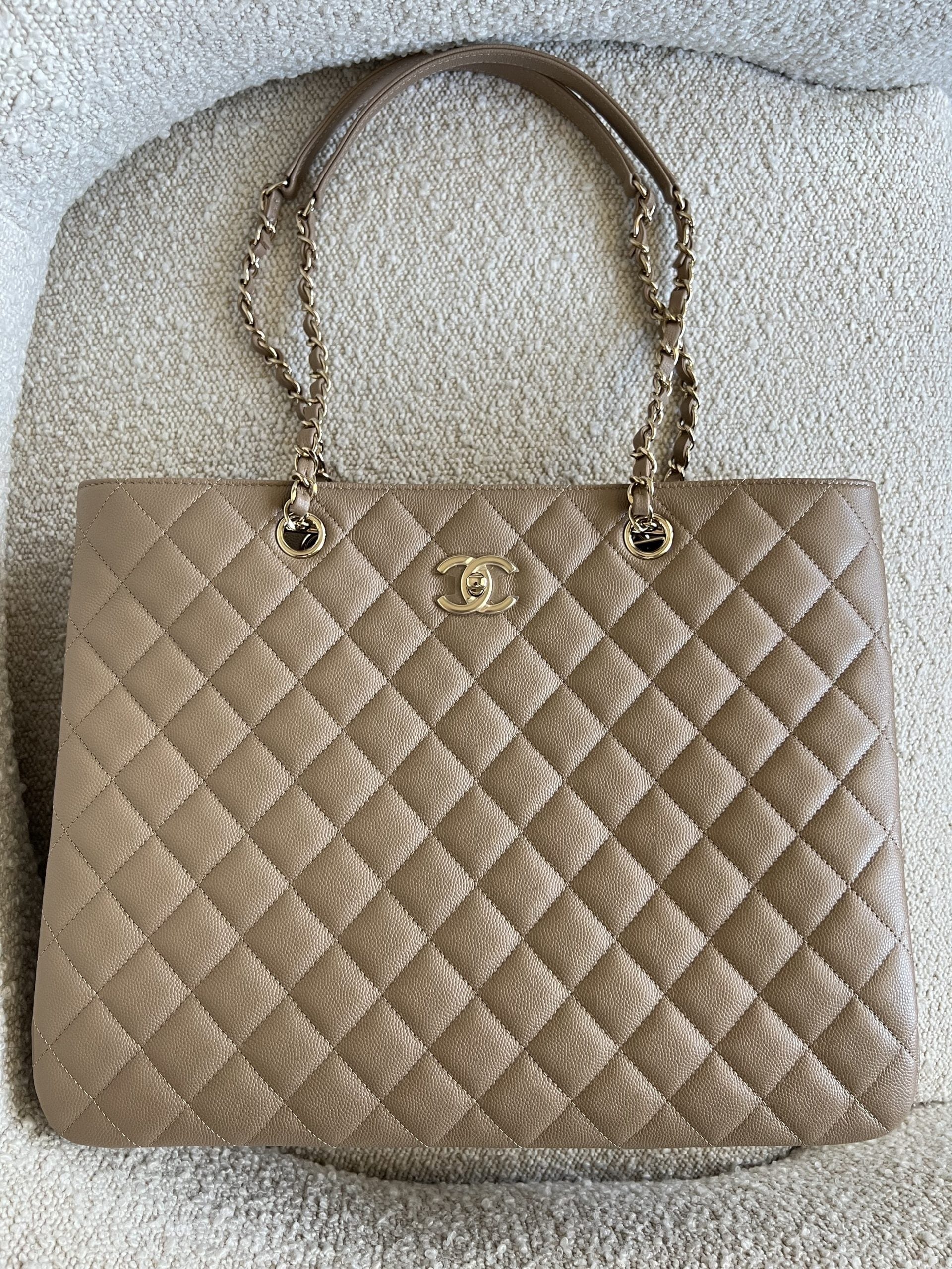 22A Dark Beige Caviar Quilted Shopping tote Large LGHW
