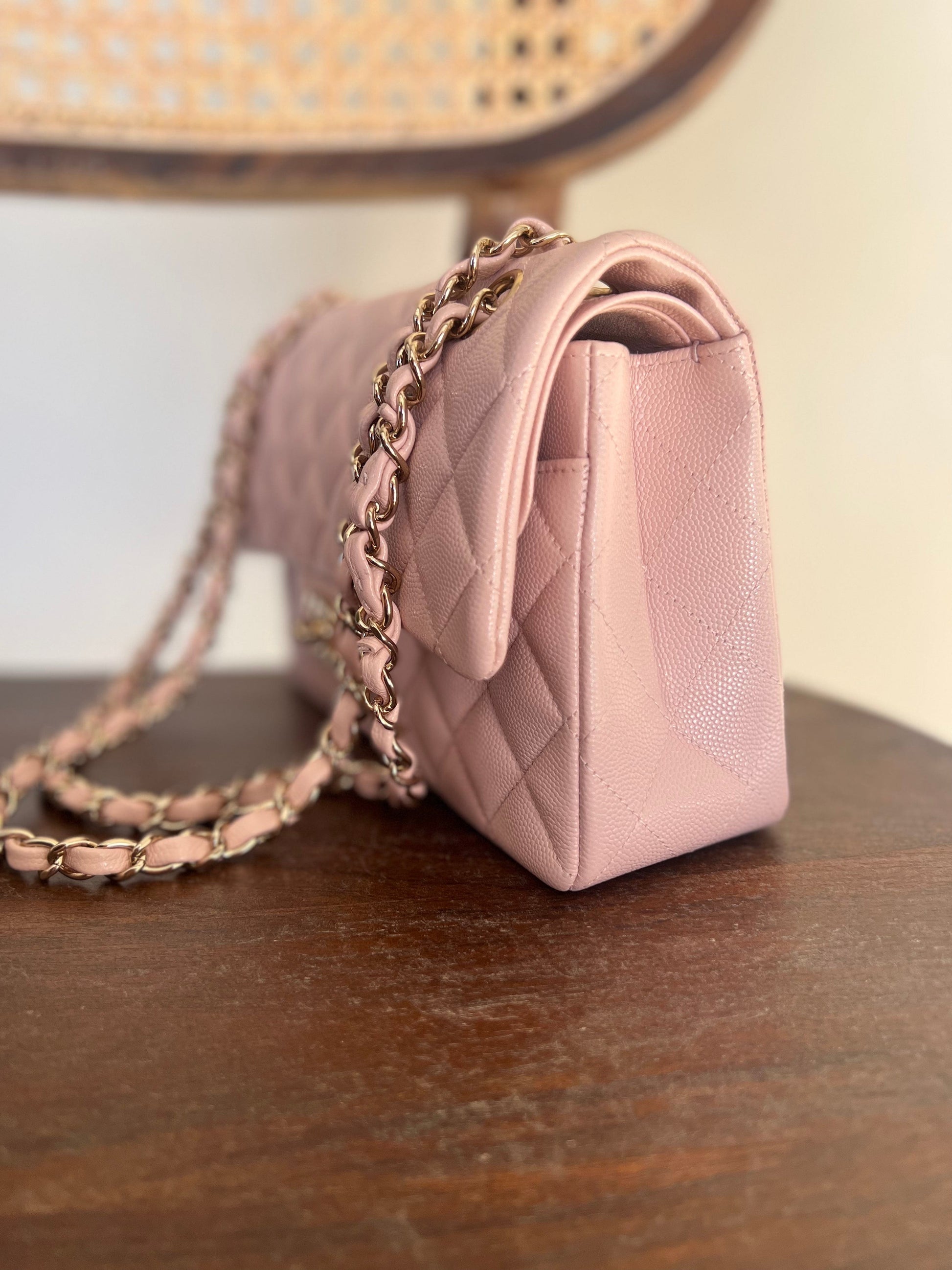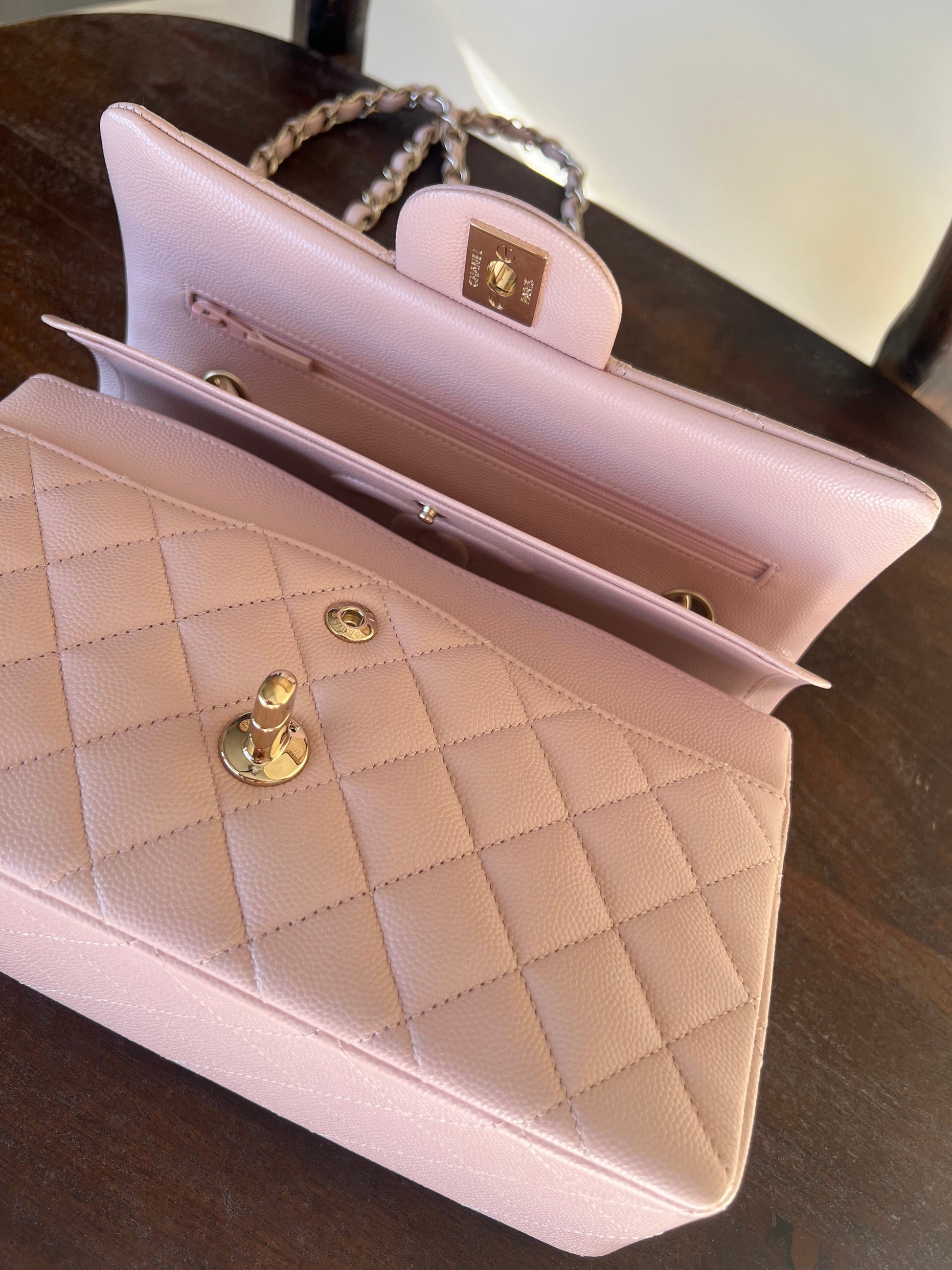 CHANEL 21C LIGHT PINK CAVIAR QUILTED CLASSIC FLAP SMALL LIGHT GOLD HARDWARE