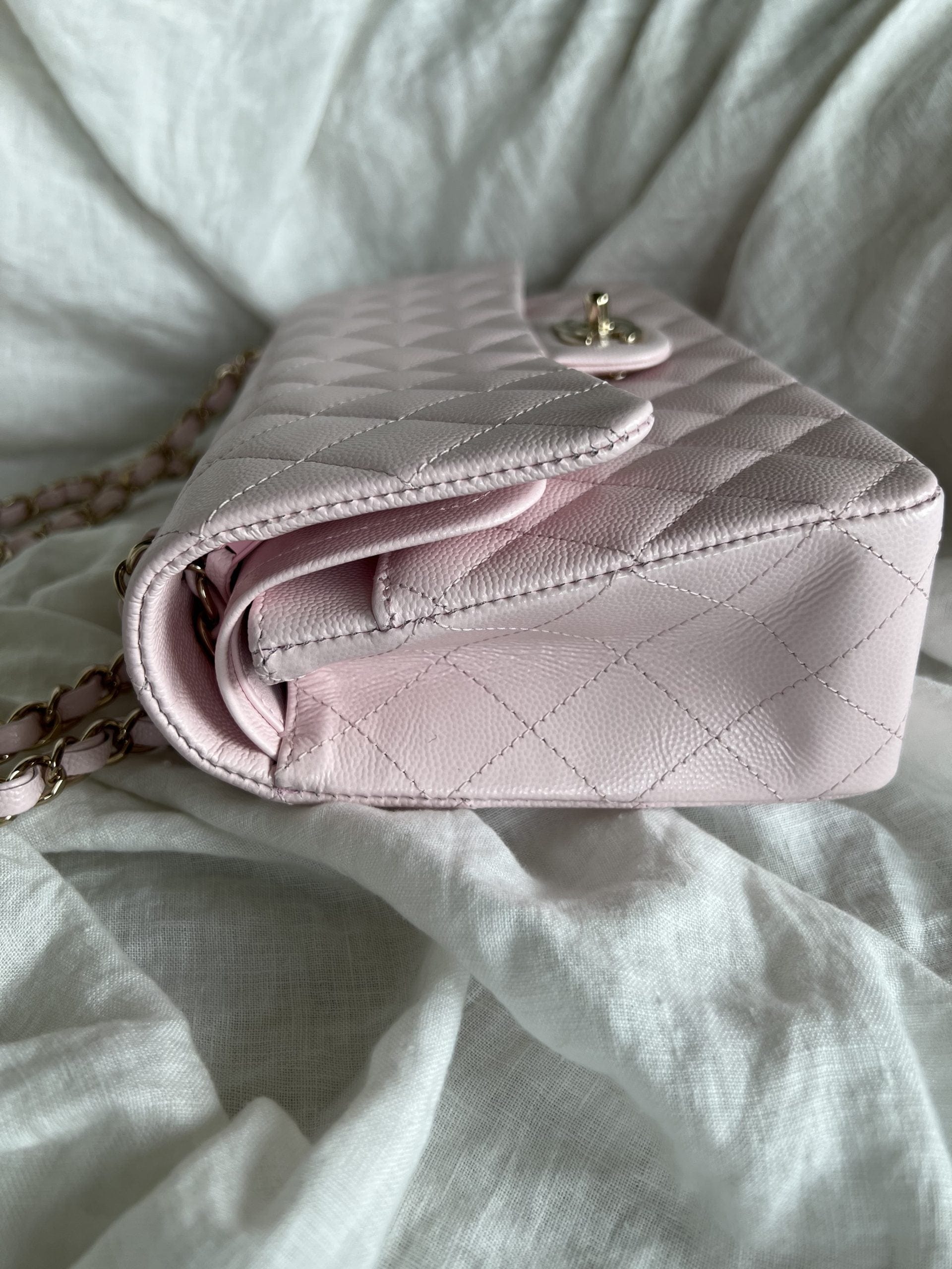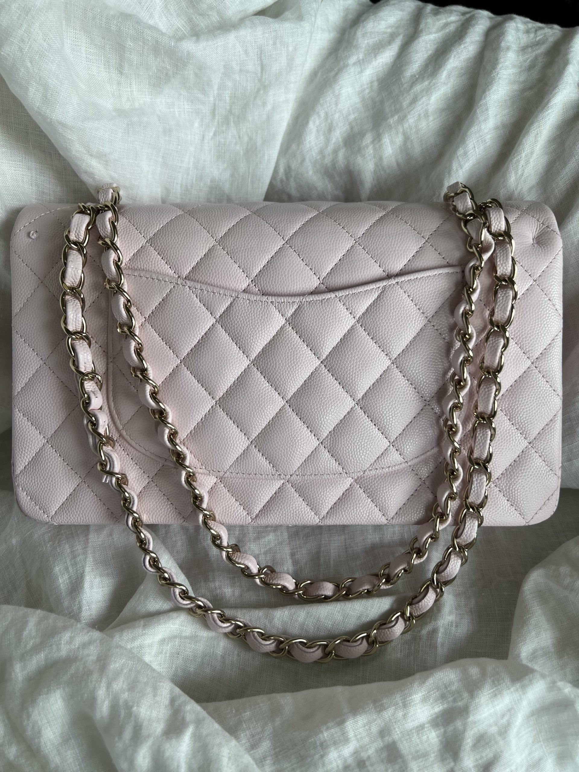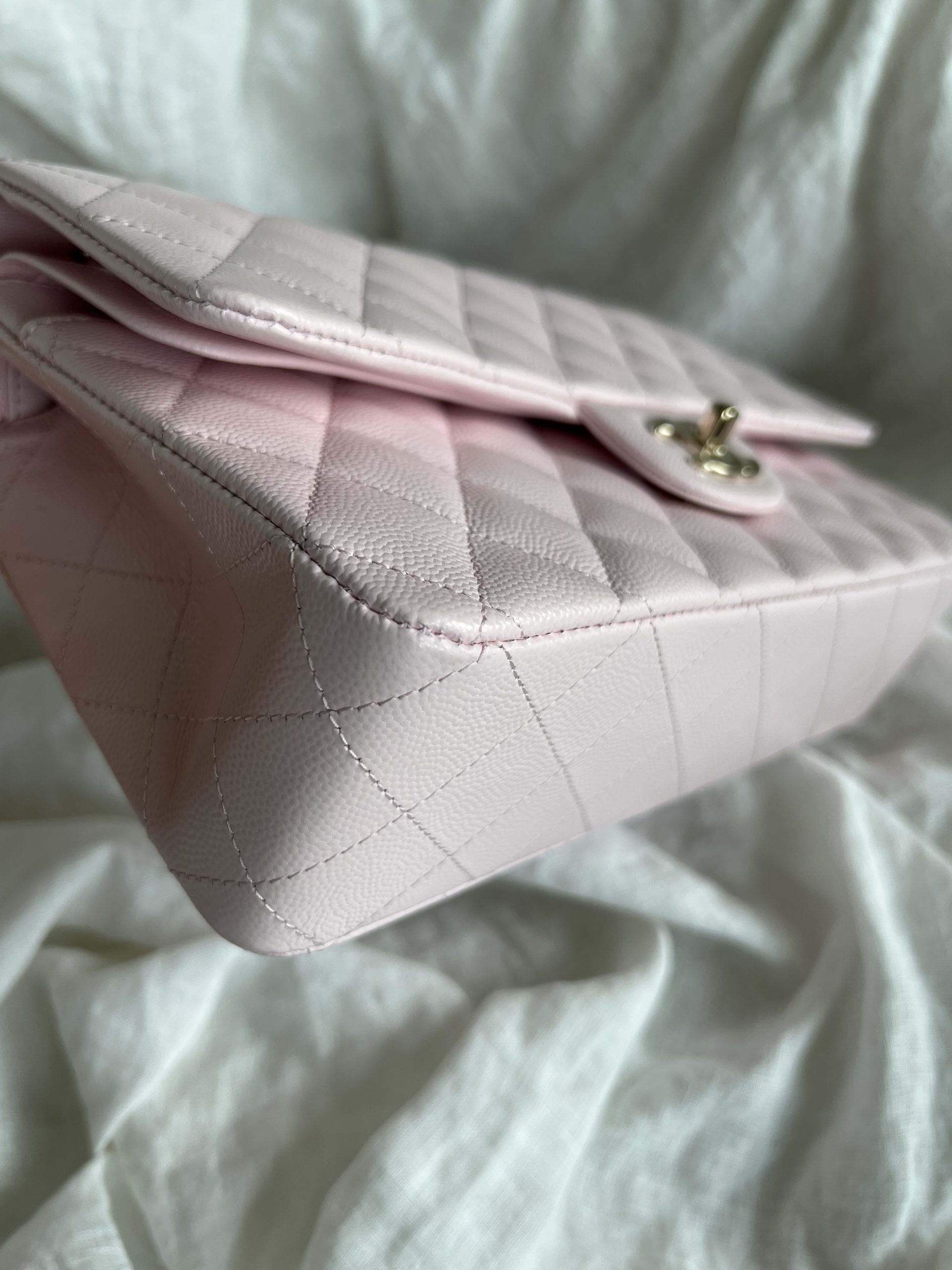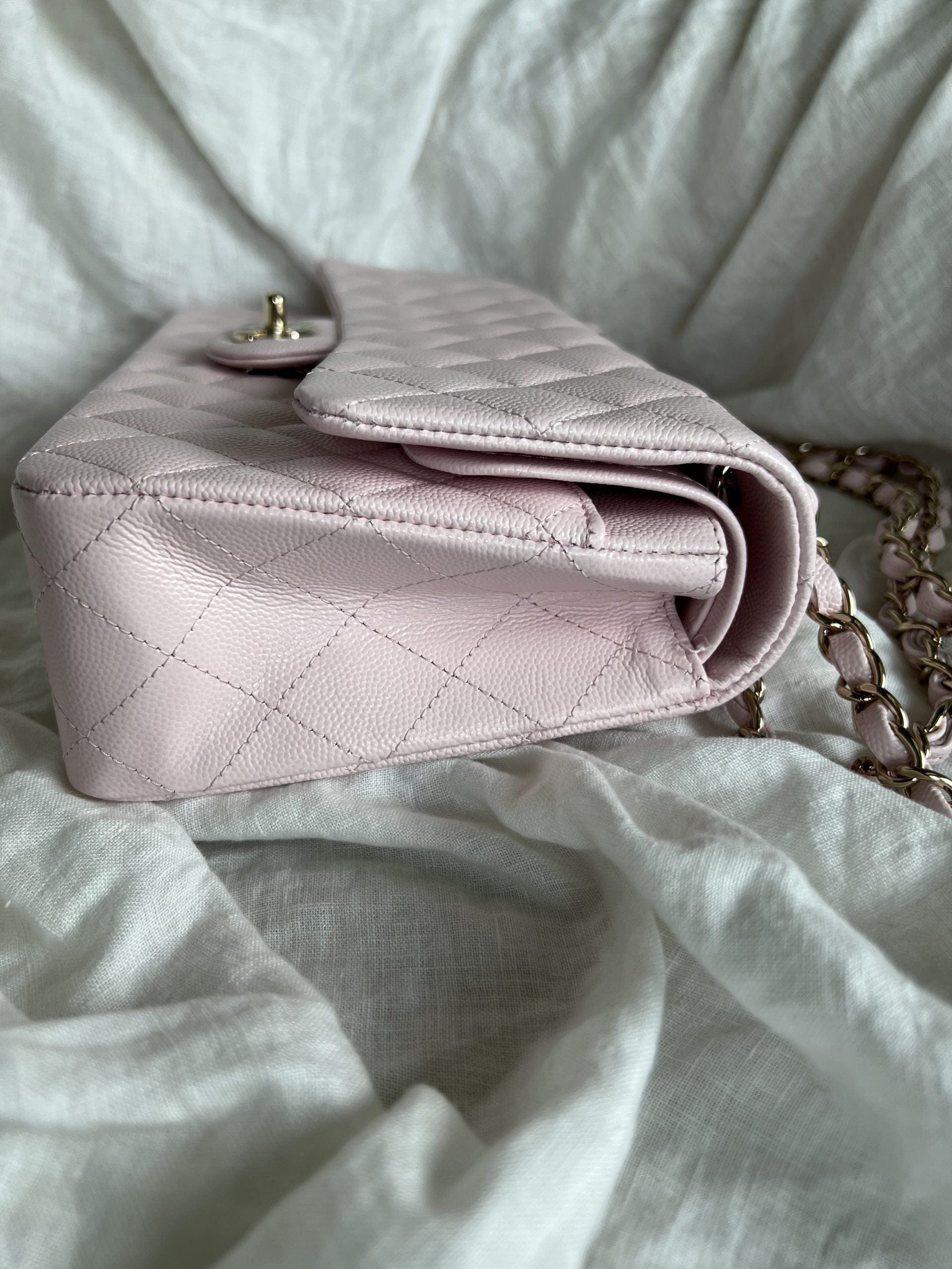 22P Light Pink Caviar Quilted Classic Flap Medium LGHW