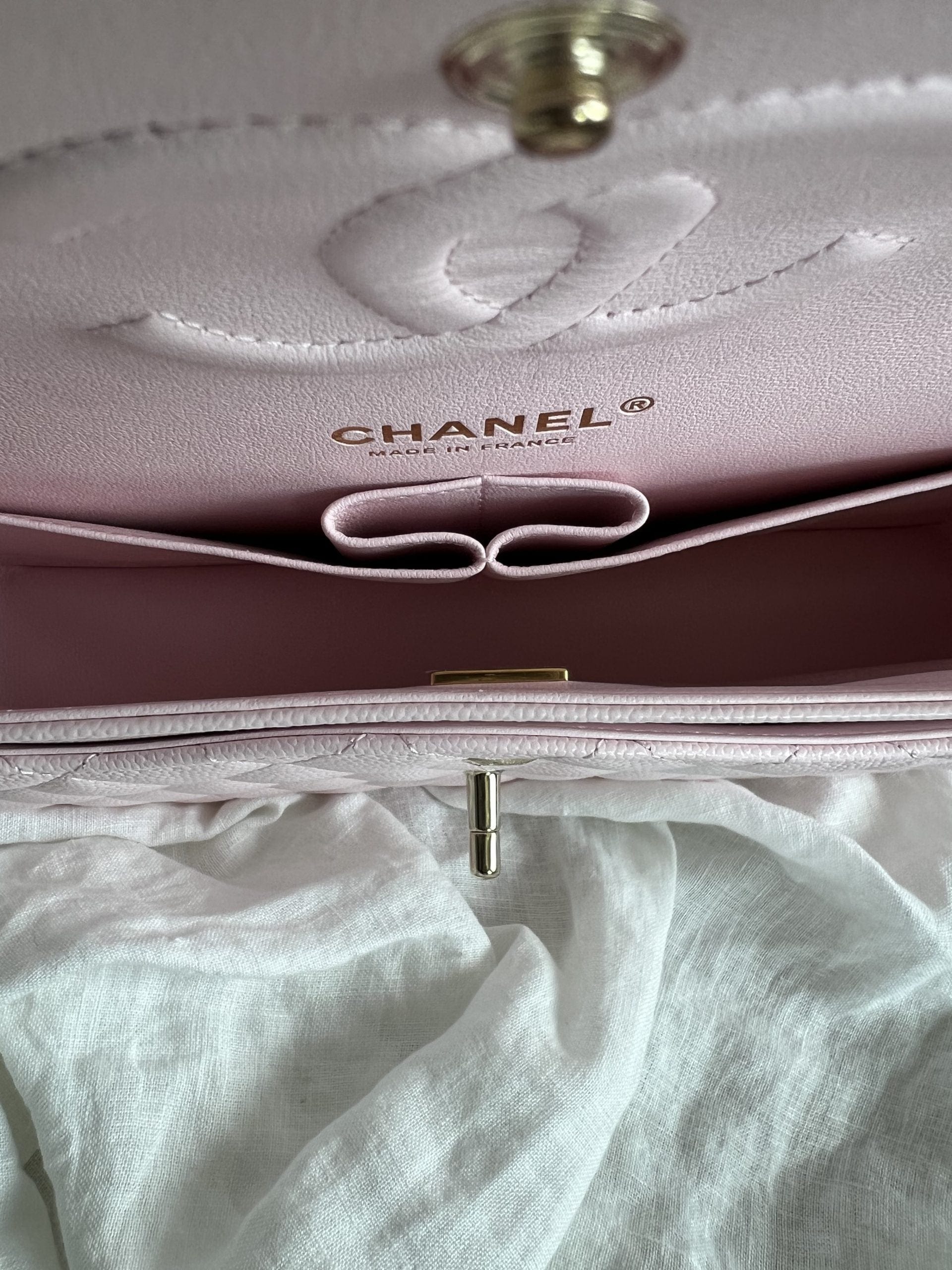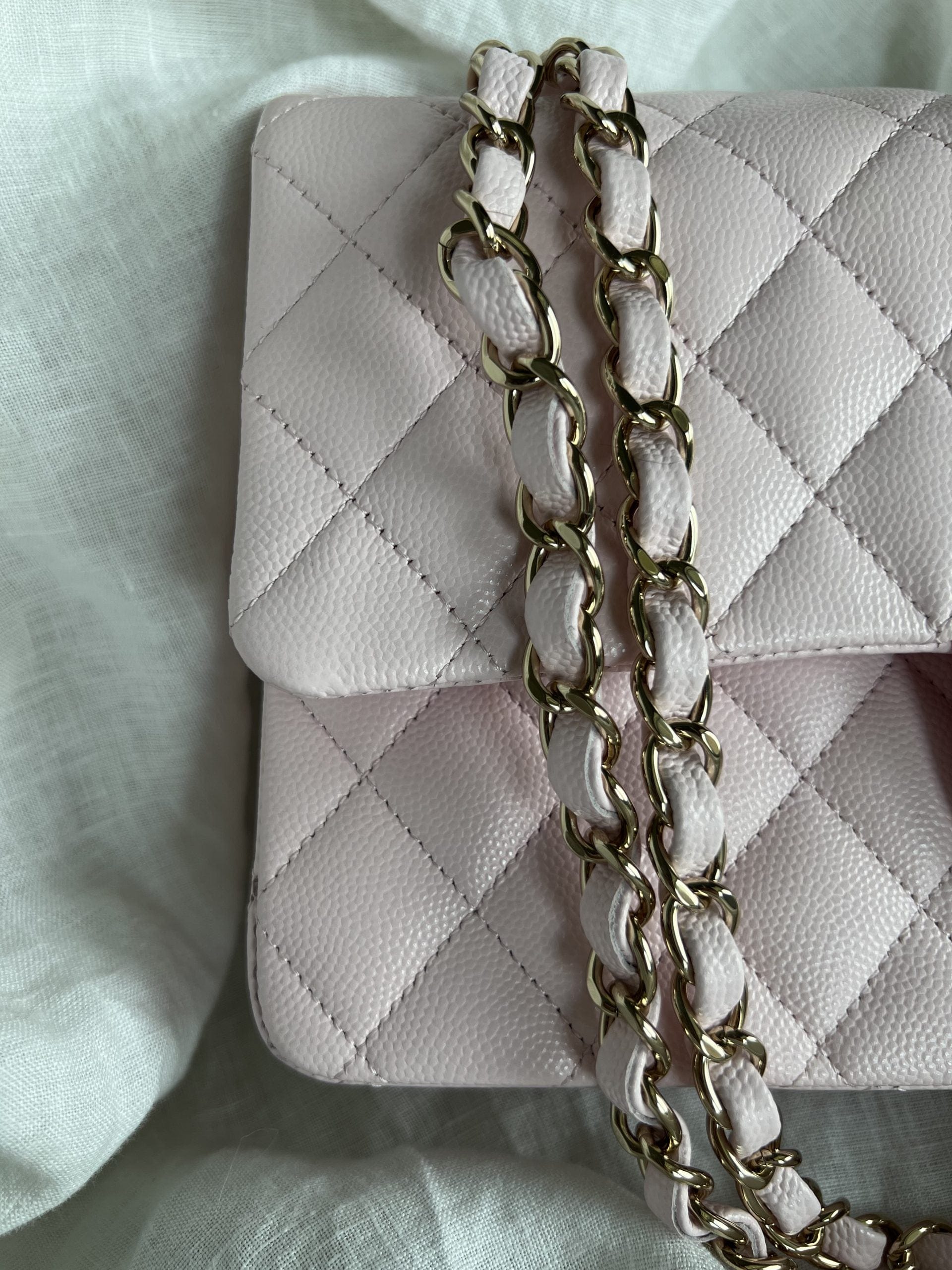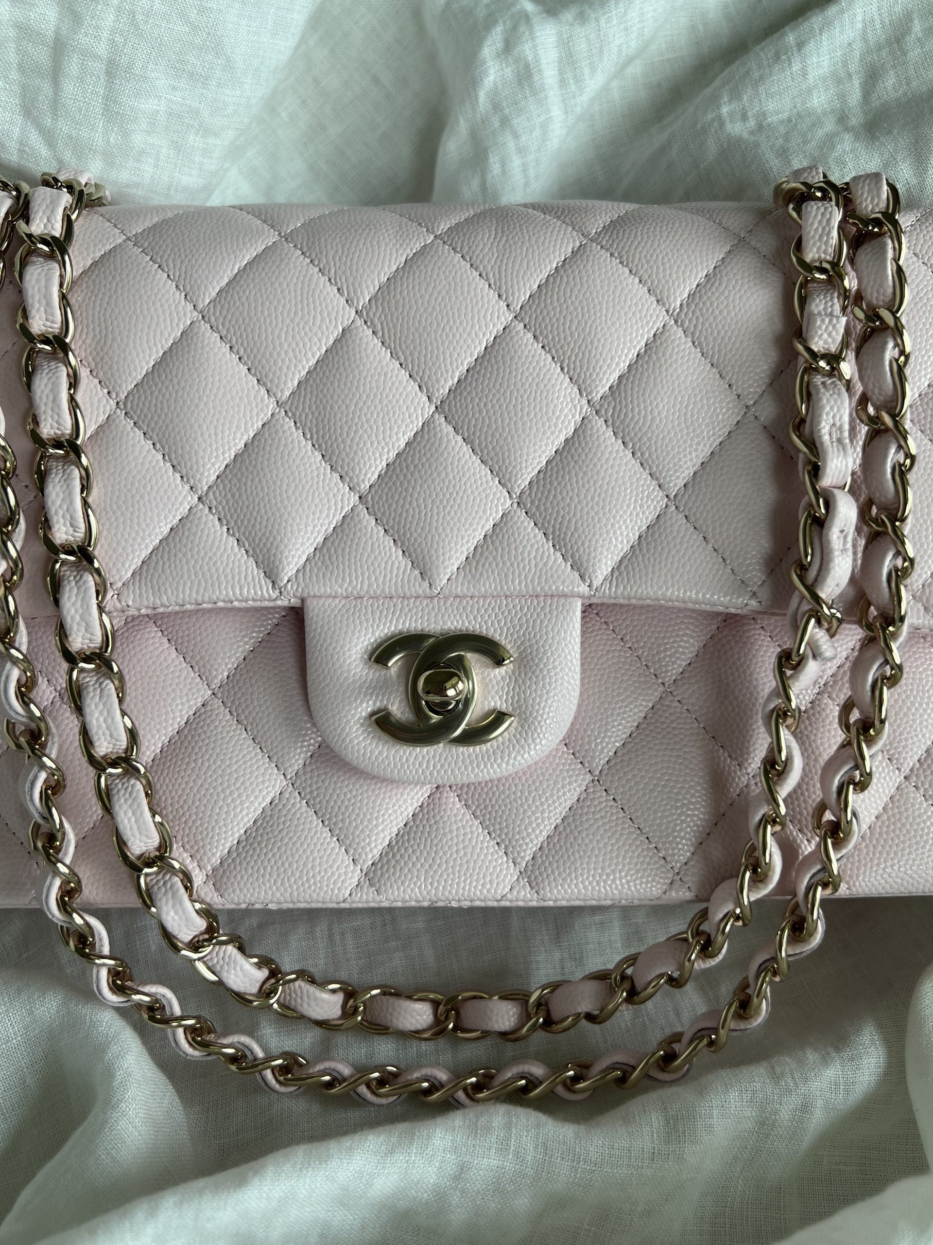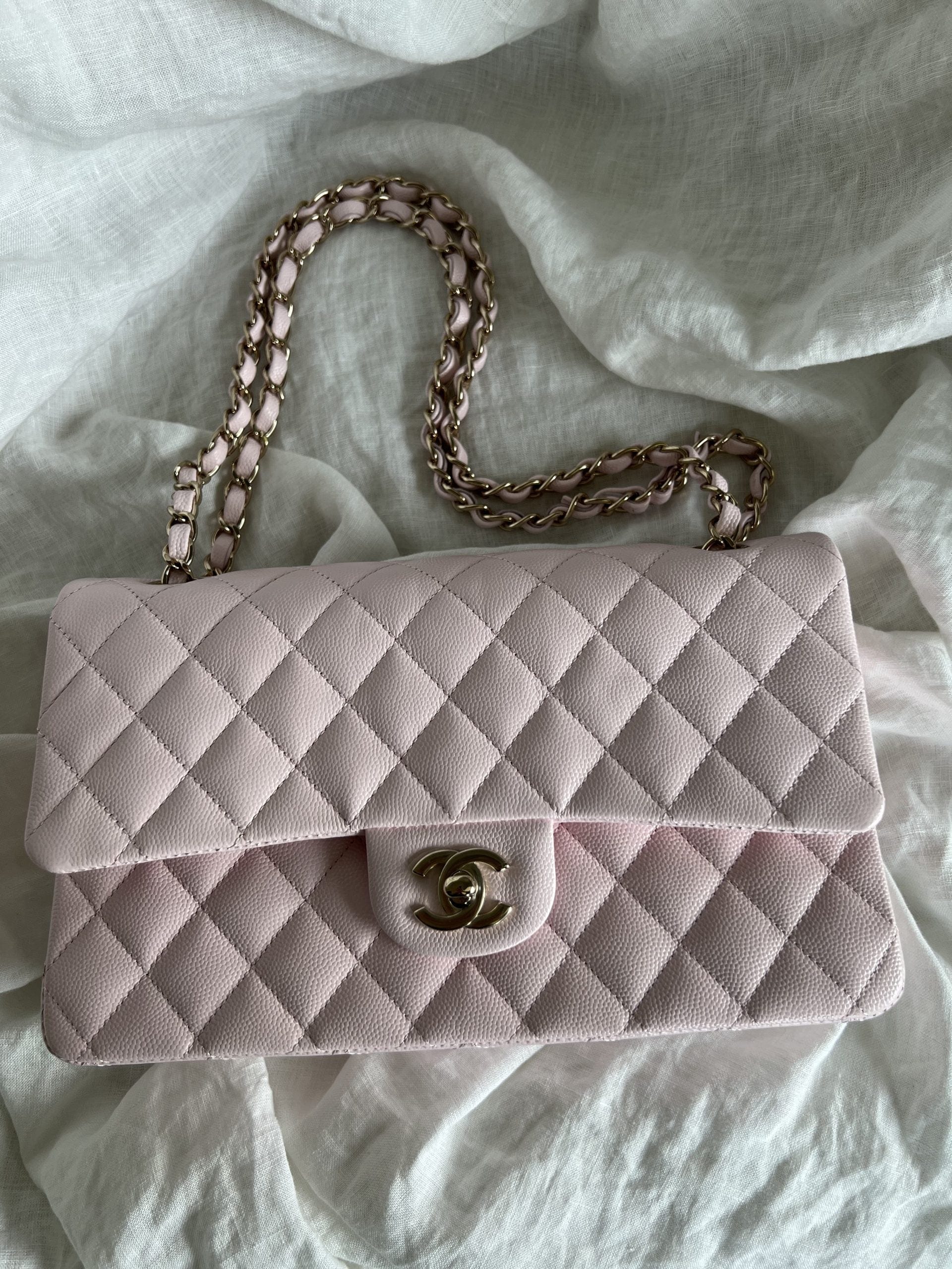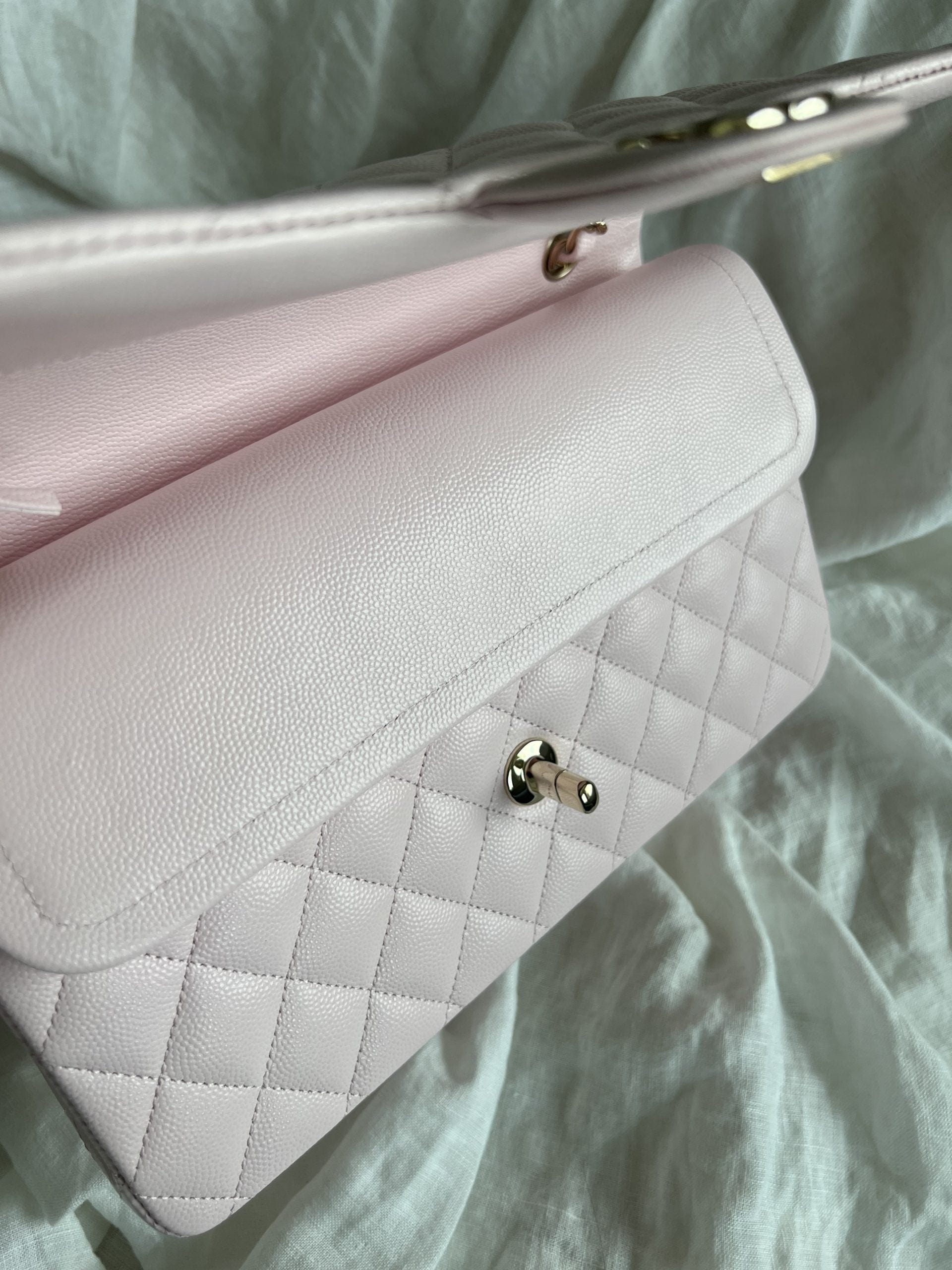 22P Light Pink Caviar Quilted Classic Flap Medium LGHW