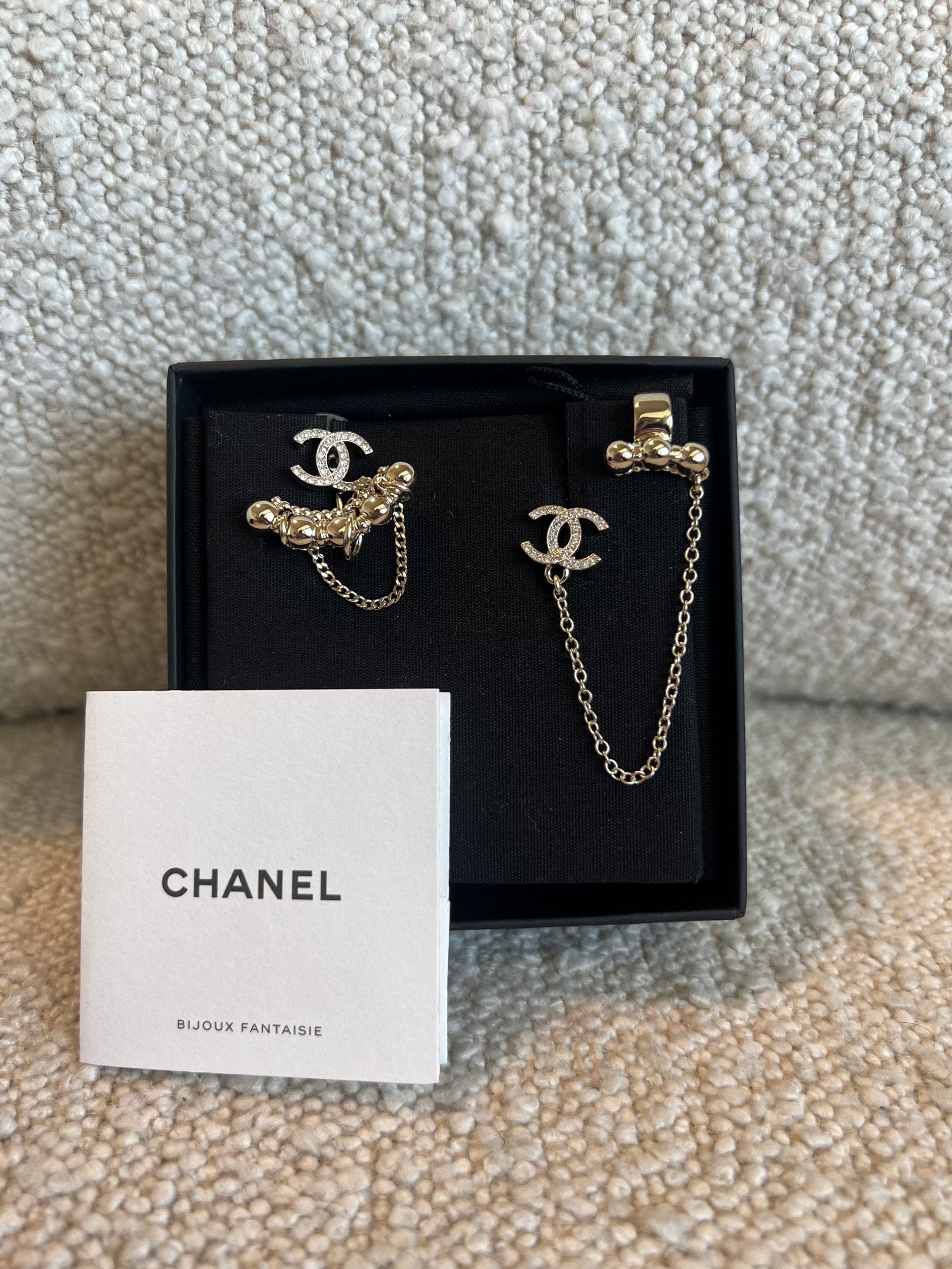 22C Metal Crystal CC Chain Cuff Gold Earrings