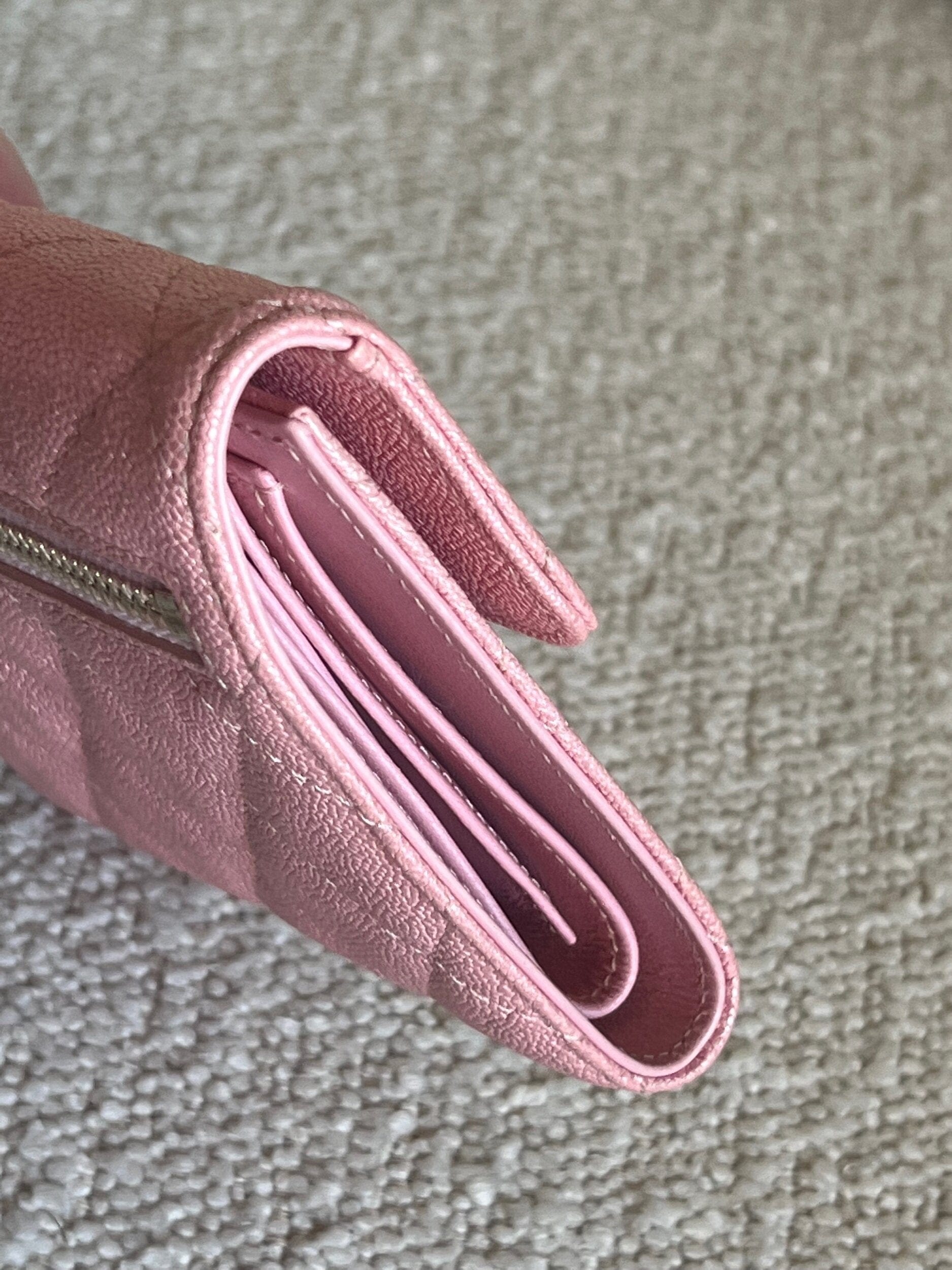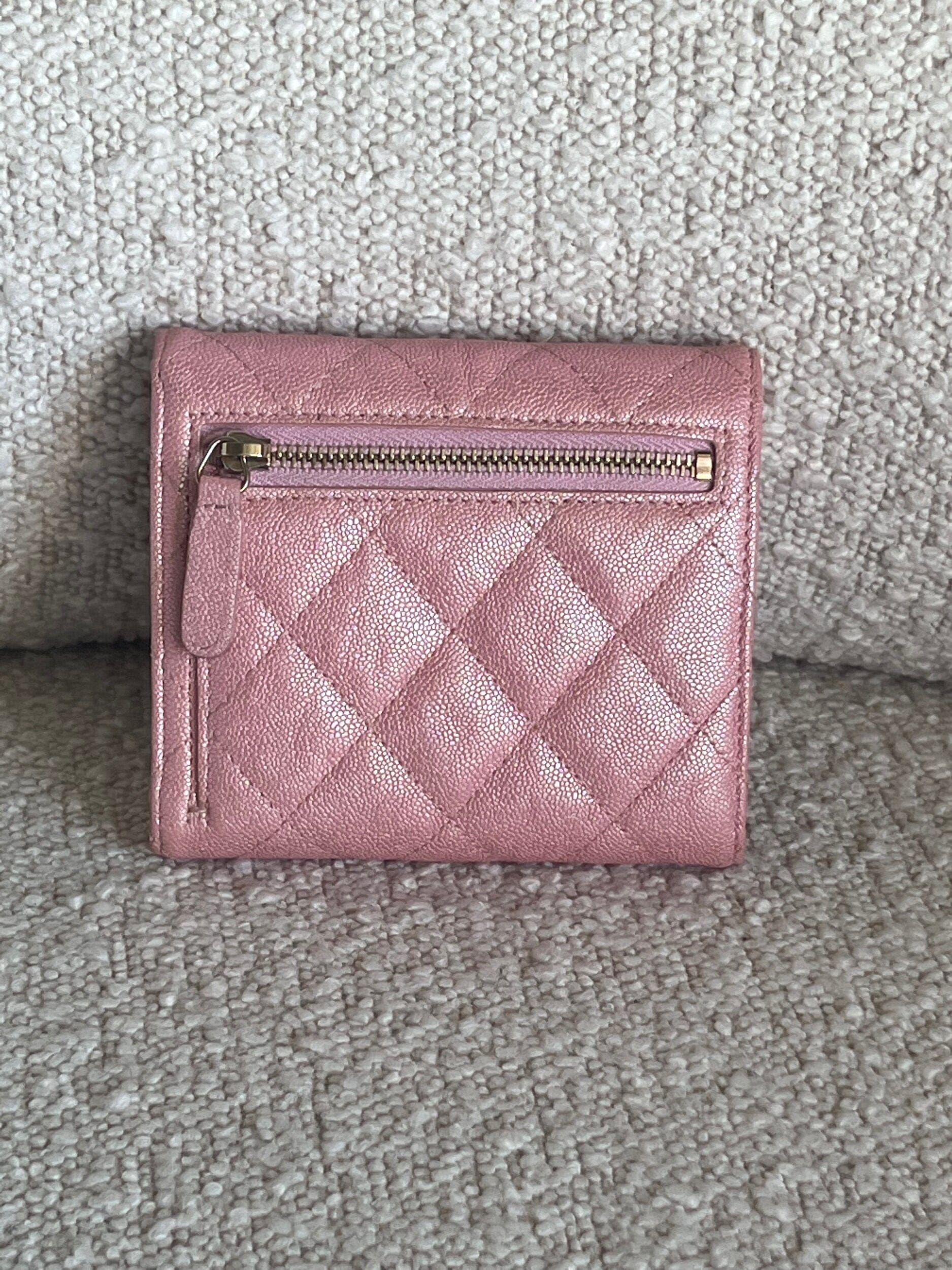 19S Pink Iridescent Caviar Quilted Flap Wallet