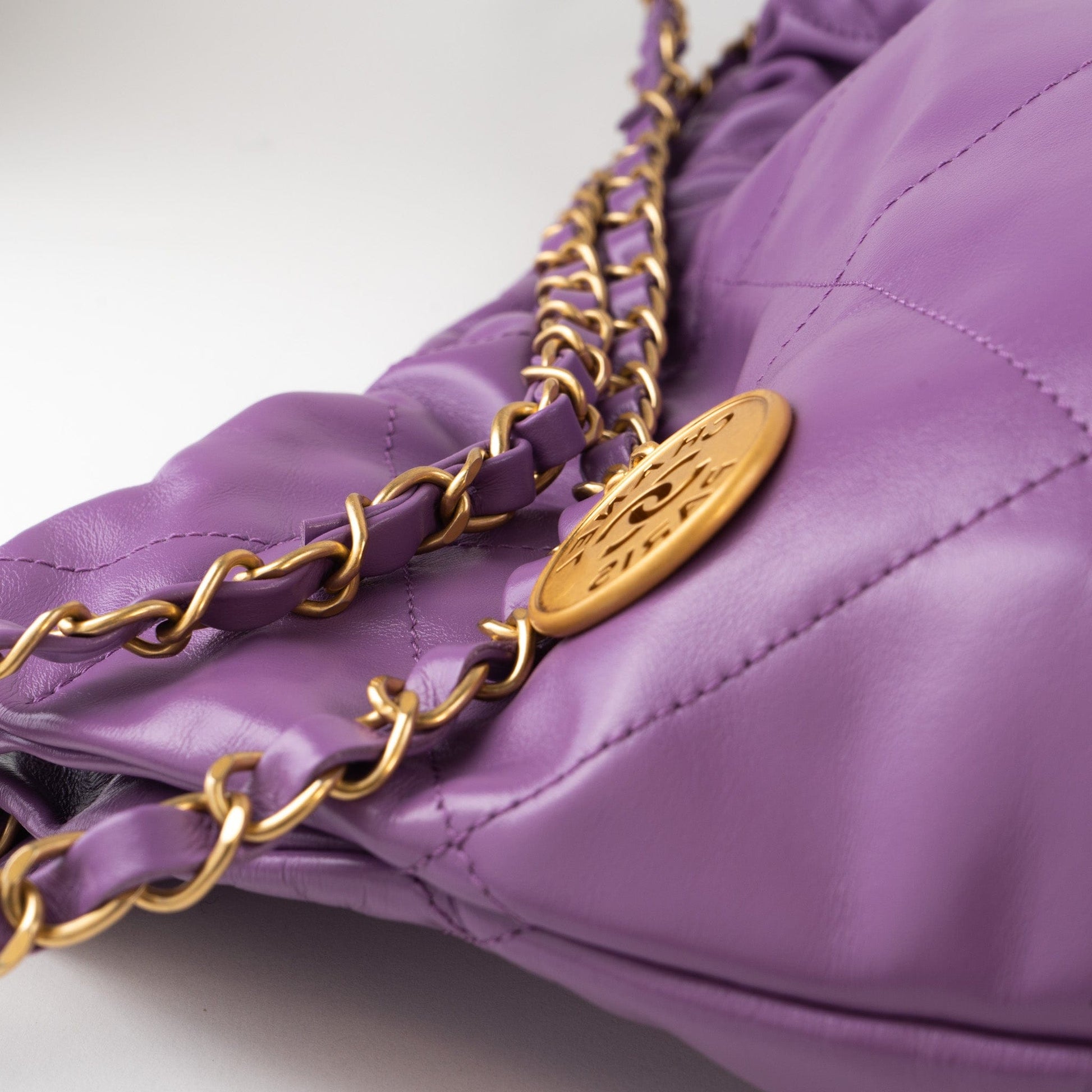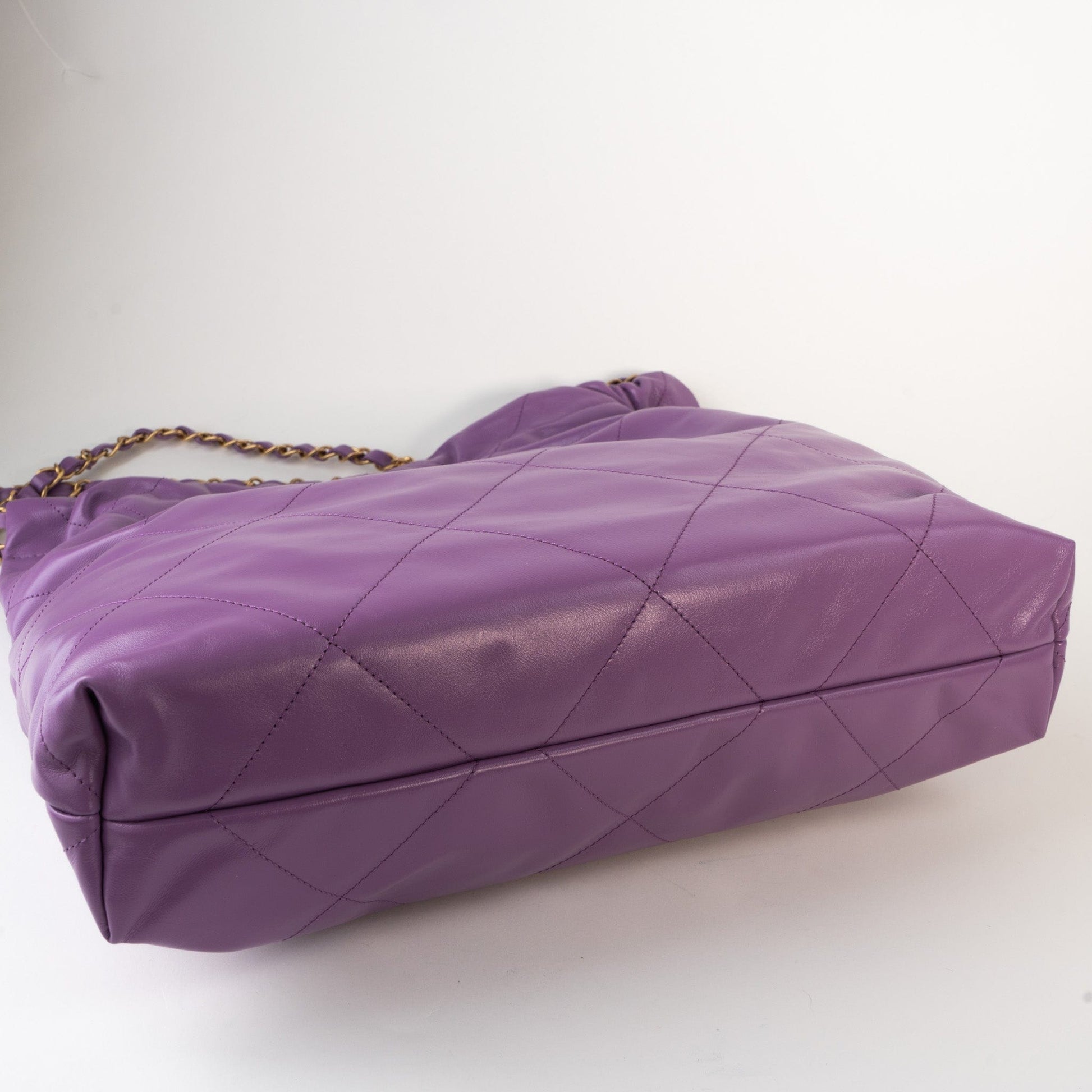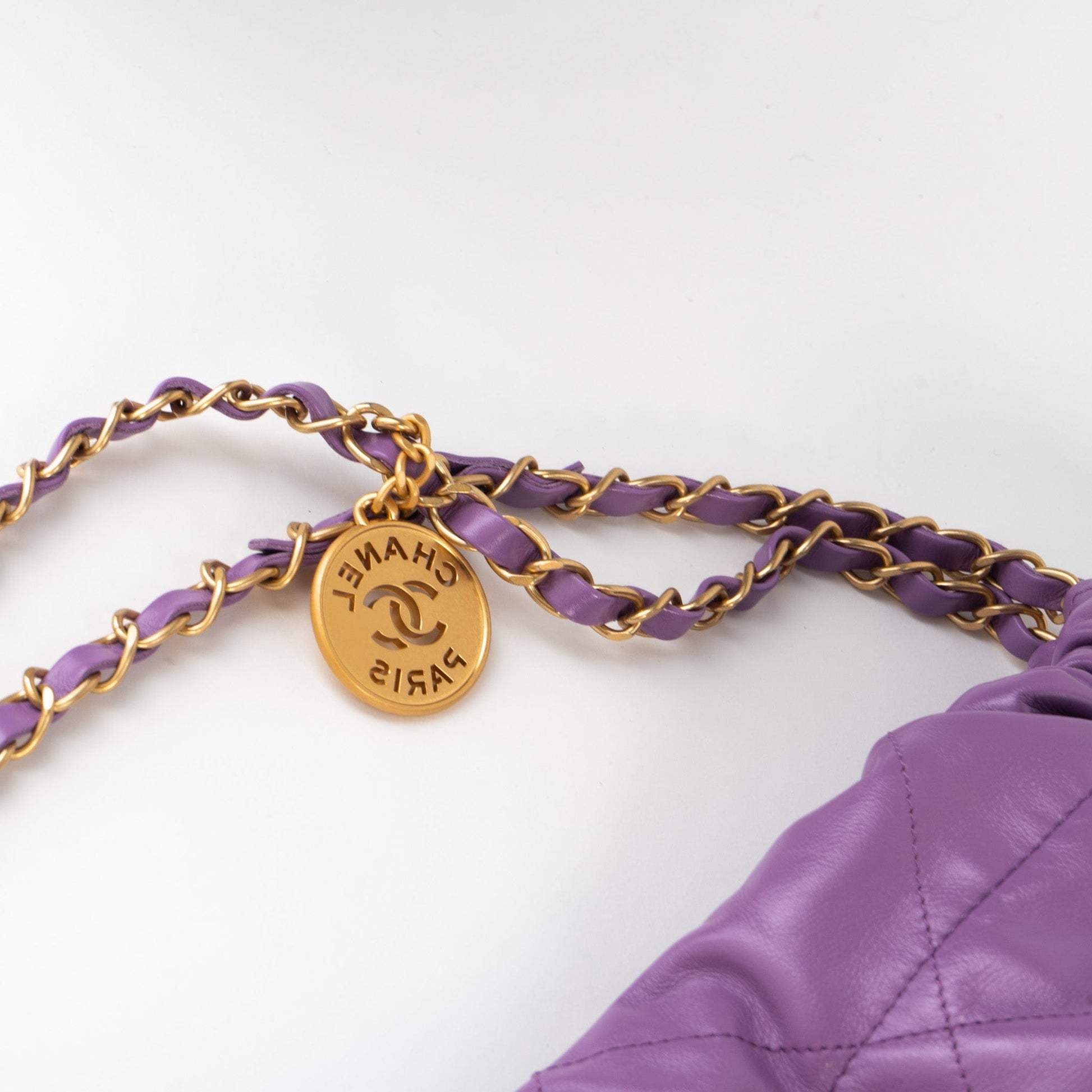 Chanel Purple Calfskin Quilted 22 Drawstring Bag