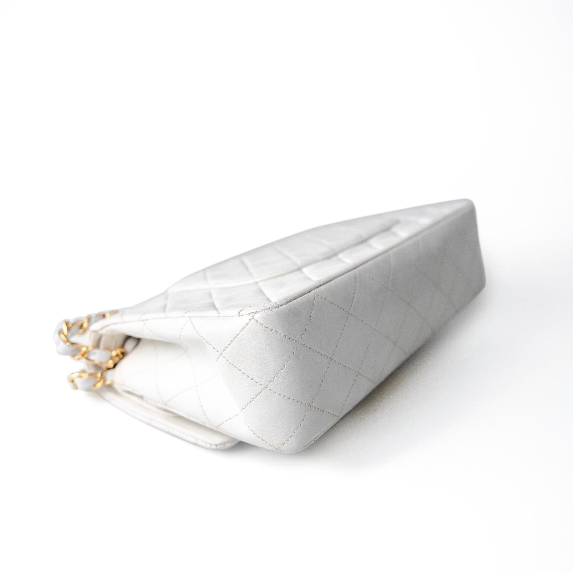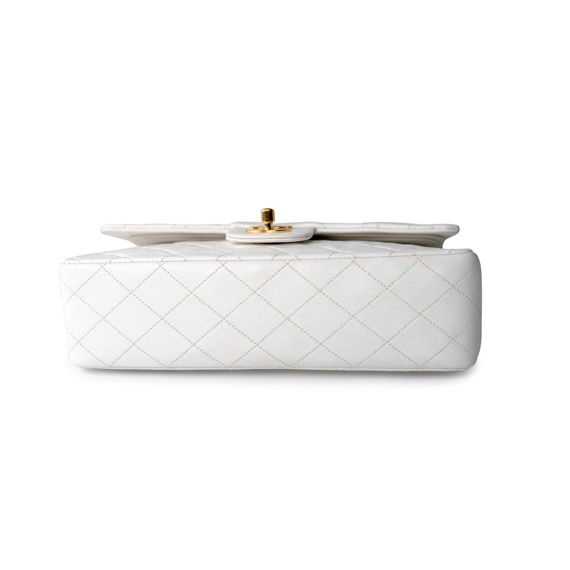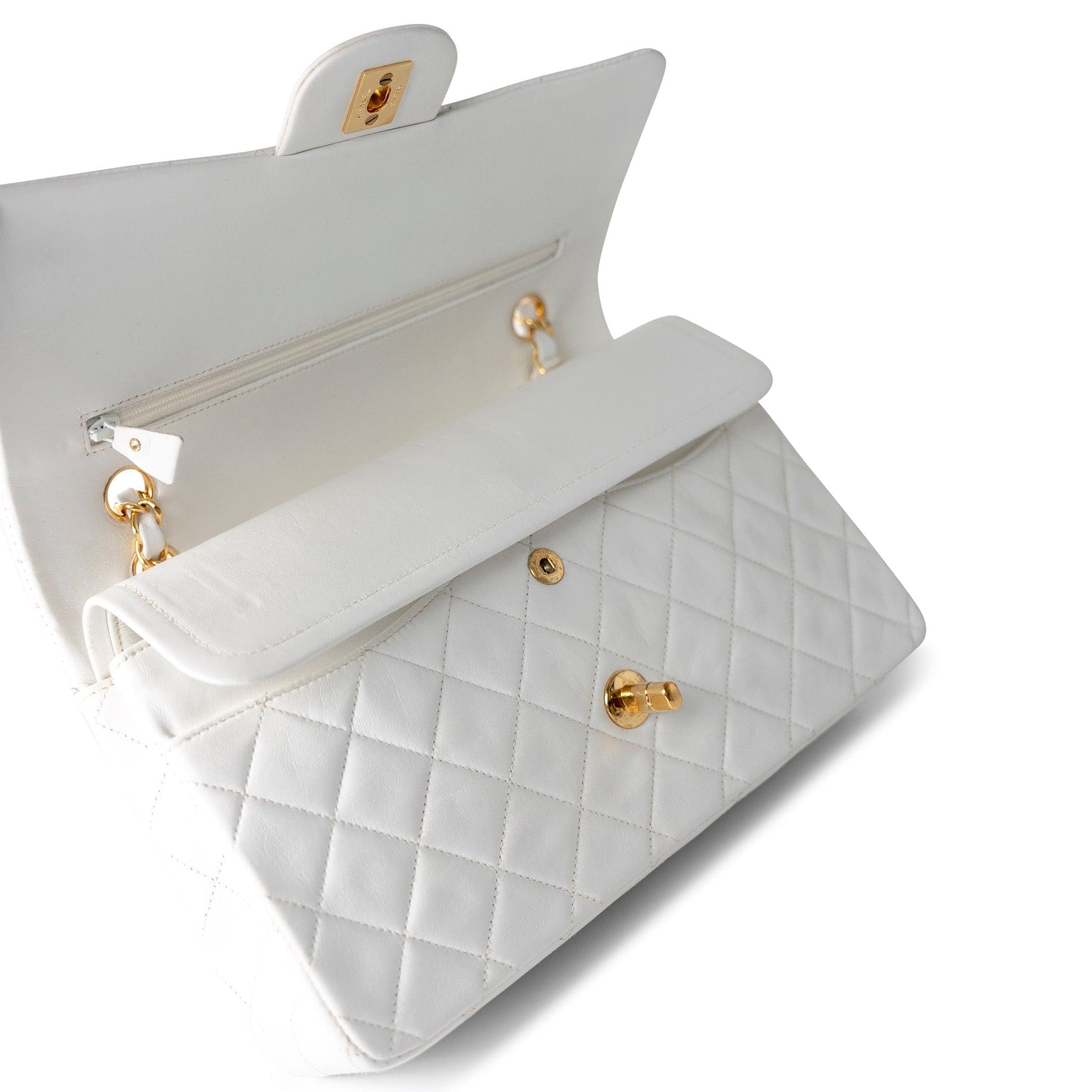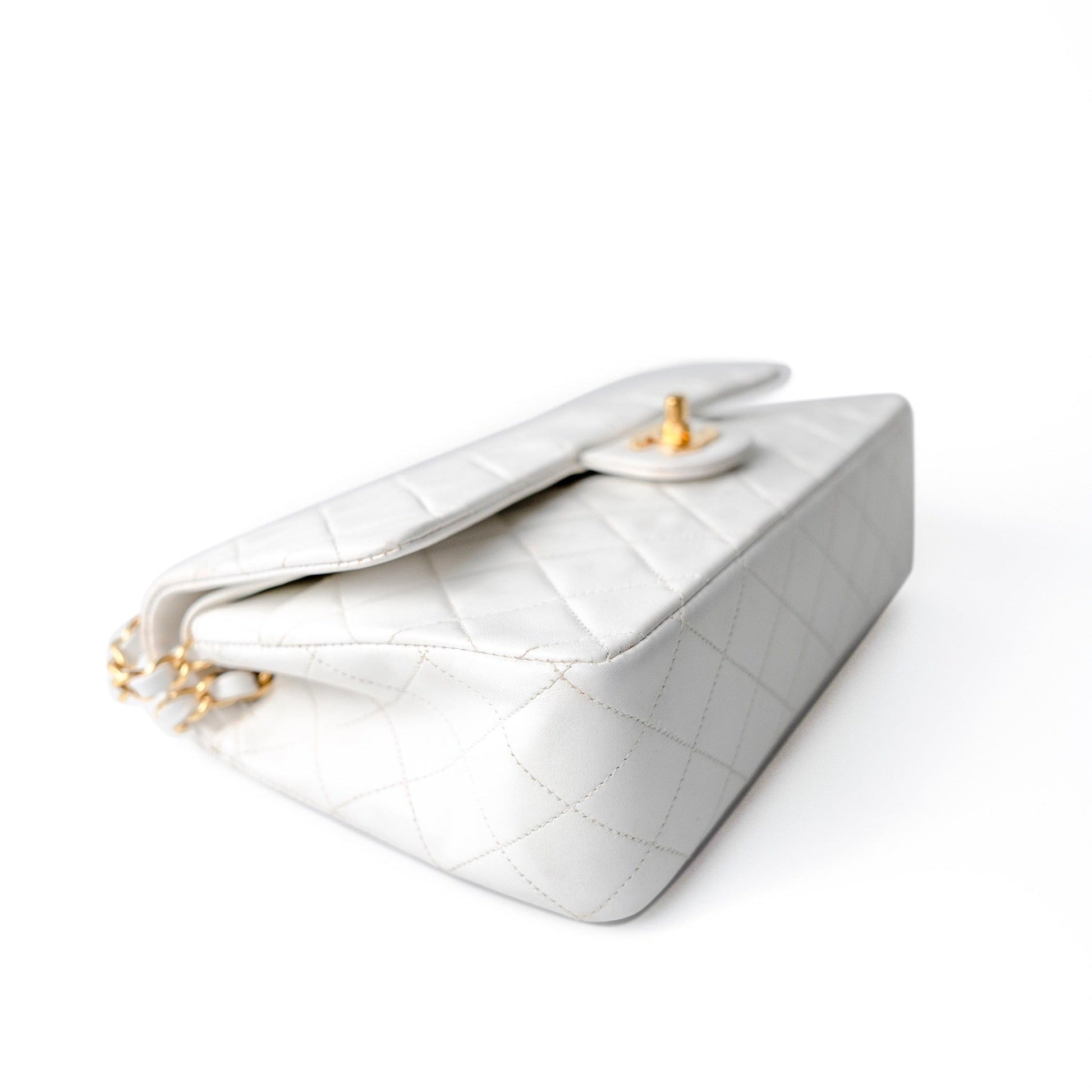 Chanel Vintage White Lambskin Quilted Classic Flap Medium GHW