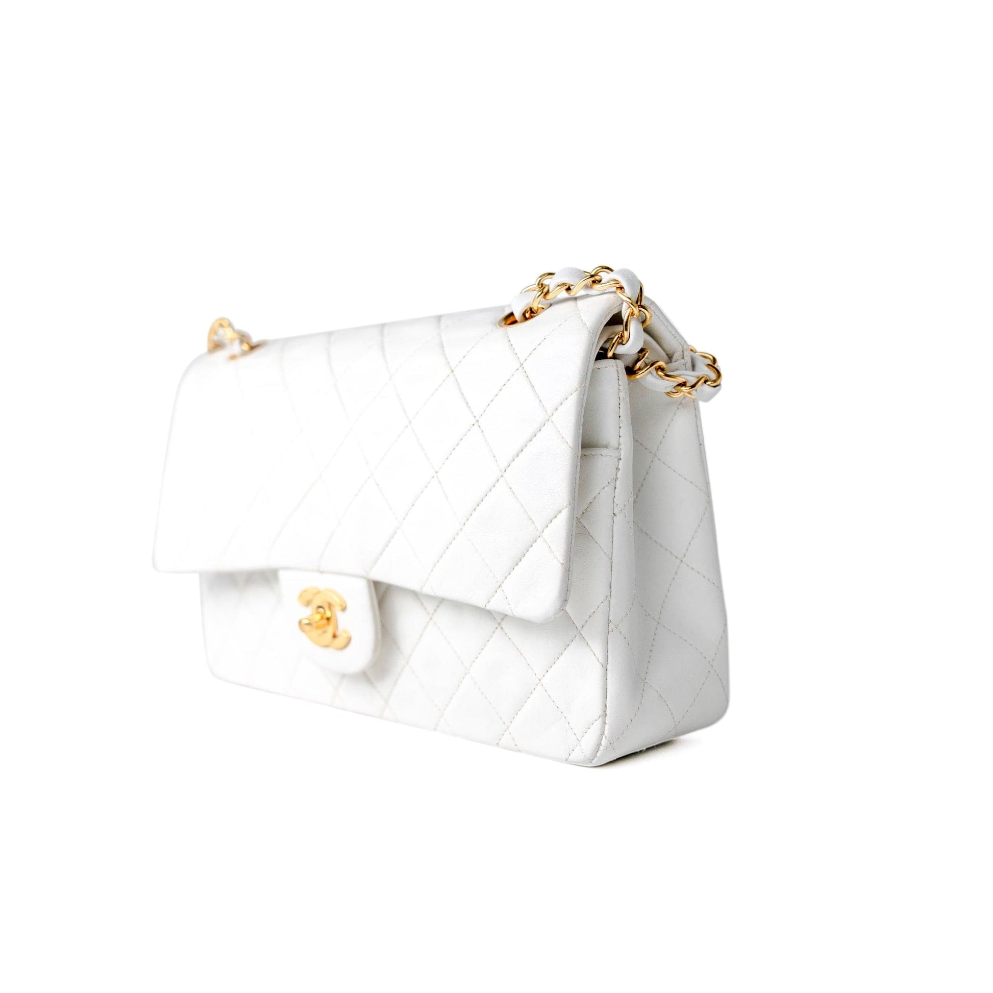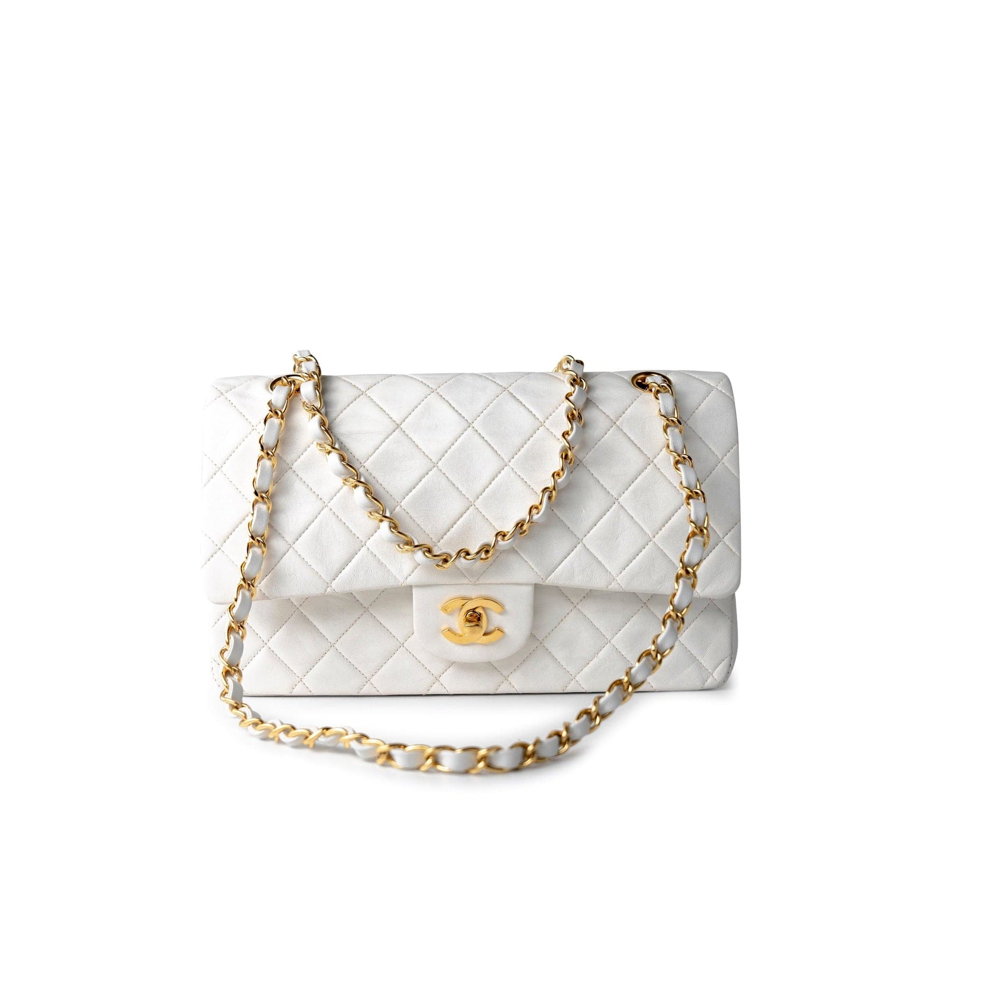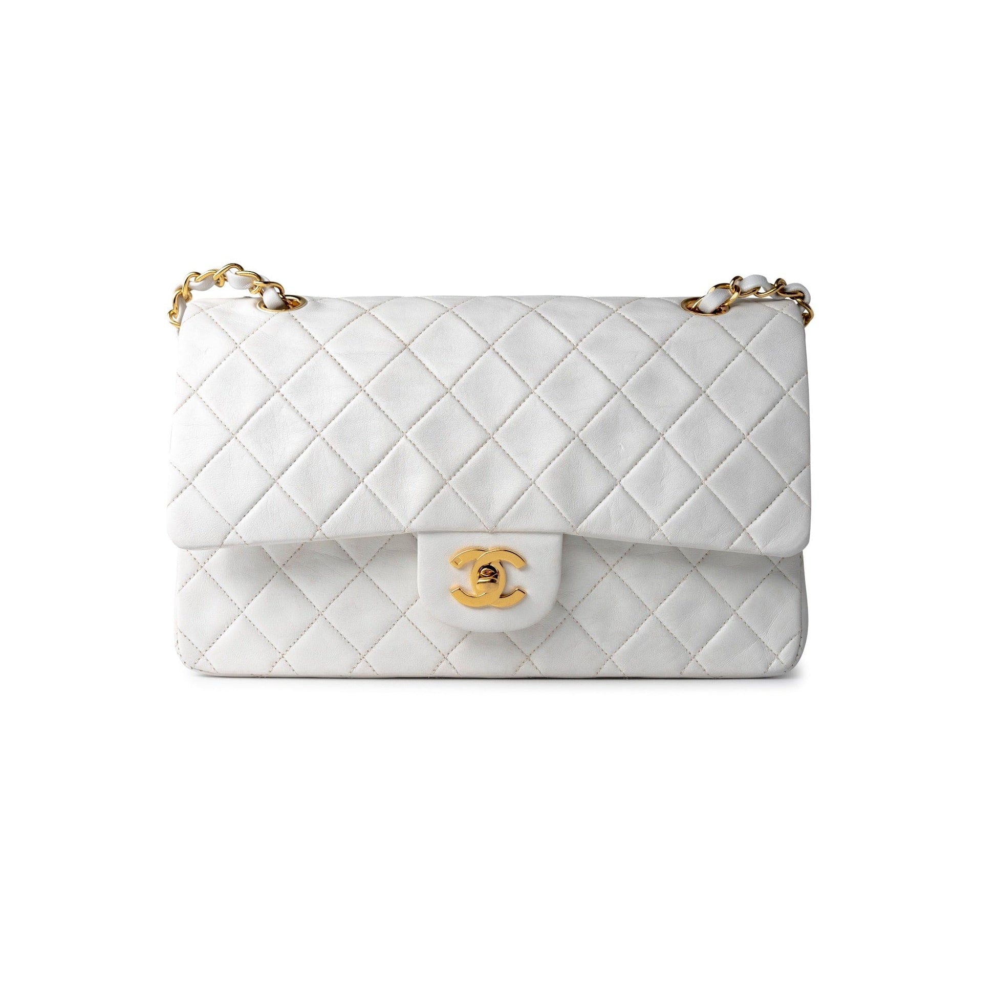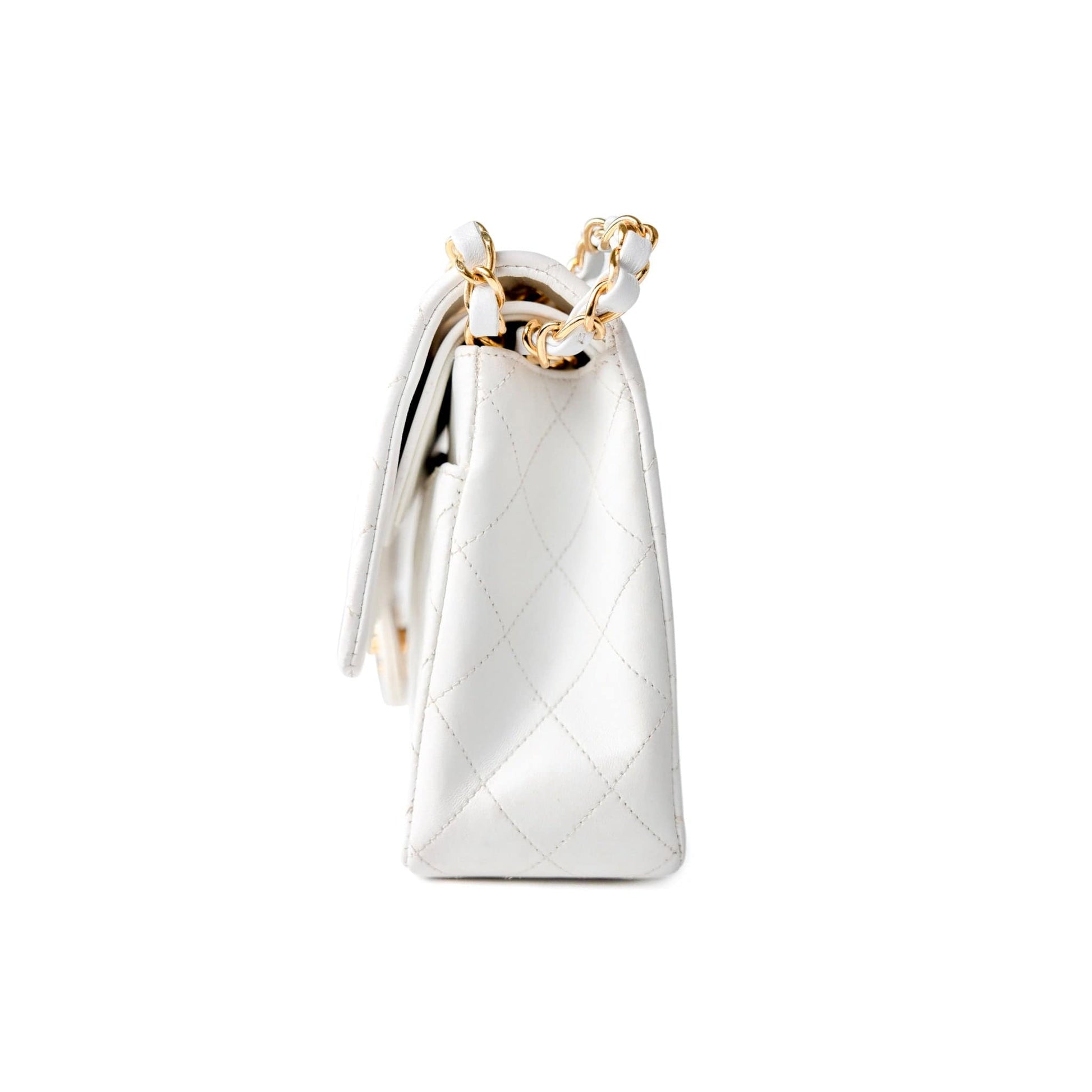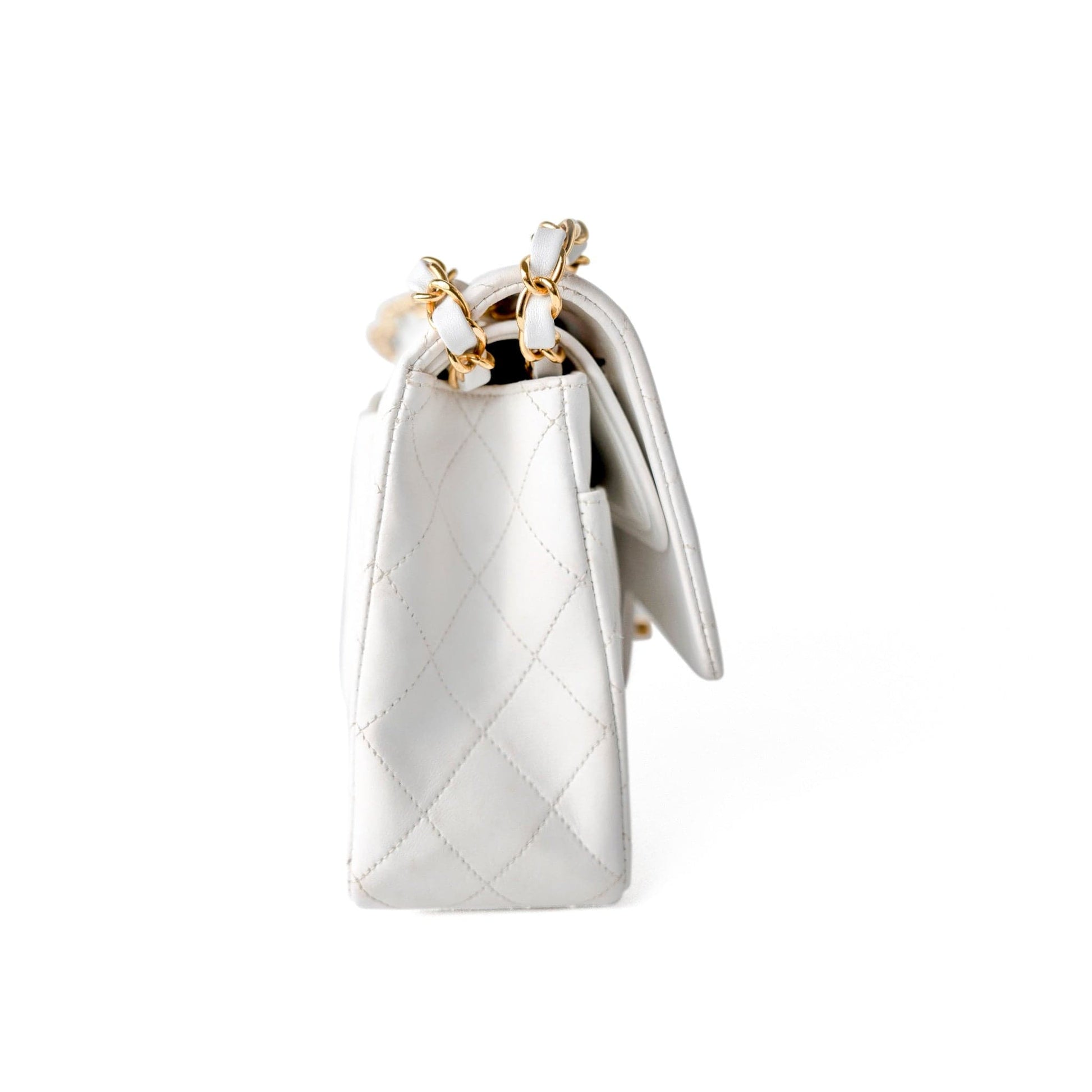 Chanel Vintage White Lambskin Quilted Classic Flap Medium GHW