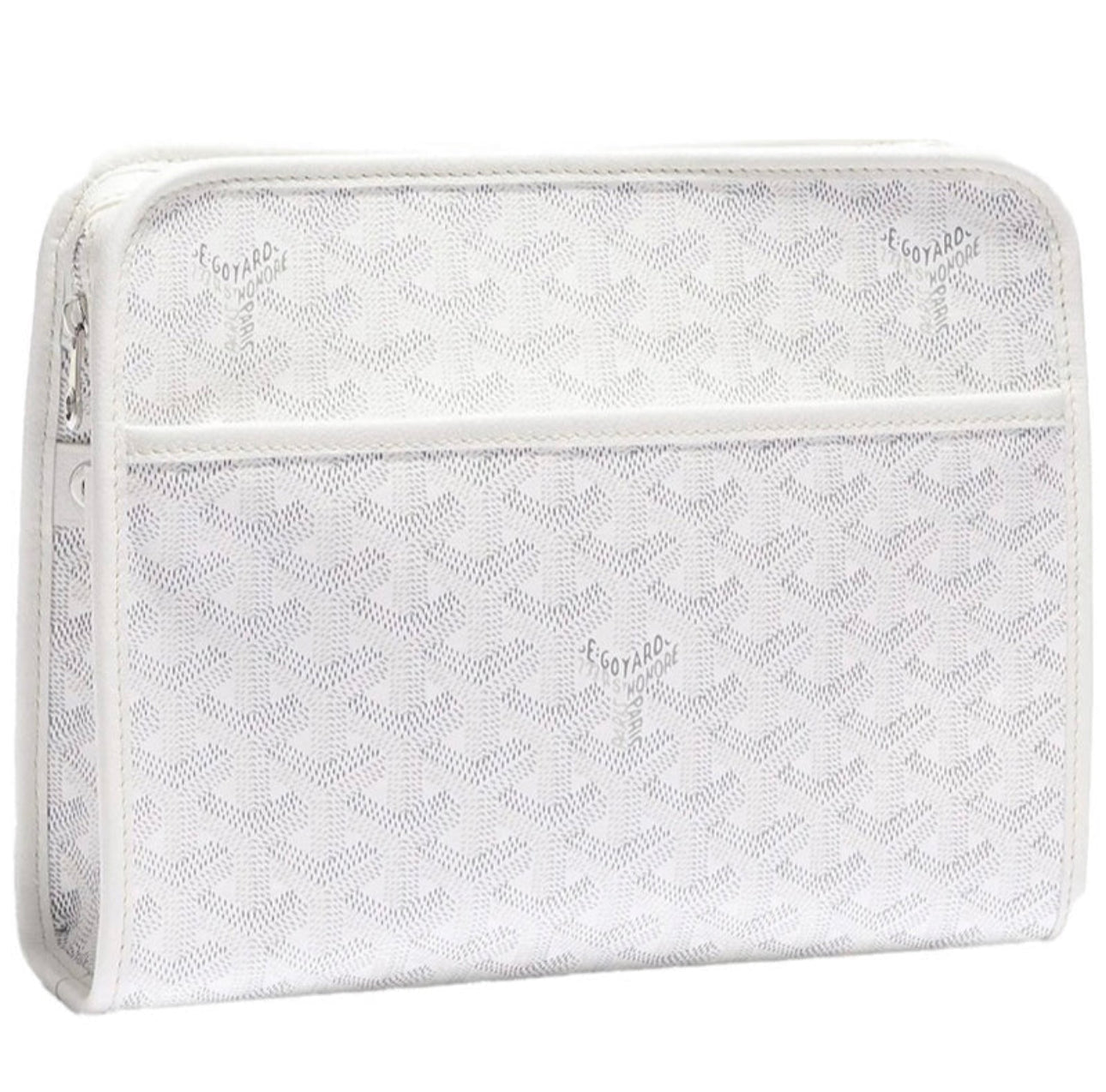 The Goyard Jouvence Toiletry Bag MM White is a unisex pouch ideal for carrying toiletries or used as a bag for any other personal items. With its stylish and sturdy design, it is both practical and fashionable.