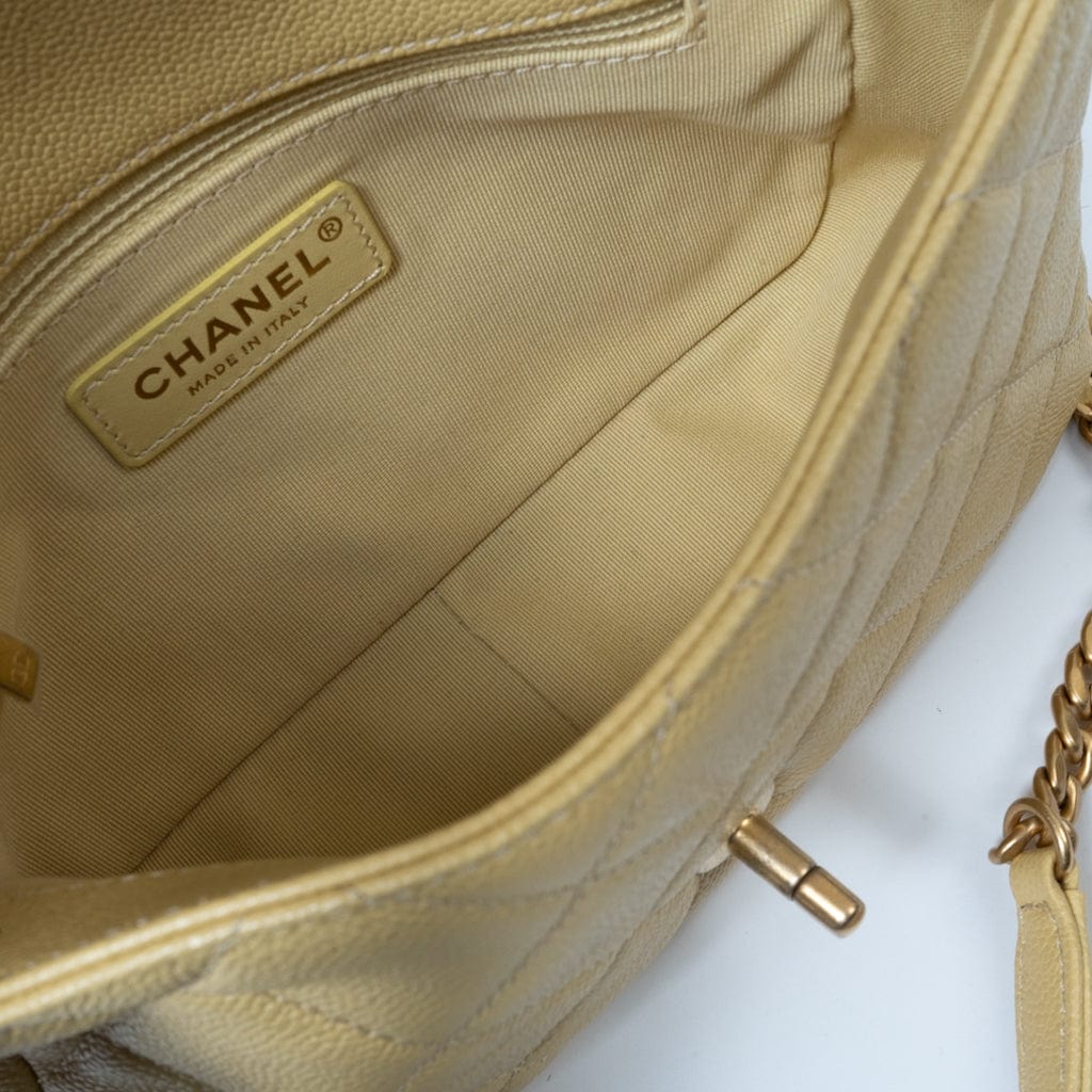 22P Shiny Yellow Caviar Quilted Small Chain Melody Flap