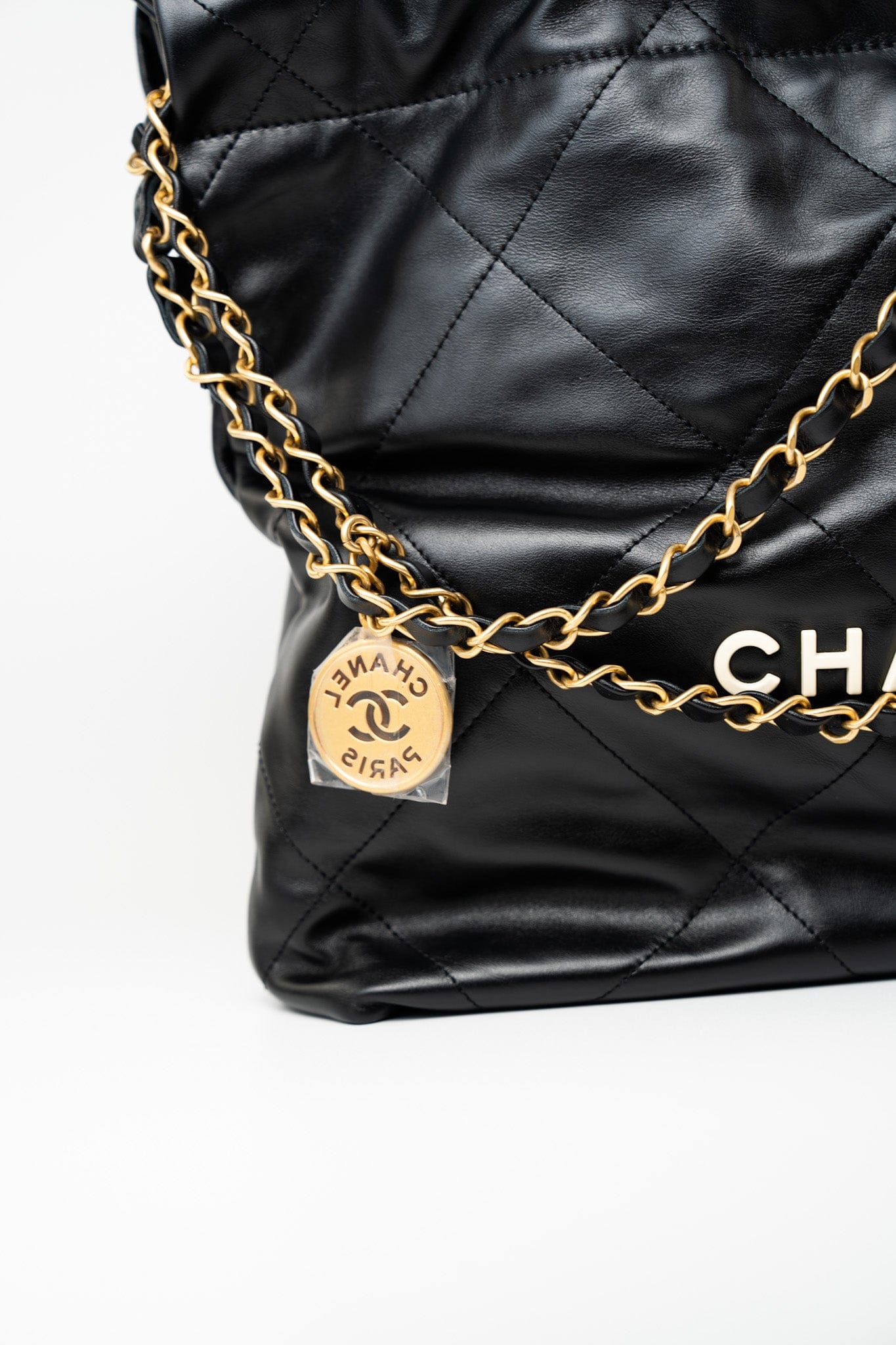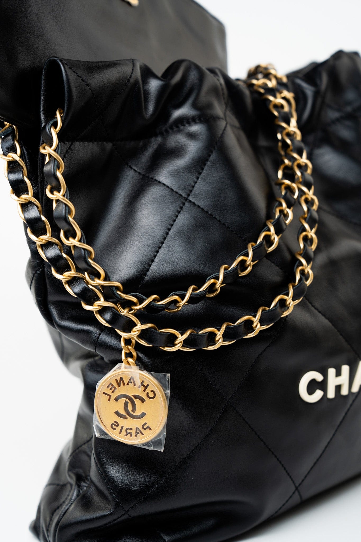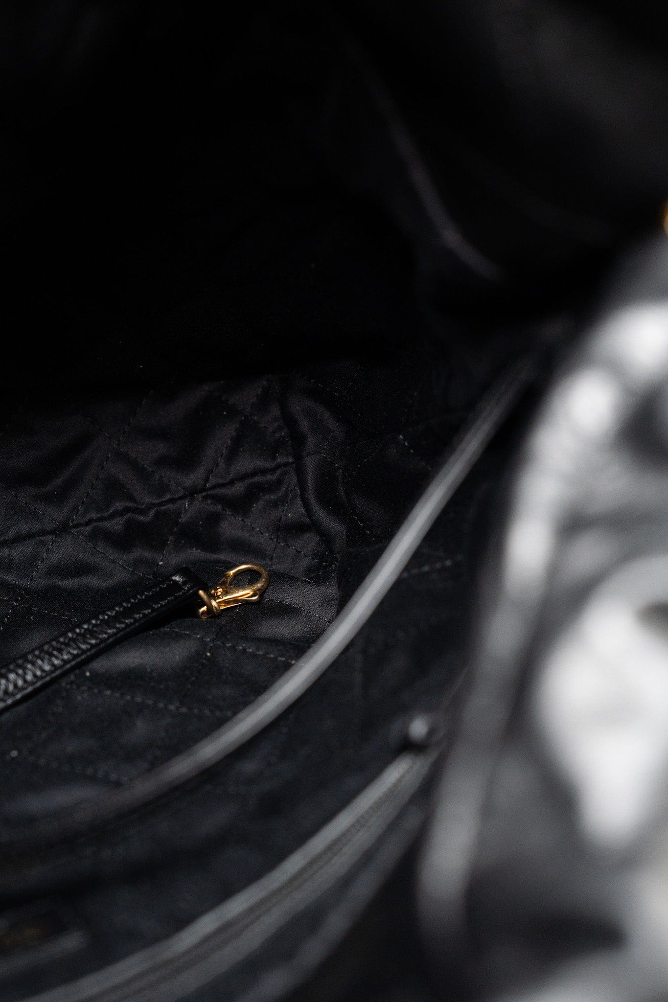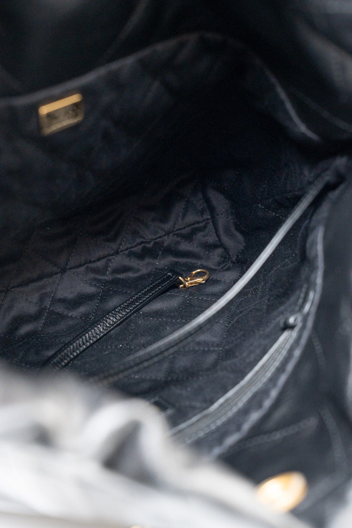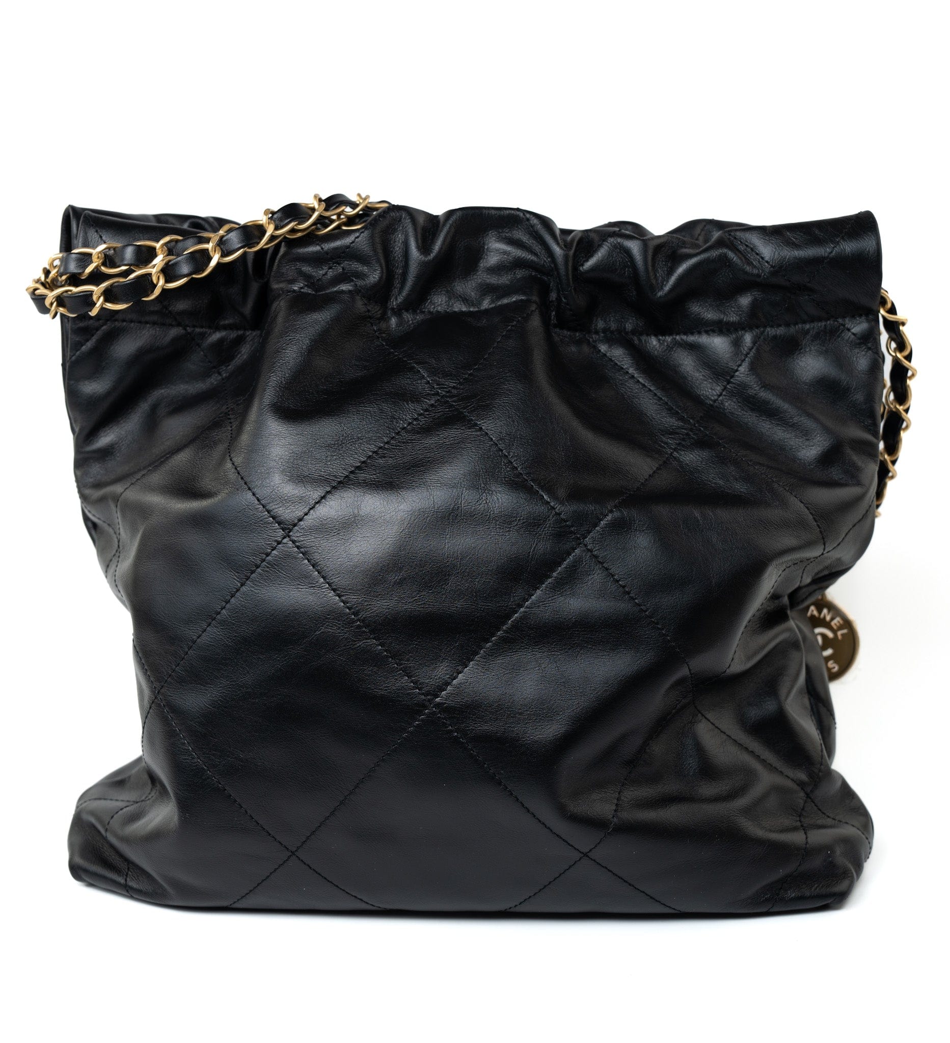 22S Black Calfskin Quilted 22 Drawstring Bag Small Antique Gold Hardware