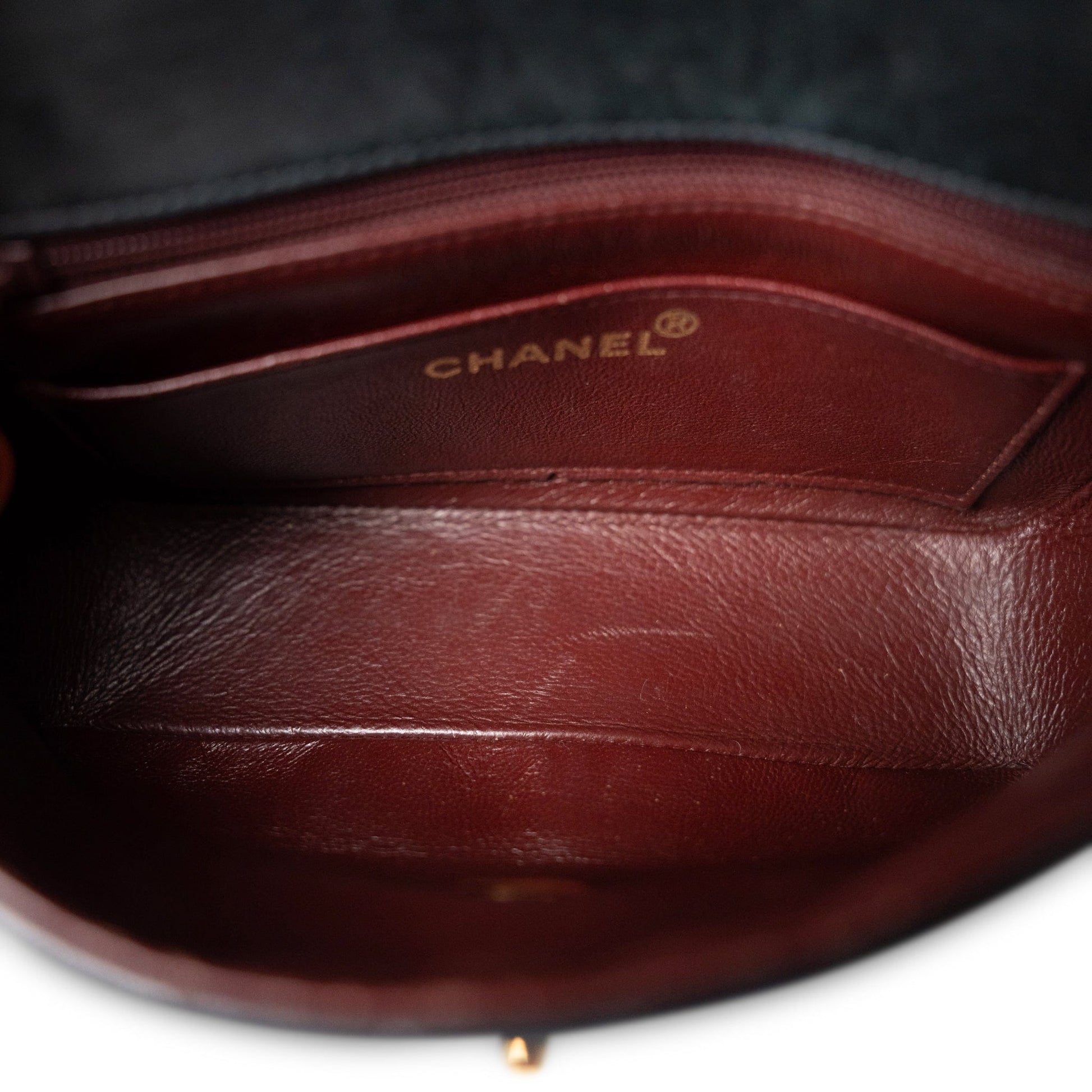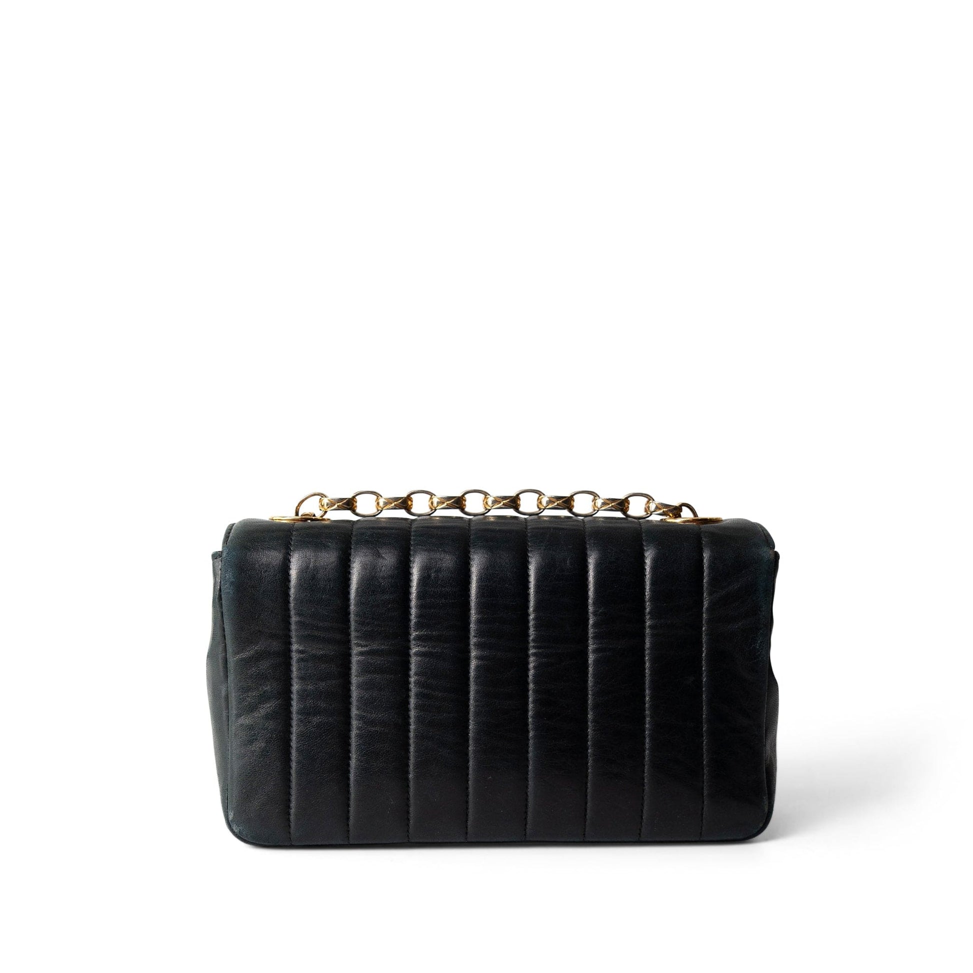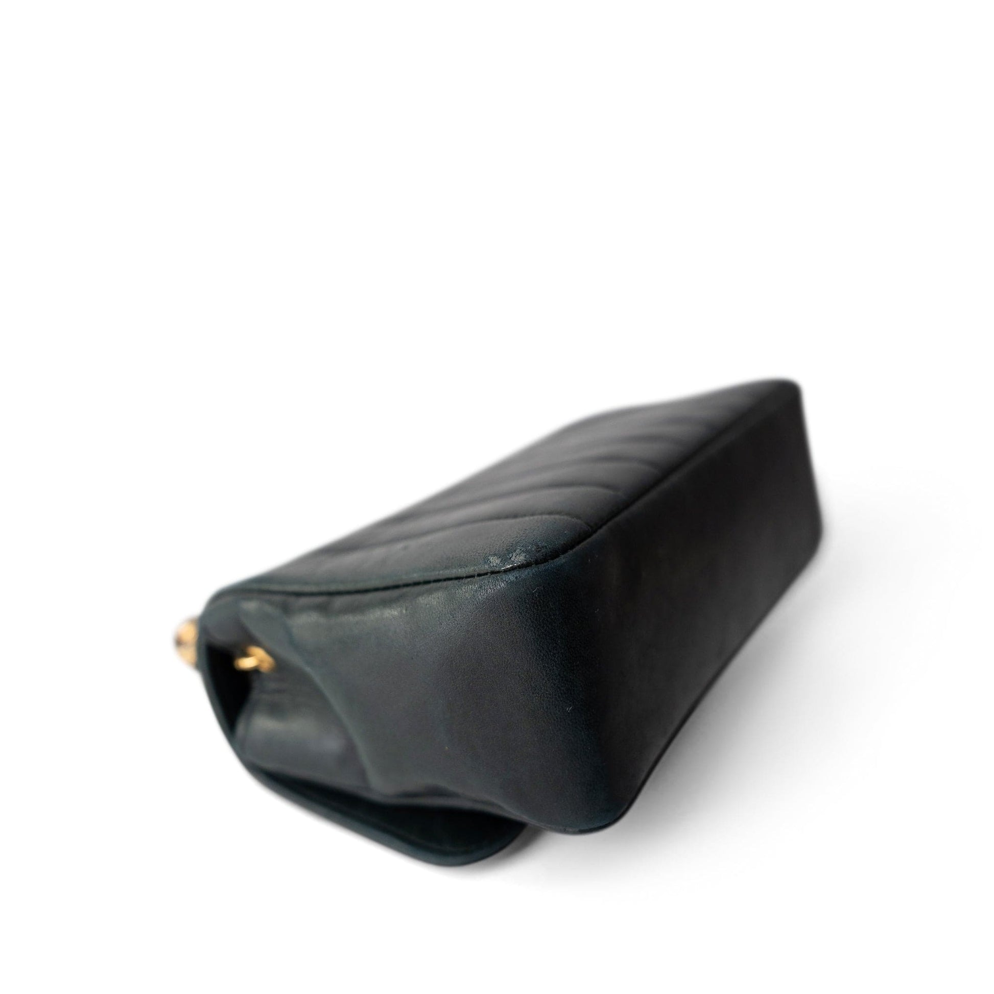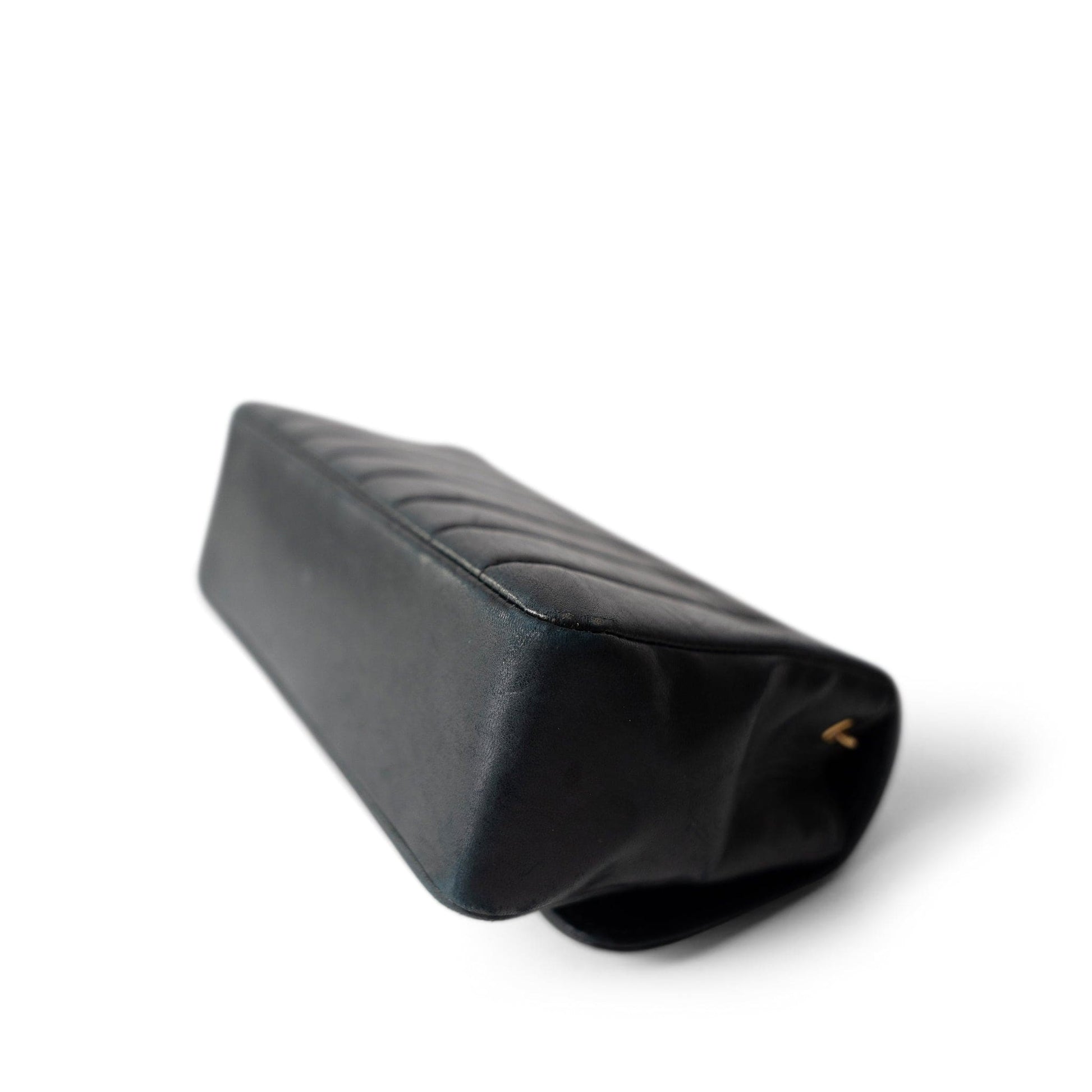 Vintage Mini Black Border Flap Lambskin Shoulder Bag Gold Hardware