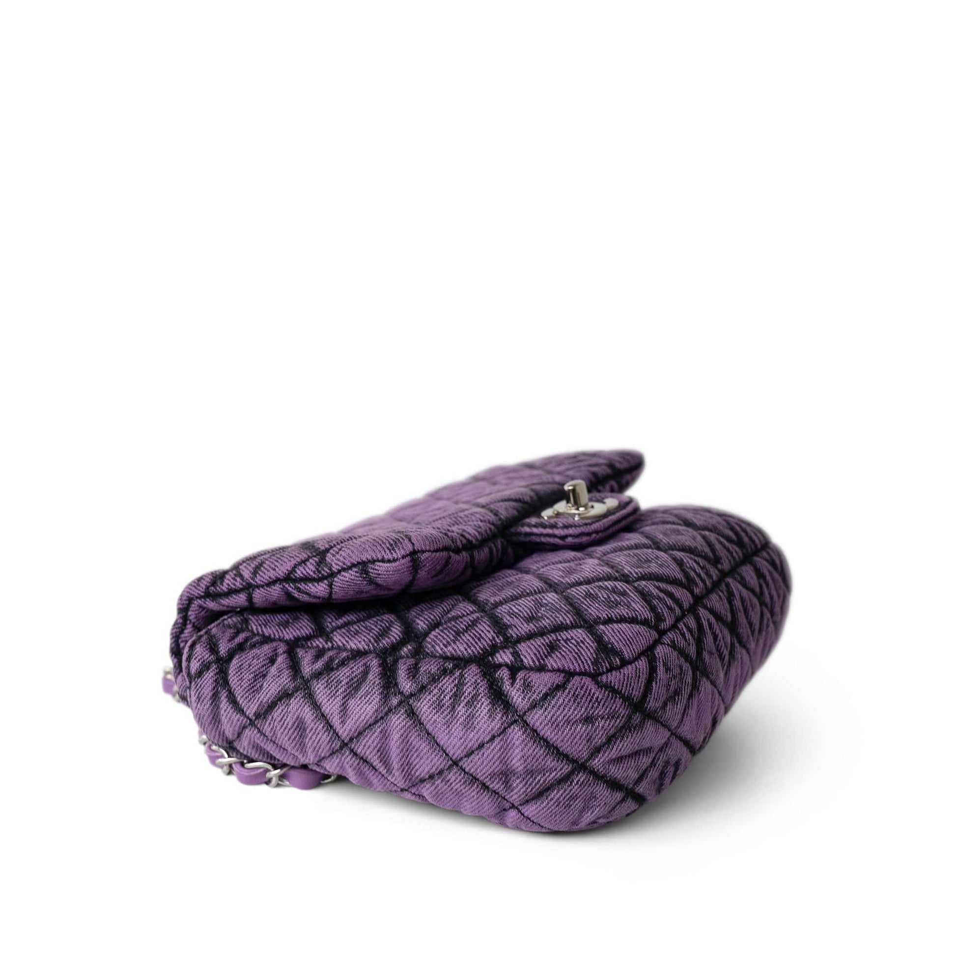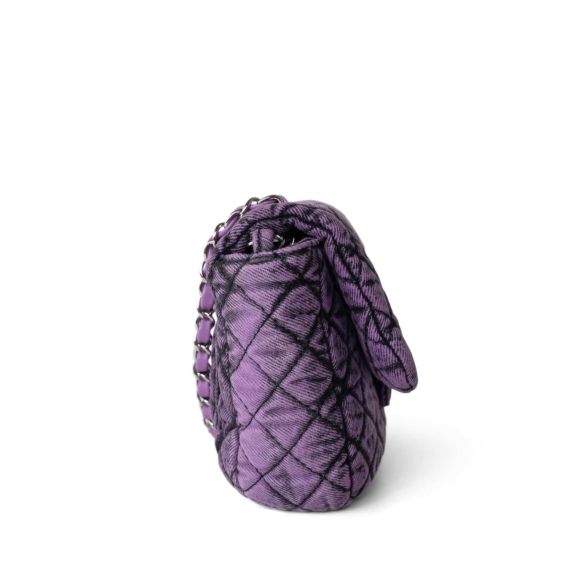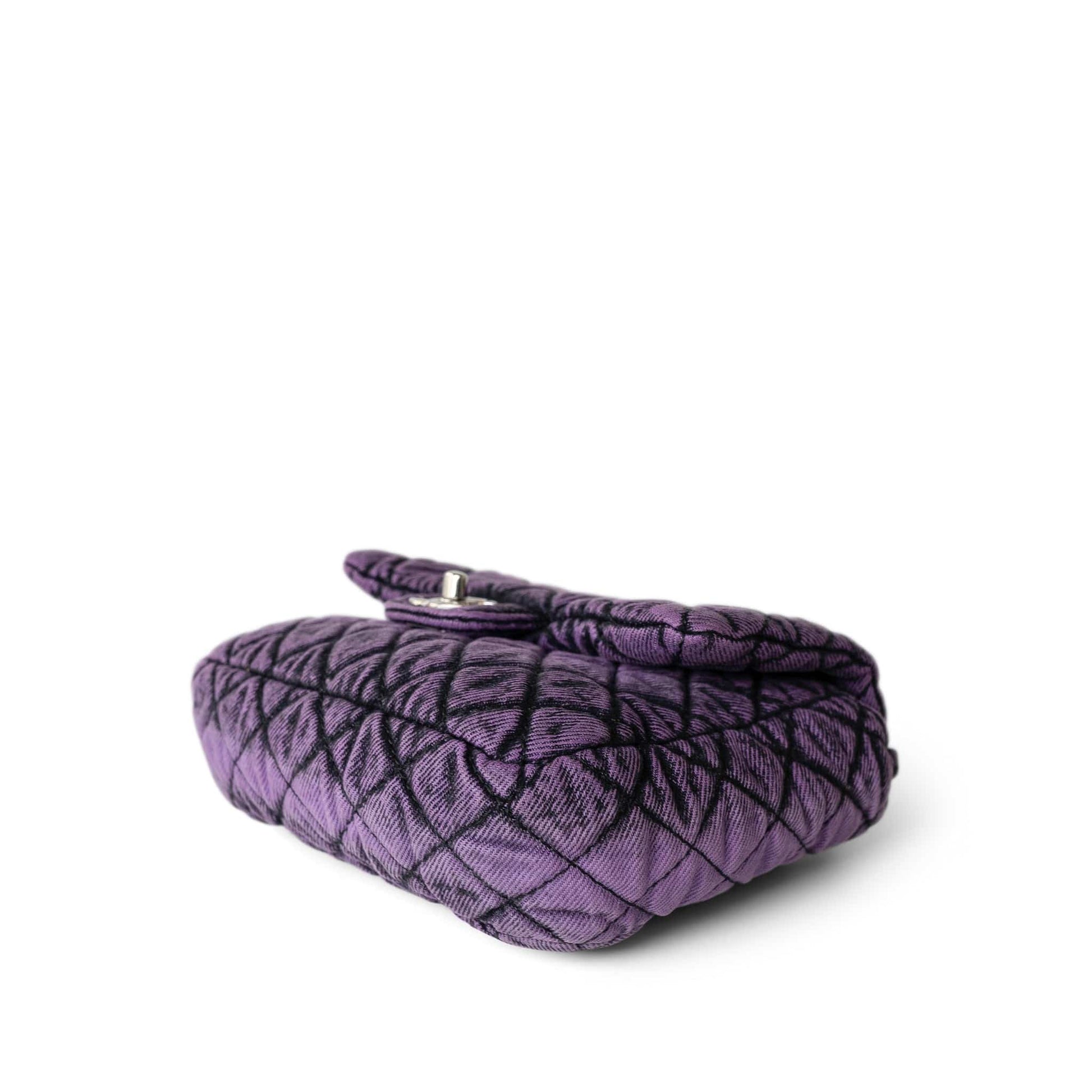 Washed Denim Quilted Small Purple Denimpression Flap Silver Hardware
