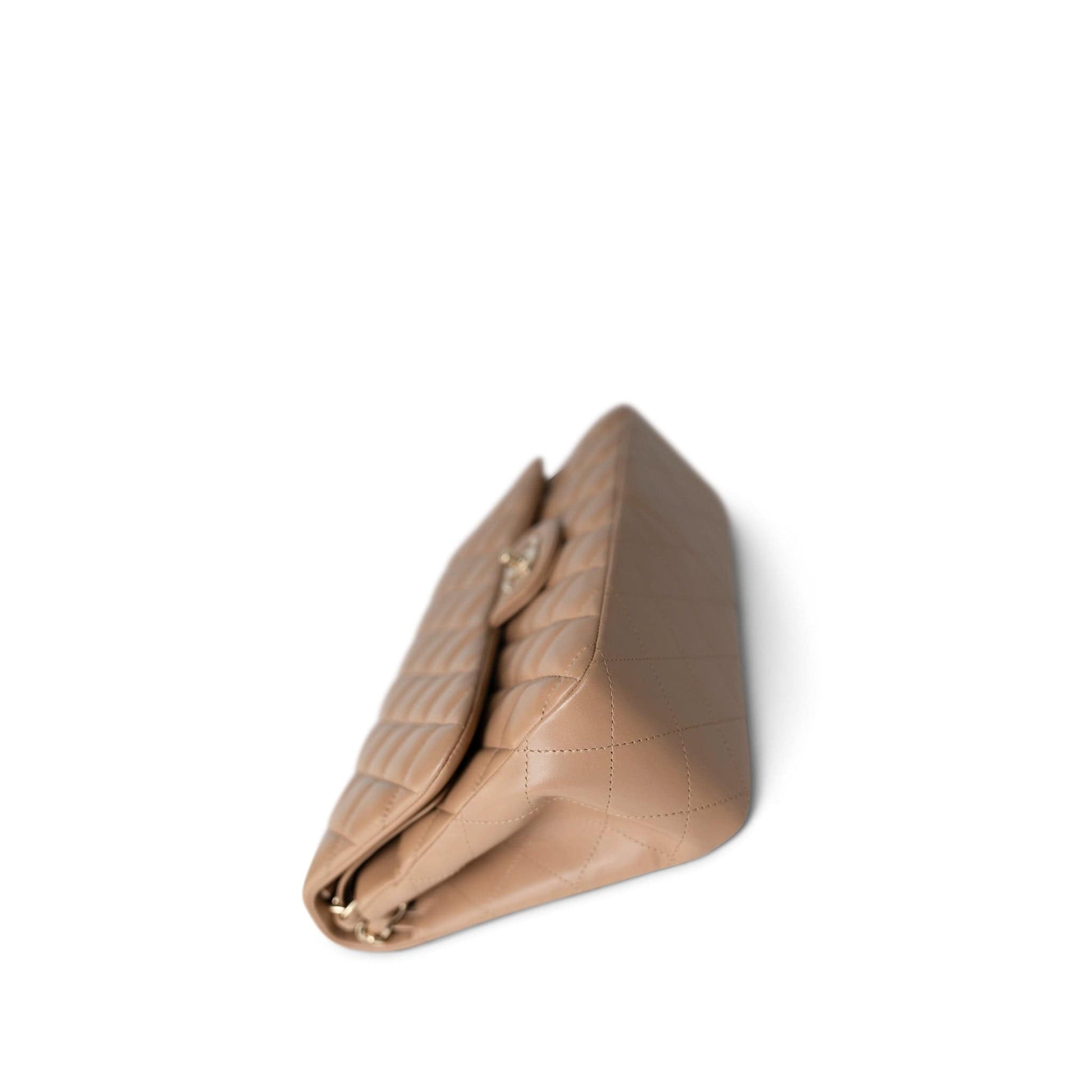 Dark Beige / Caramel Lambskin Quilted Jumbo Classic Flap Light Gold Hardware