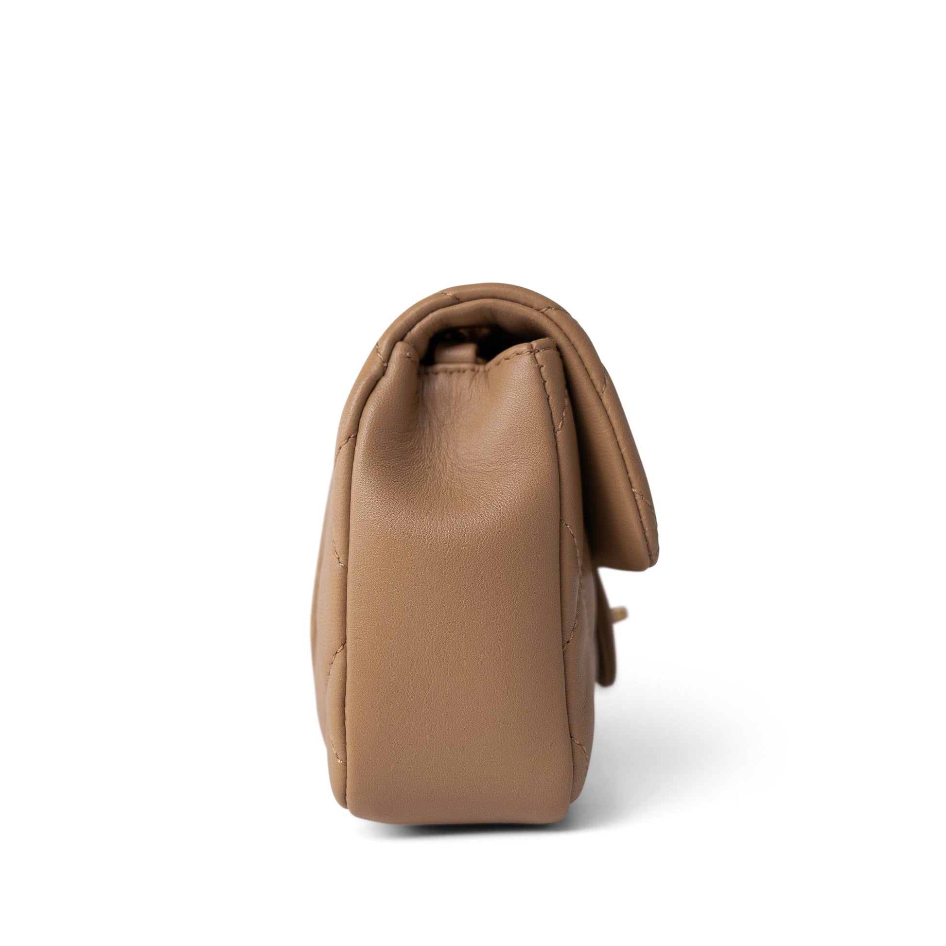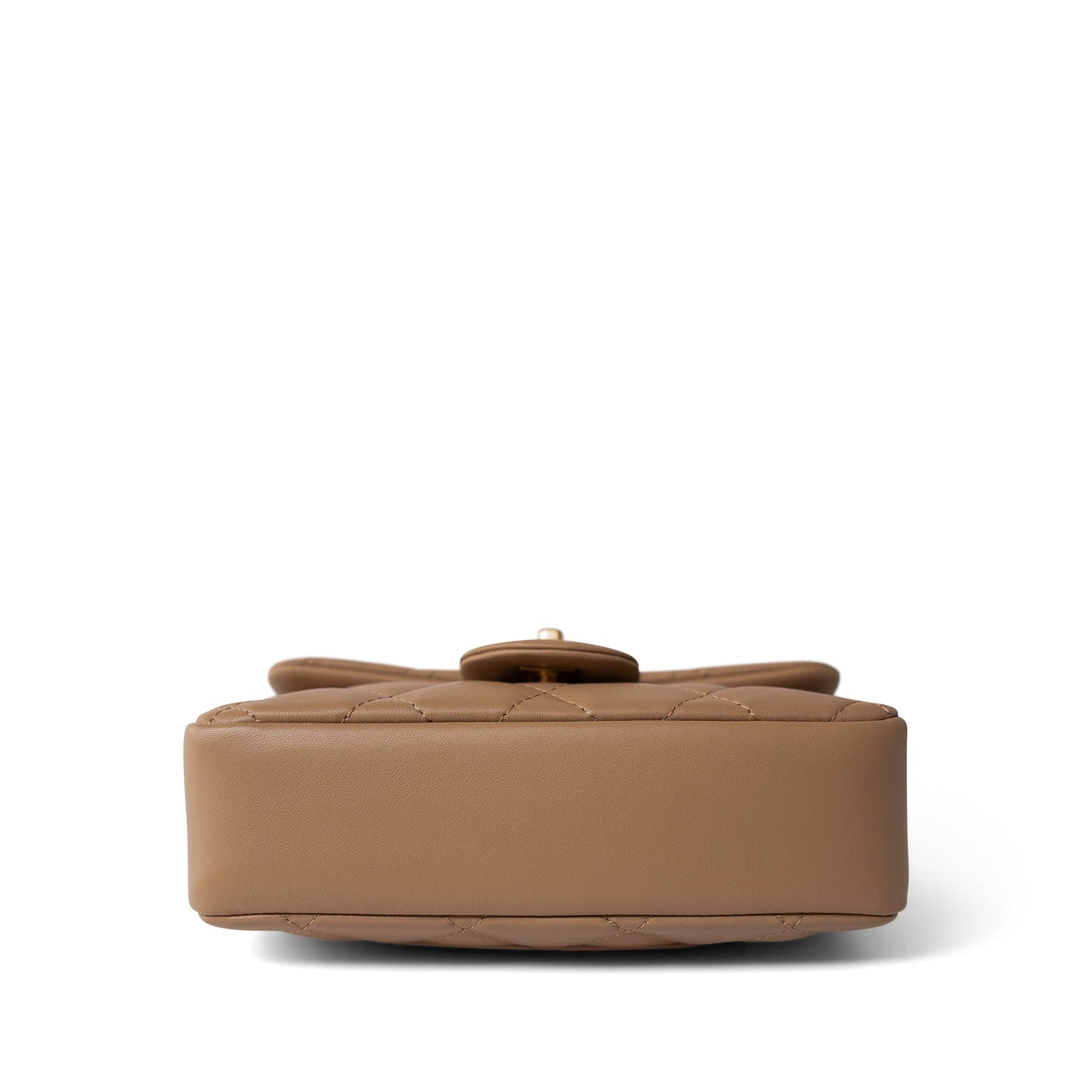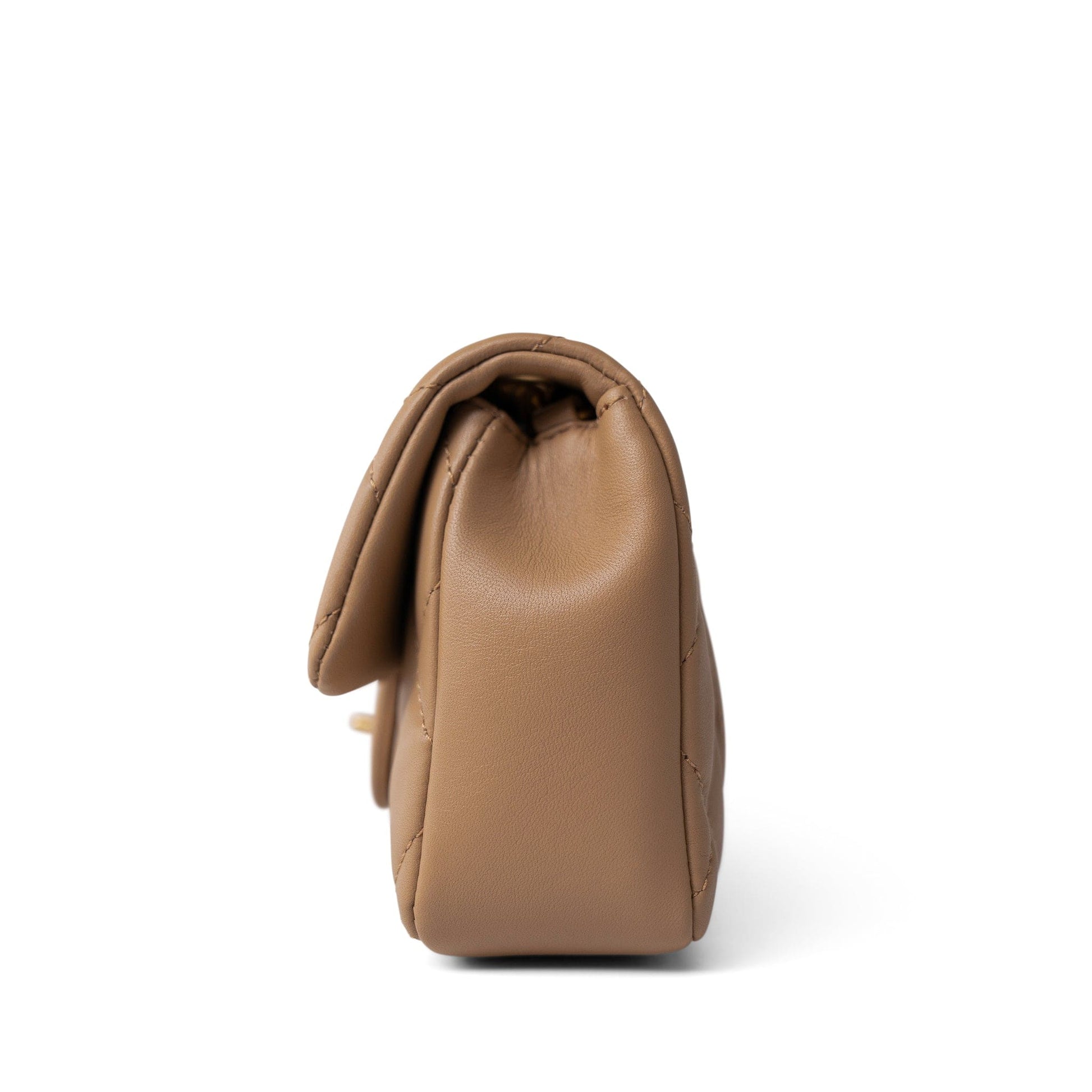 Dark Beige Lambskin Quilted Heart Charms Mini Flap Aged Gold Hardware