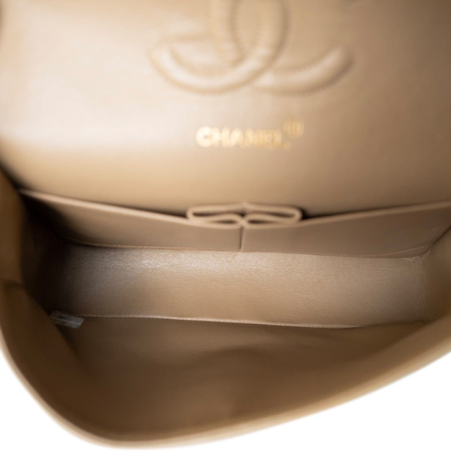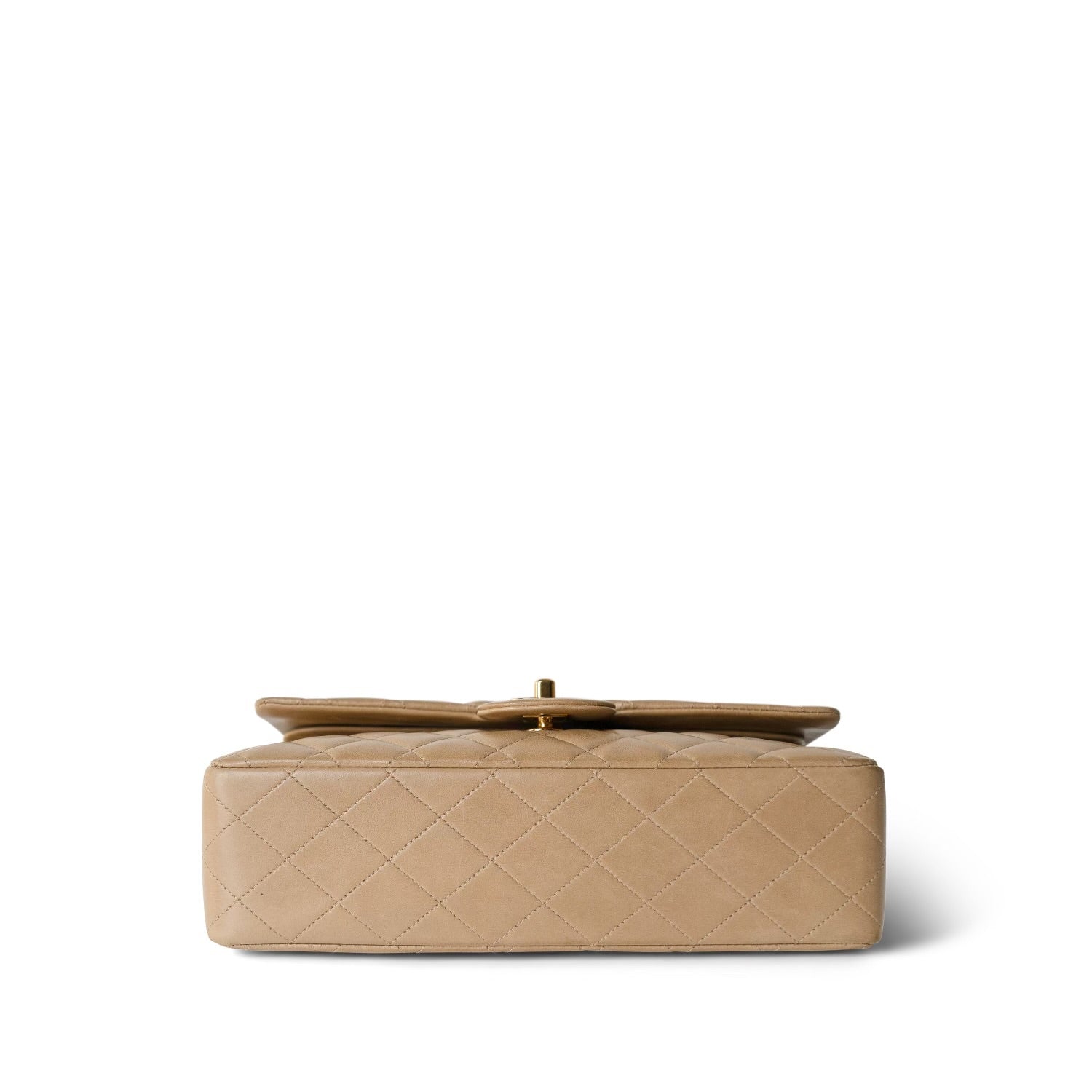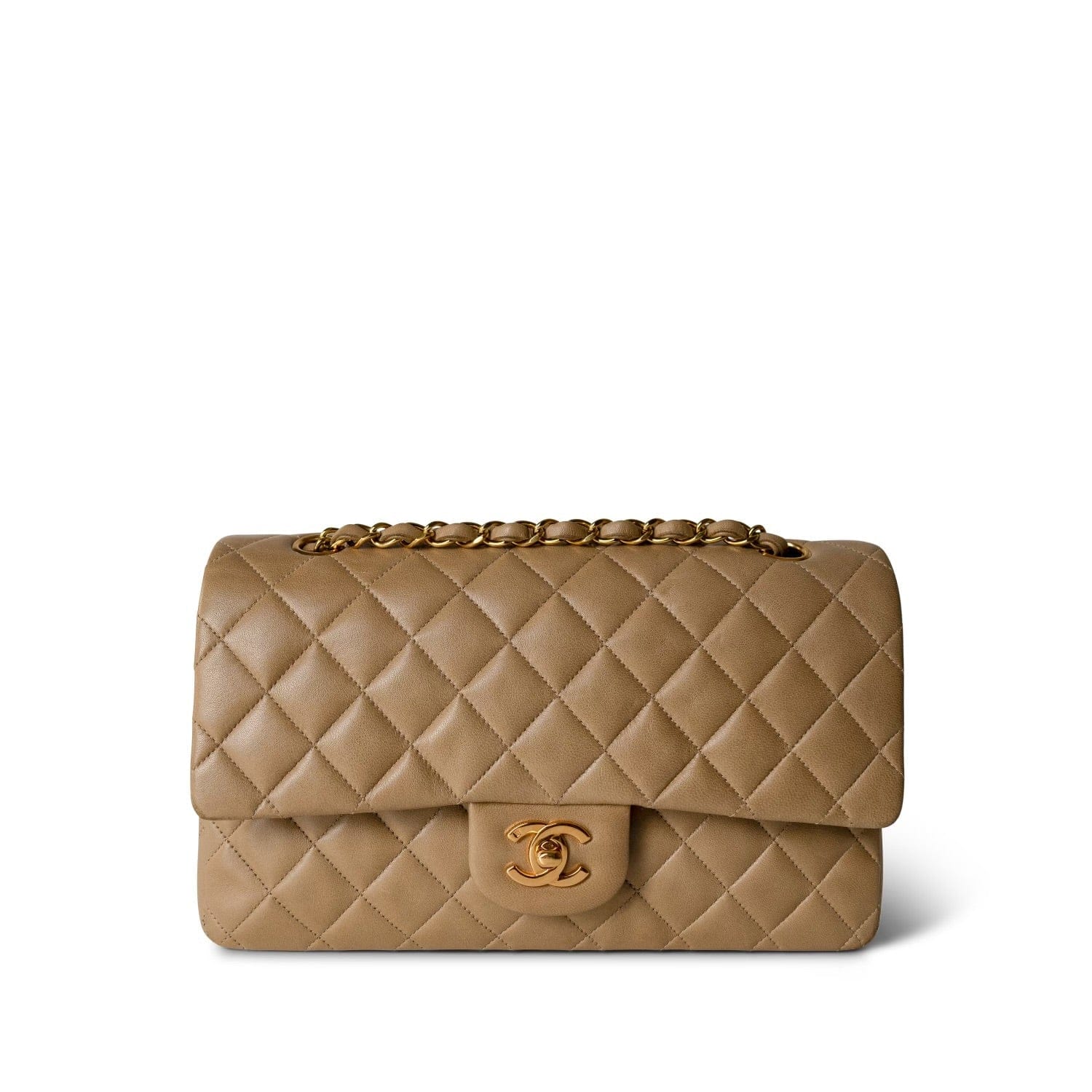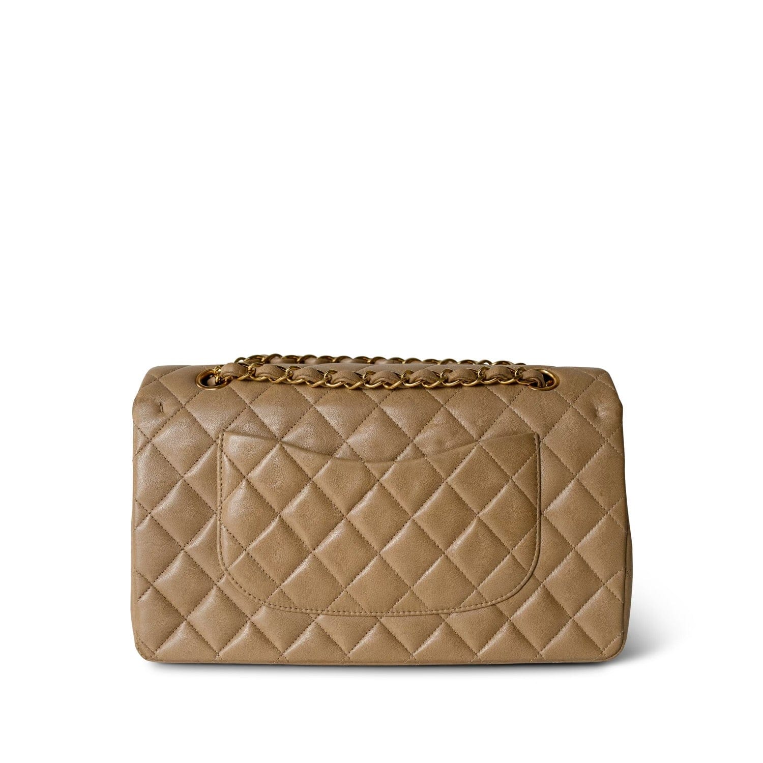Dark Beige Lambskin Quilted Vintage Classic Flap Medium Gold Hardware