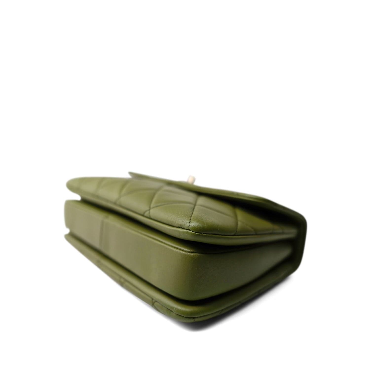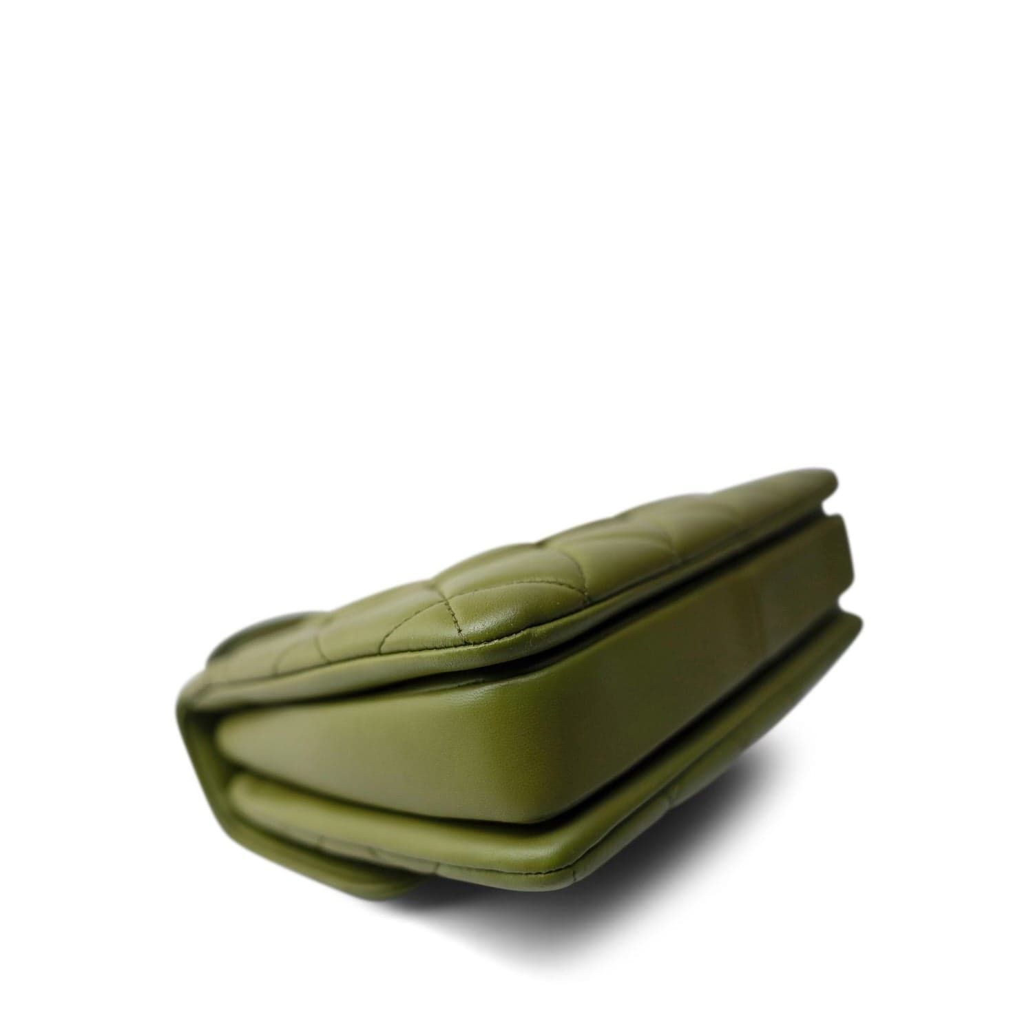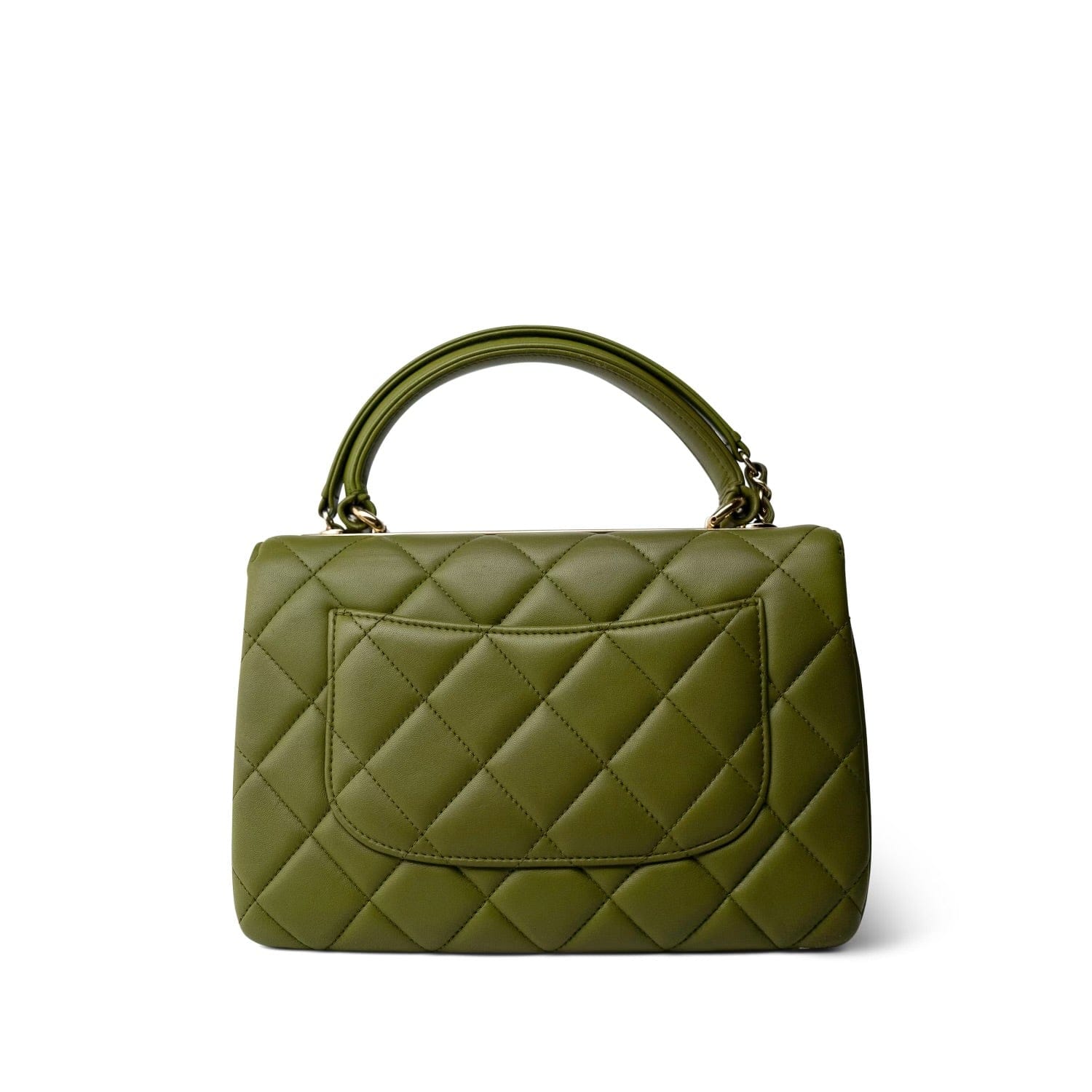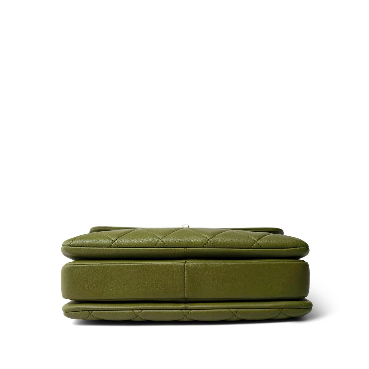Dark Green Lambskin Quilted Trendy CC Small Light Gold Hardware