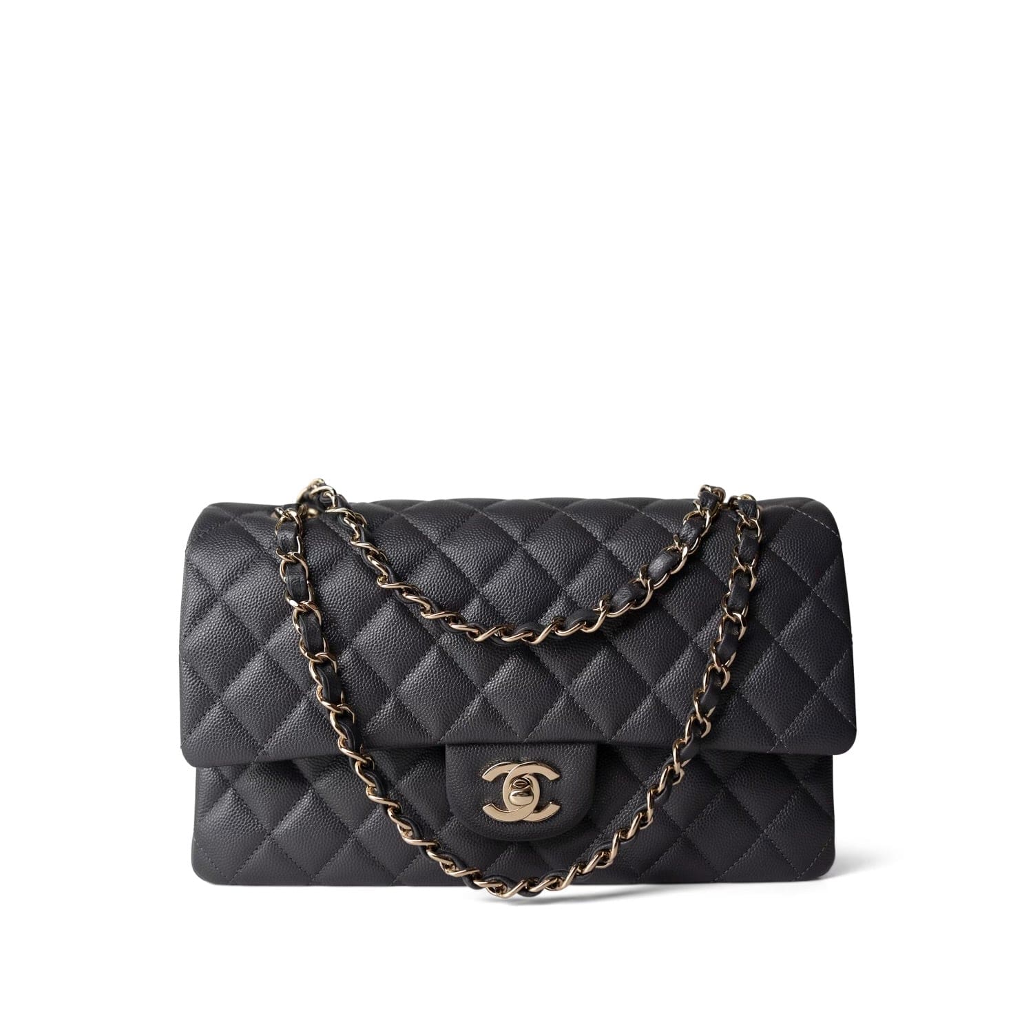 21B Dark Grey Caviar Quilted Classic Flap Medium Light Gold Hardware