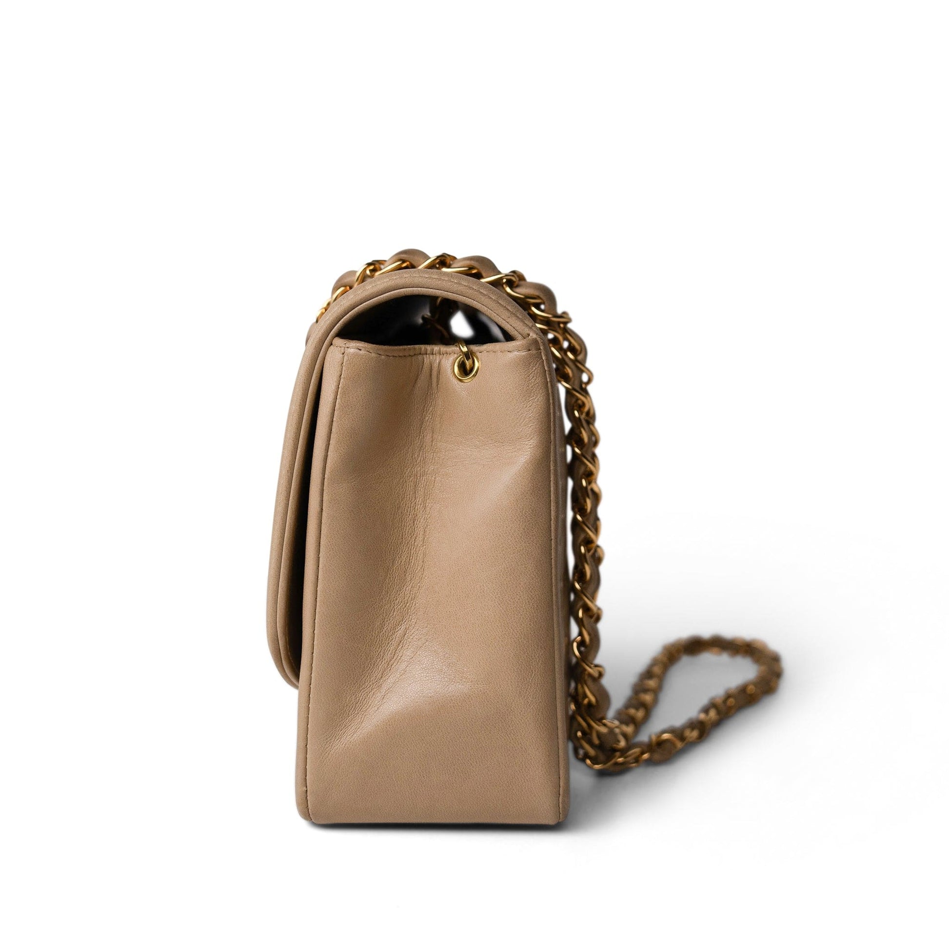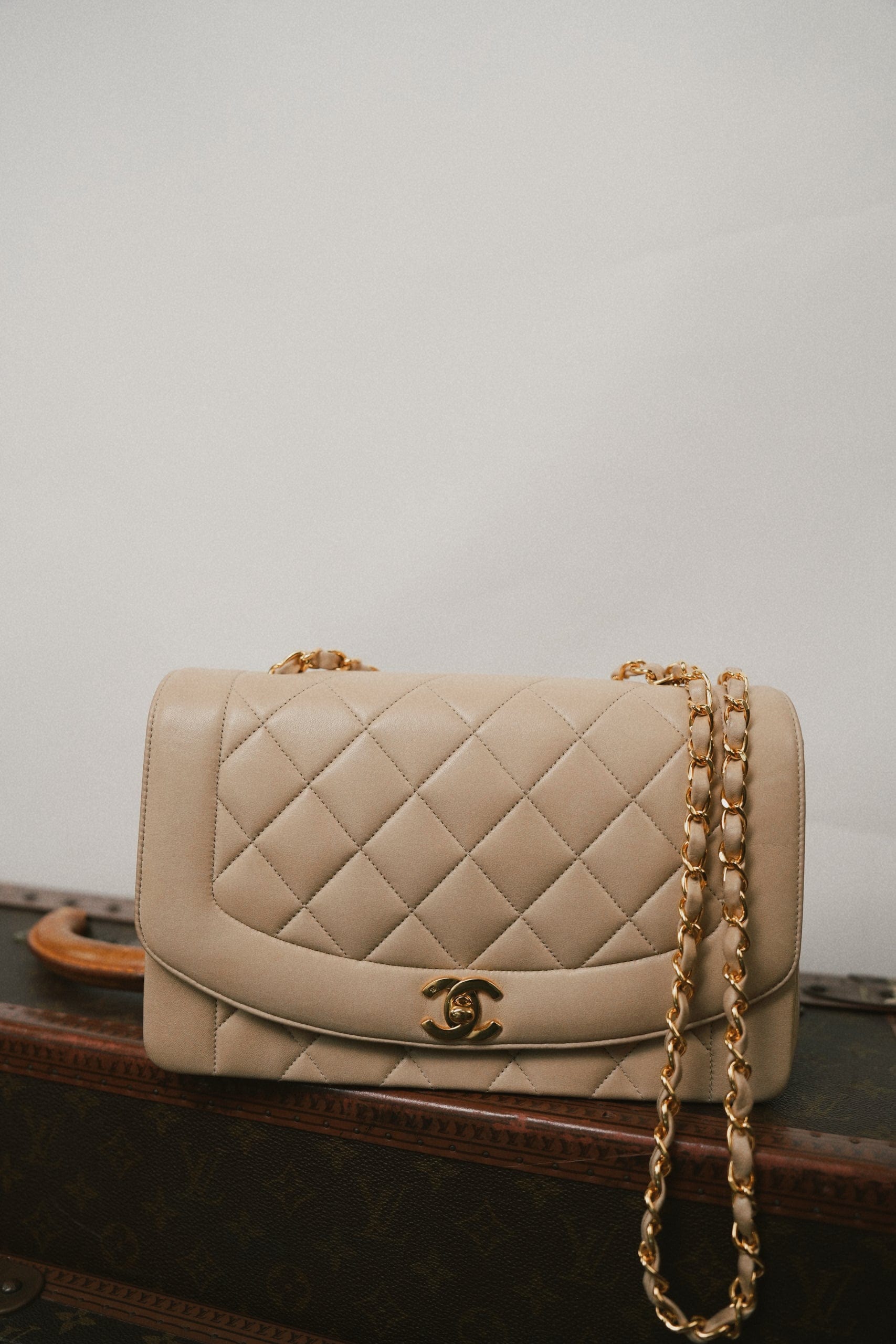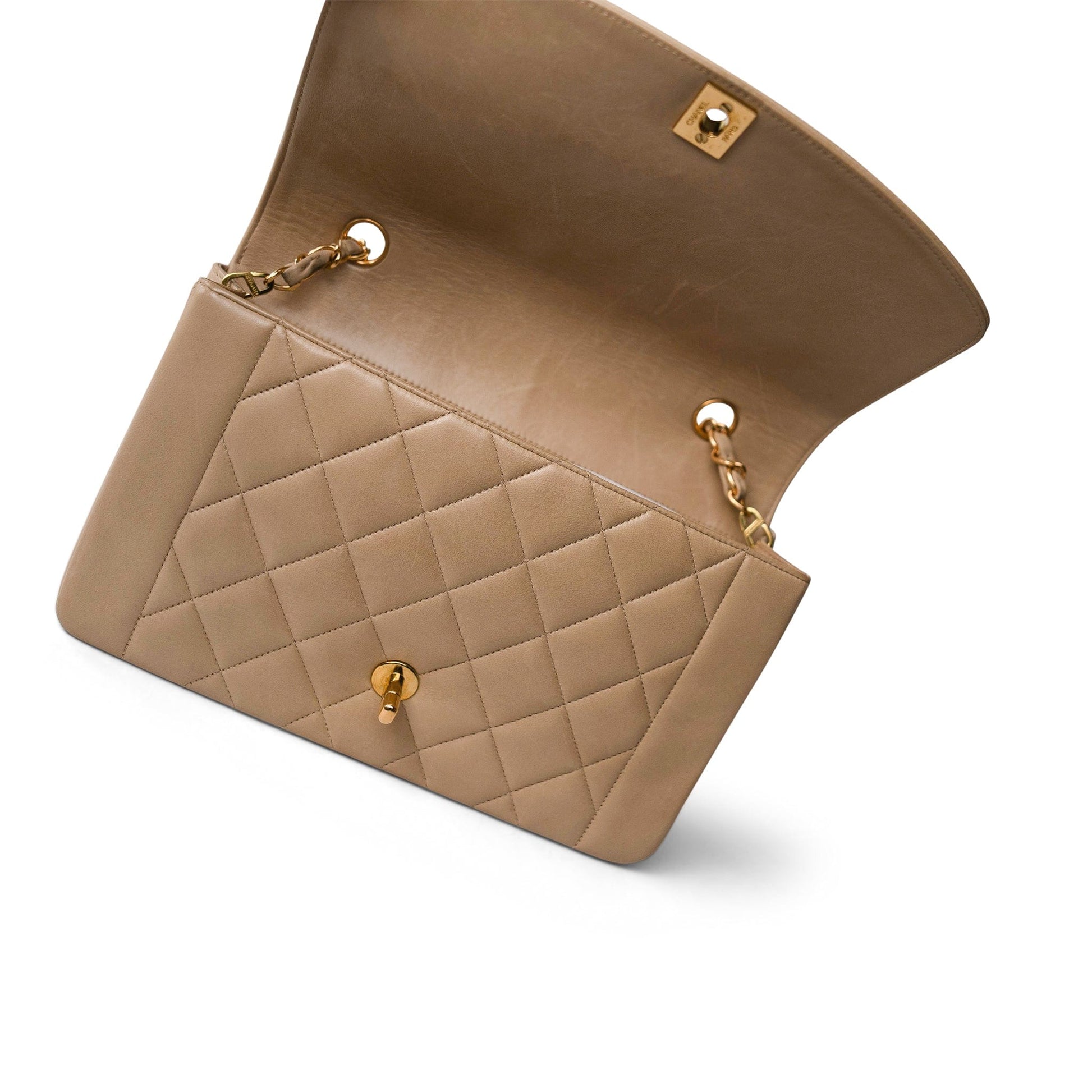 Diana Flap Beige Lambskin Quilted Medium Gold Hardware