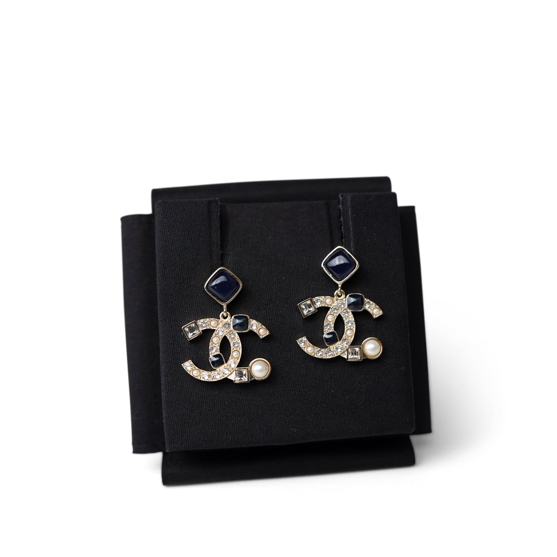 22B CC Dangle Earrings Golden, Pearly White, Crystal and Black/Navy
