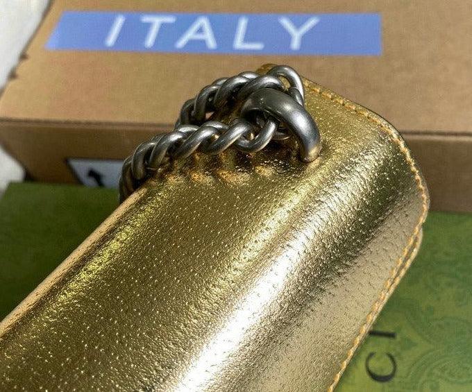 defining tiger head closure—a unique detail referencing the Greek god Dionysus, who in myth is said to have crossed the river Tigris on a tiger sent to him by Zeus—is further enhanced with sparkling crystals. The sliding chain strap can be worn multiple ways, changing between a shoulder, crossbody and a top handle bag.
