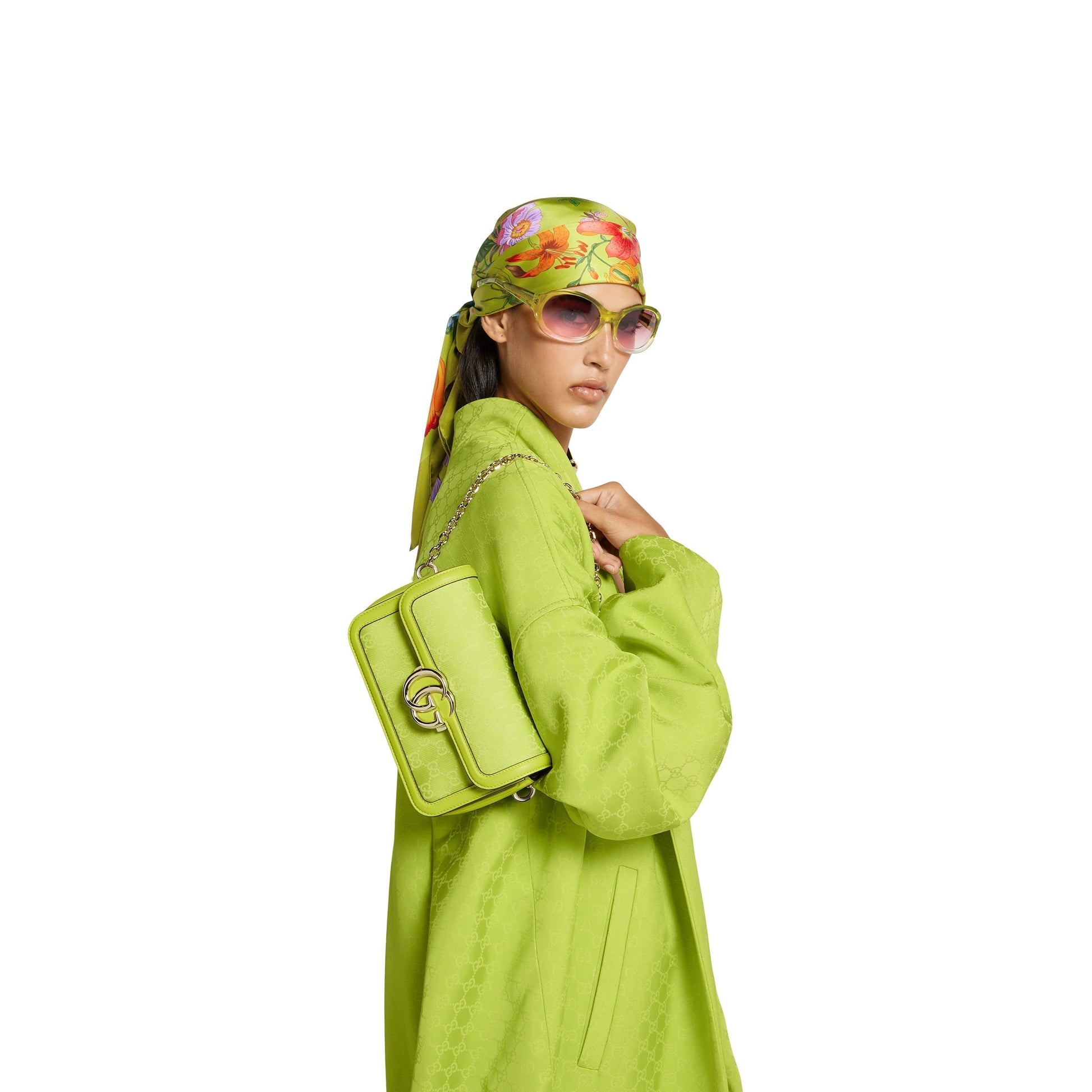 The Gucci Go is made for movement. In the Spring Summer 2025 collection, this shoulder bag is characterized by sophisticated yet lightweight GG canvas and a refined chain strap. It also features functional internal organization, and a detachable mirror on the back.