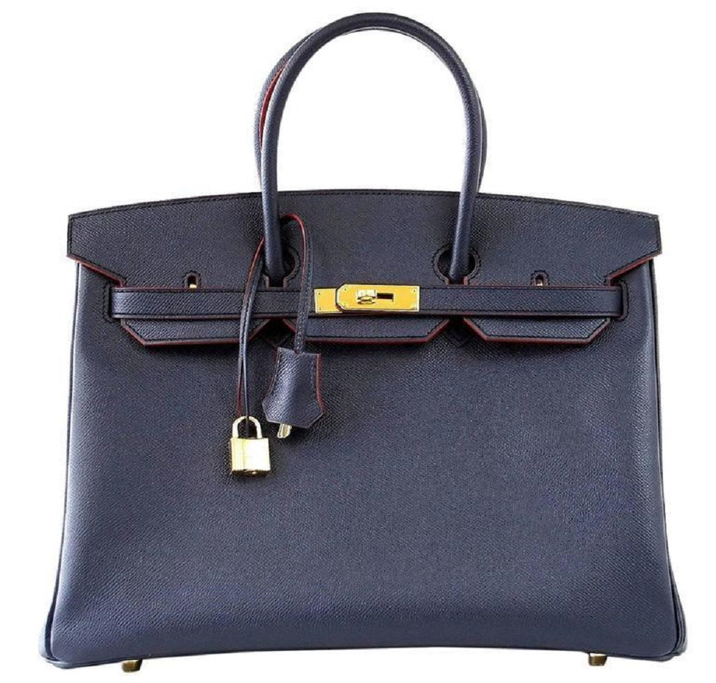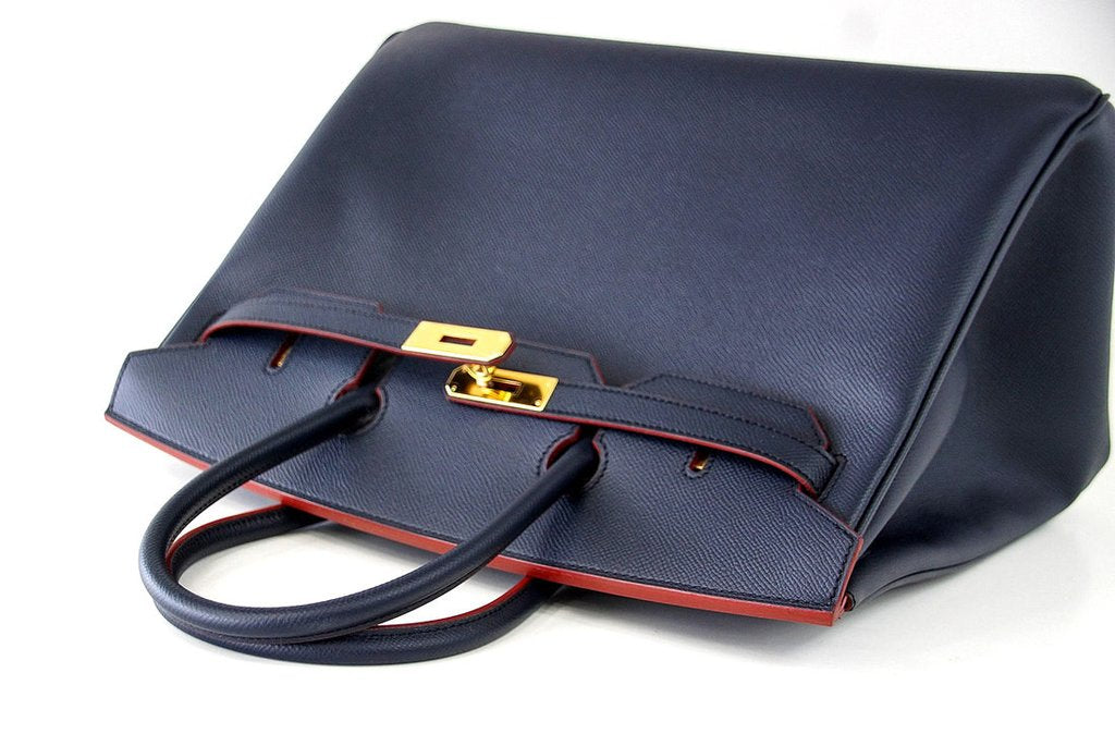 This striking Limited Edition Hermès Birkin 35 Bag is extremely hard to find. Crafted from lightweight Epsom Leather, the bag features two popular Hermès shades - Navy as the primary color and Rouge along the trimmings and contours. The bag is accentuated with Gold hardware and comes with all original accessories.