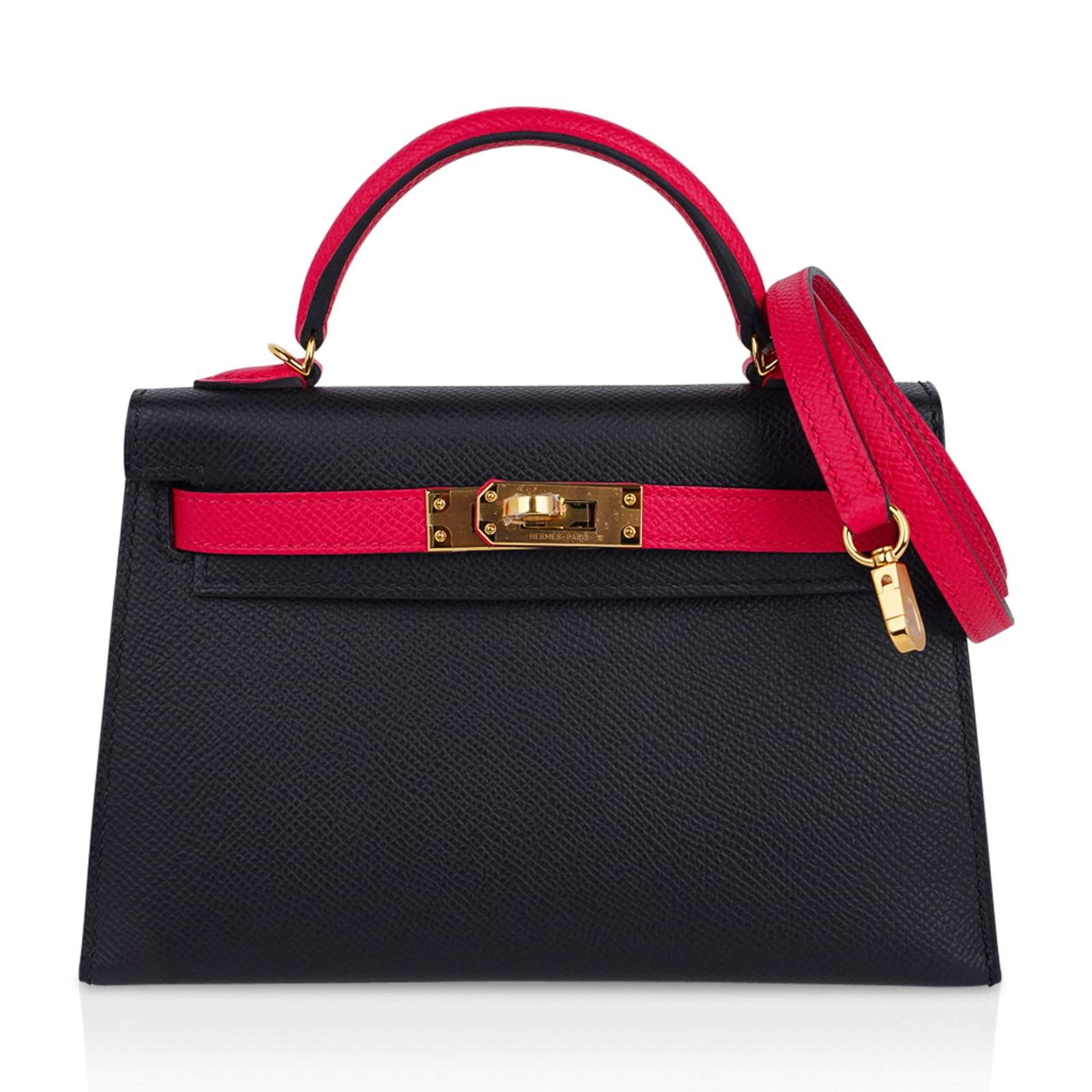 This incredibly rare Special Order Hermès Kelly Sellier 20cm Bag combines two colors - Black and Rose - both of which are known as Extreme. The bag is completed with the poplar Epsom leather and gold hardware. The horseshoe stamp shows the rarity of this bag which comes with the shoulder strap, original box, and sleeper.