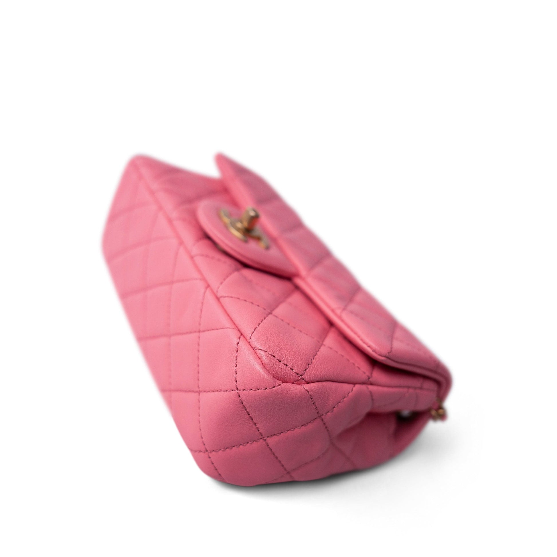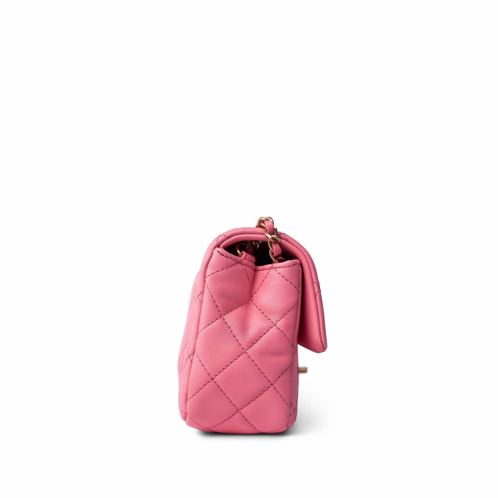22S Pink Lambskin Quilted Mini Rectangular Pearl Crush Antique Gold Hardware