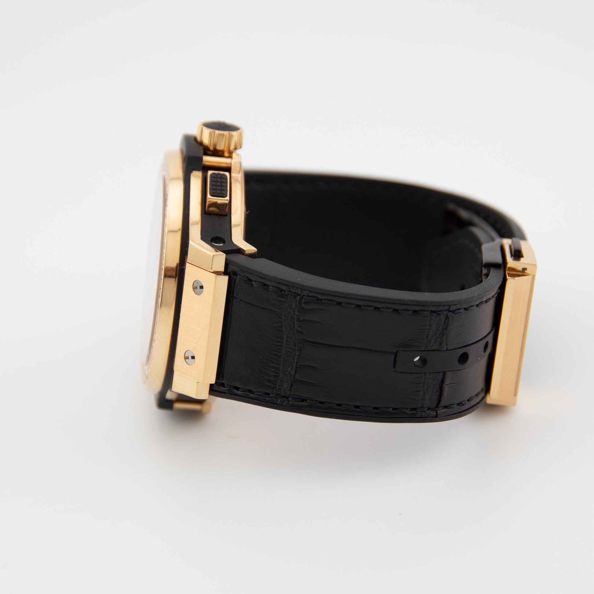 Case Material: 18K Rose Gold case with brushed & polished finishes.