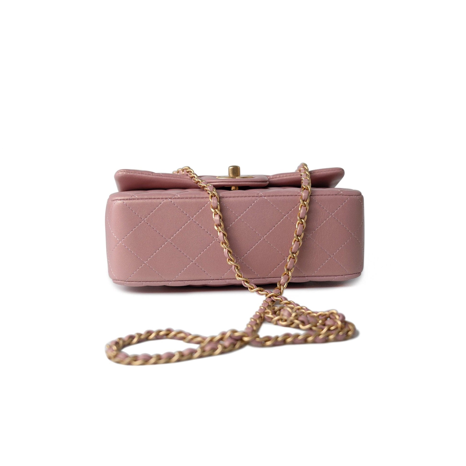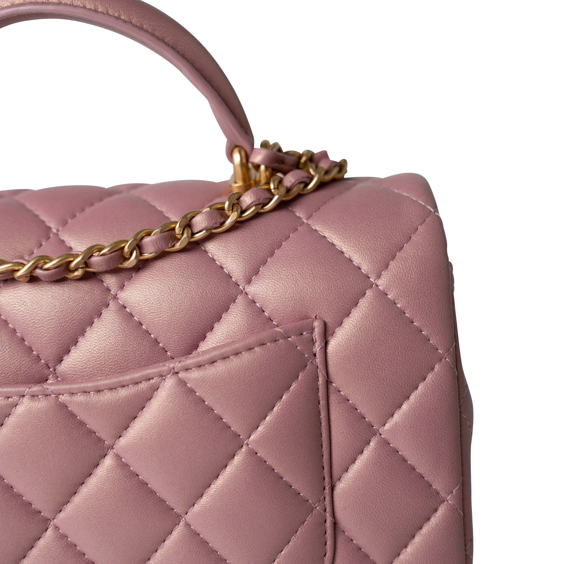 21S Iridescent Pink/ Rose Lambskin Quilted Mini Top Handle Antique Gold Hardware
