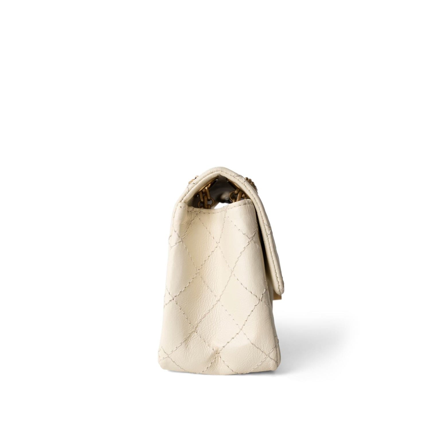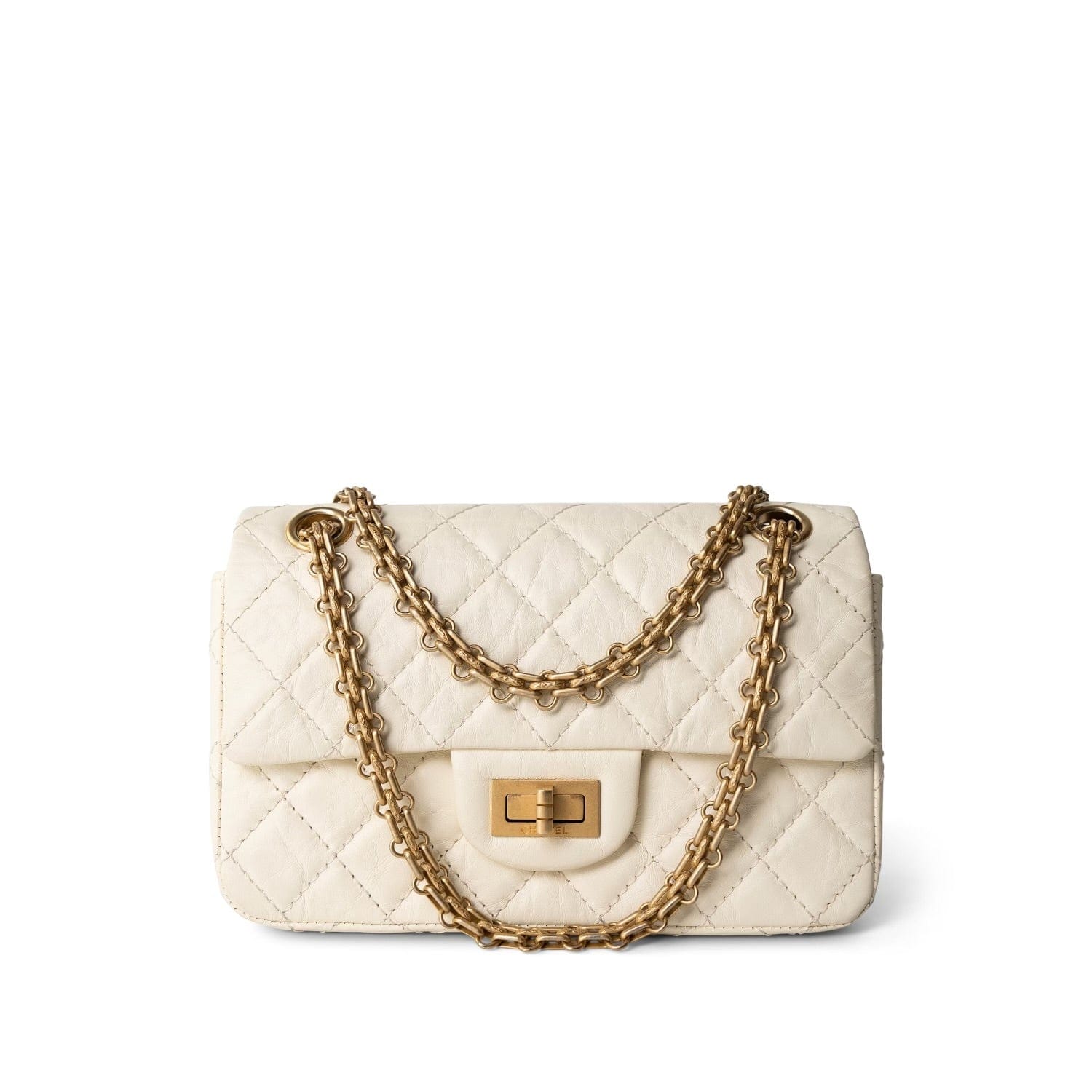 Ivory Aged Calfskin Quilted Mini Reissue Flap Aged Gold Hardware