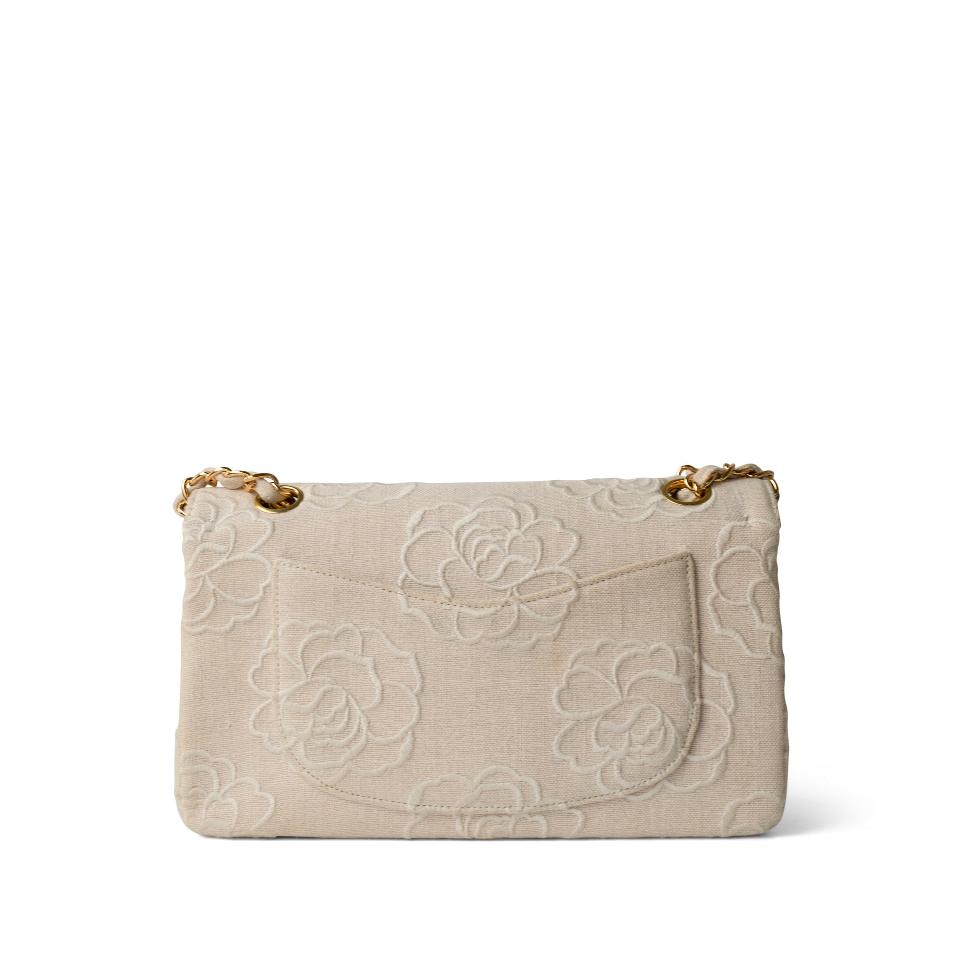 Ivory Canvas Camellia Classic Double Flap Gold Hardware Vintage