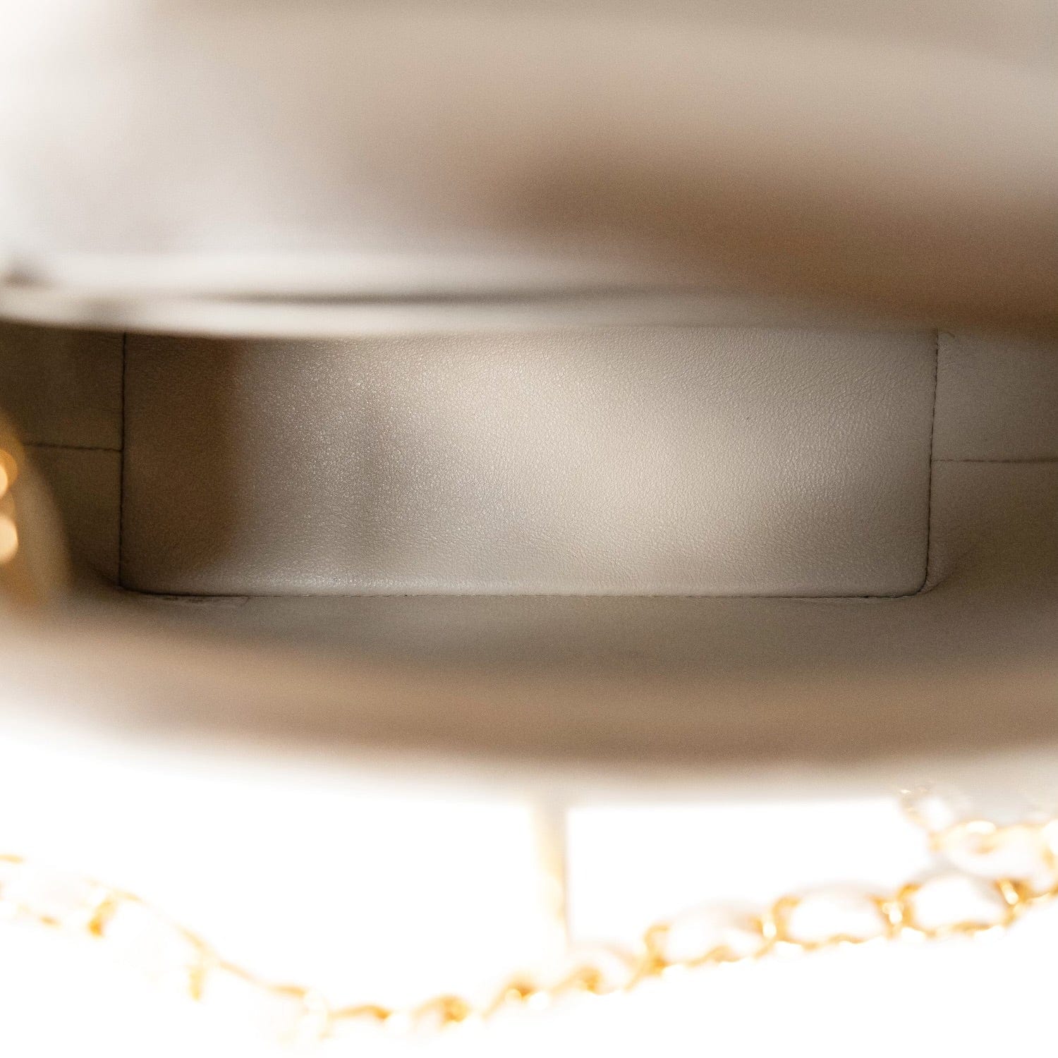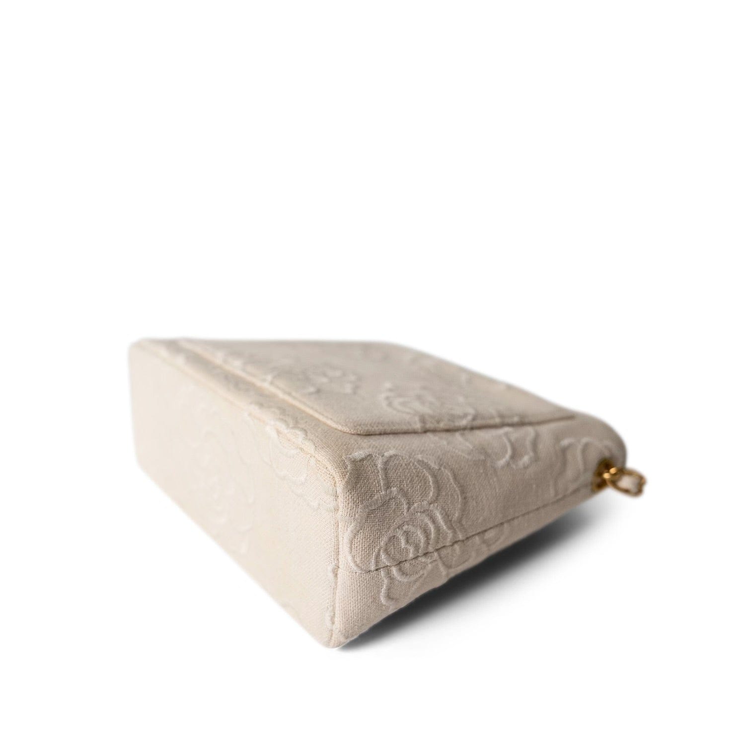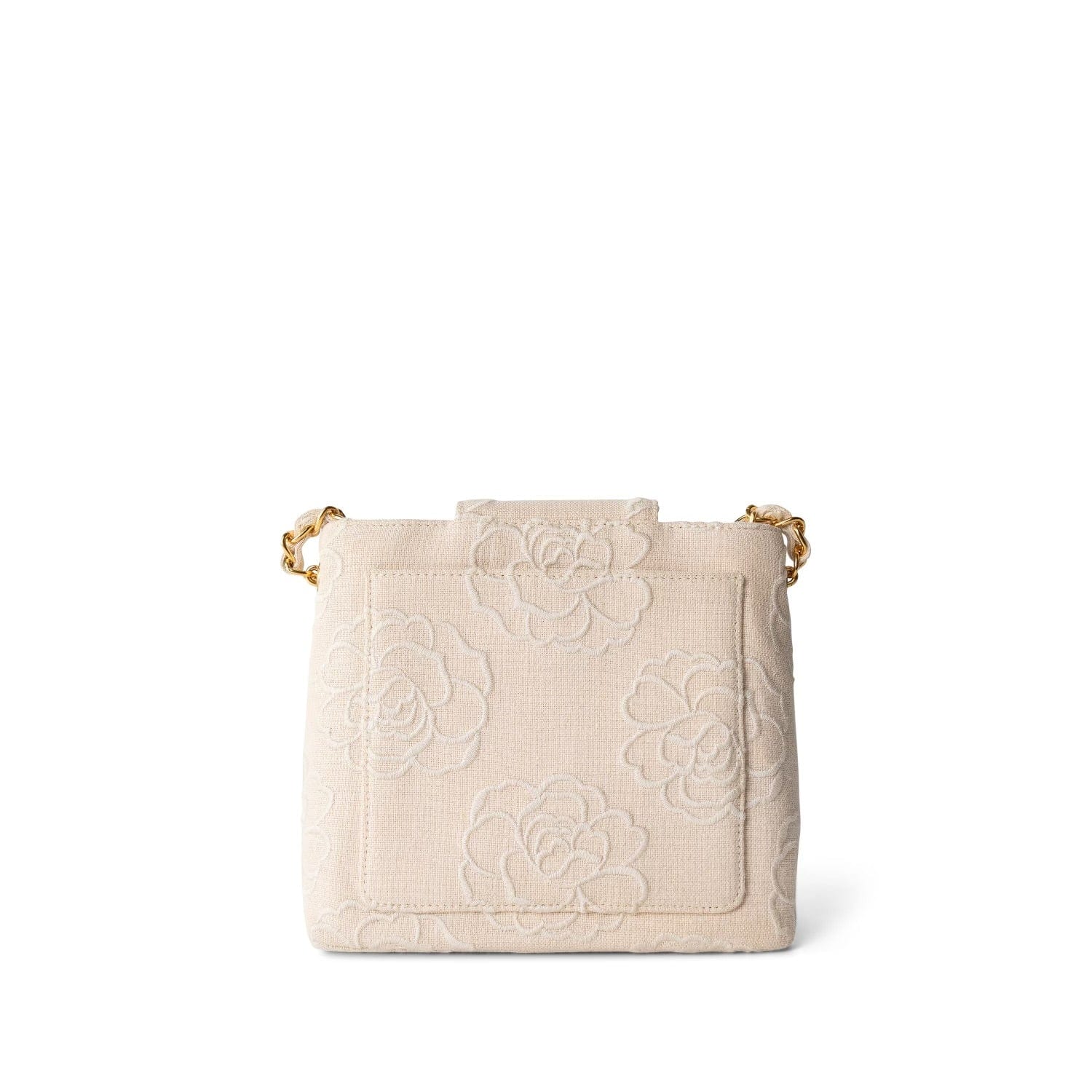 Ivory Canvas Camellia Bucket Bag Gold Hardware