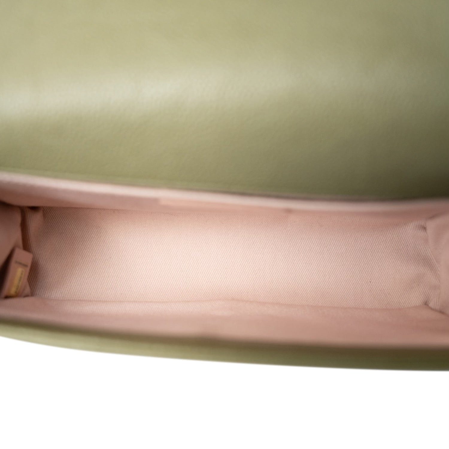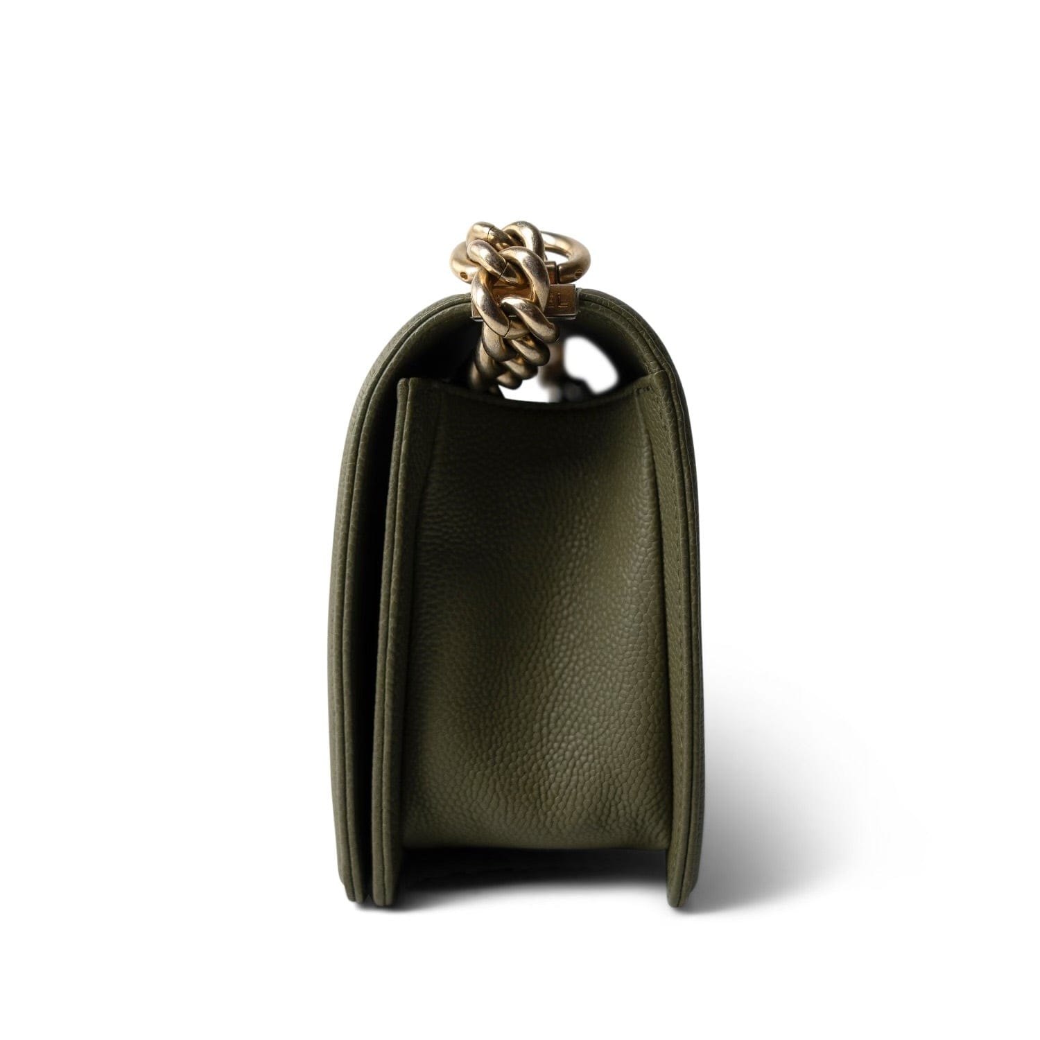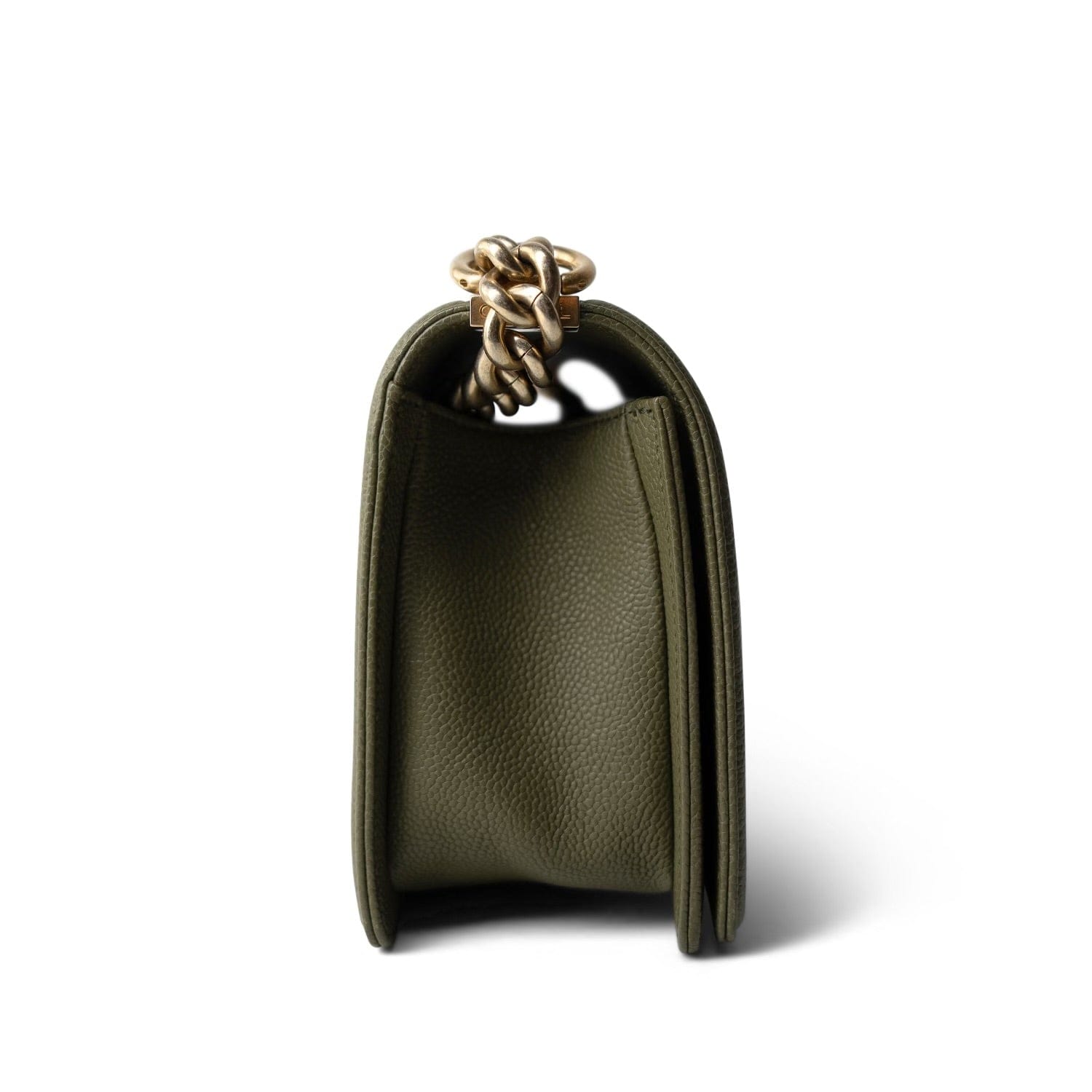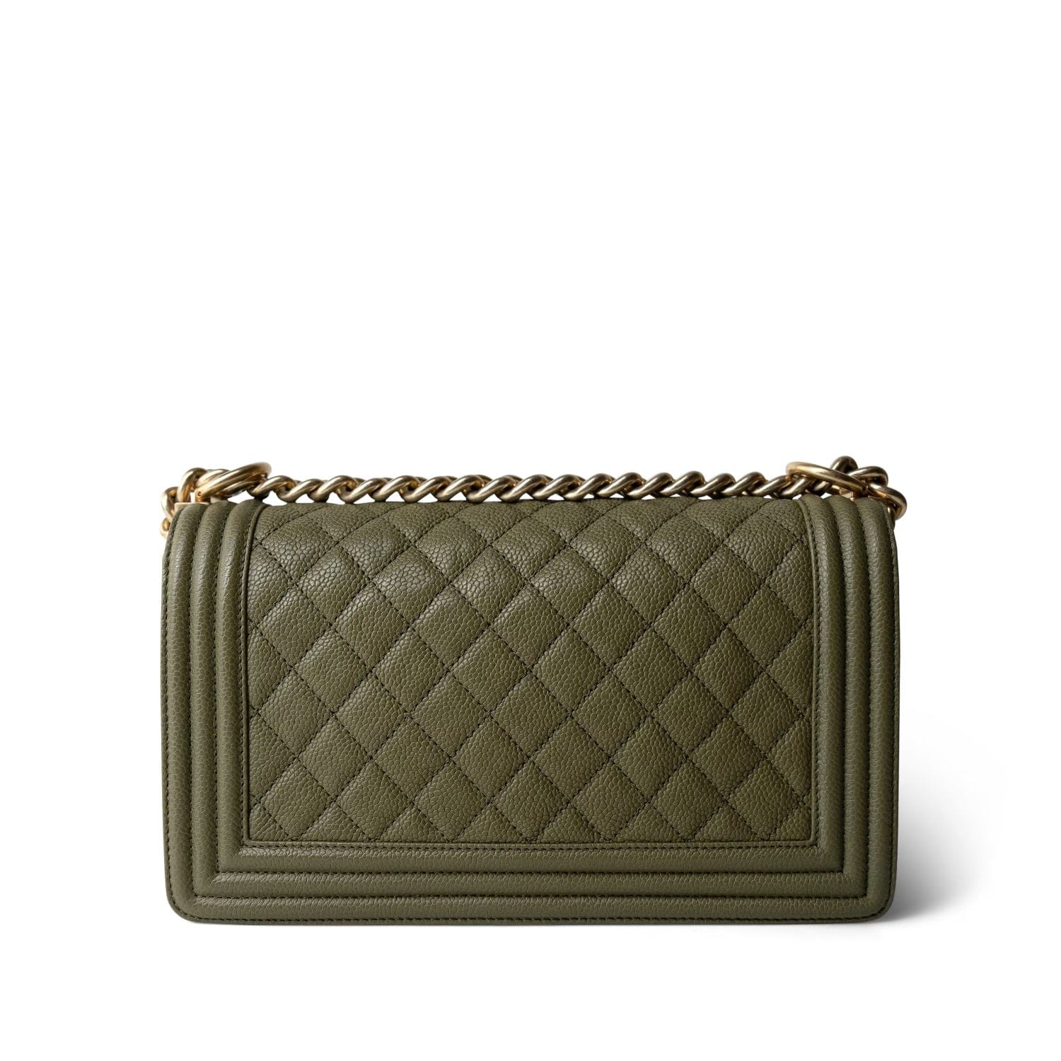 Khaki Caviar Quilted Old Medium Boy Bag Aged Gold Hardware