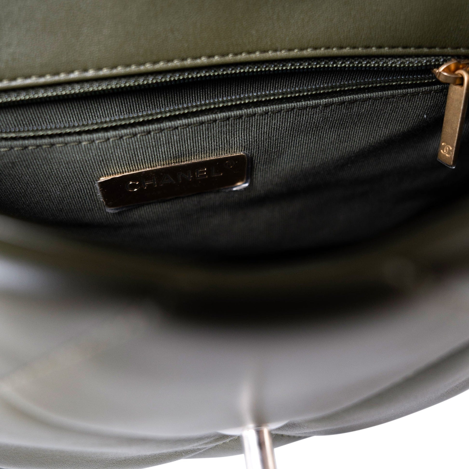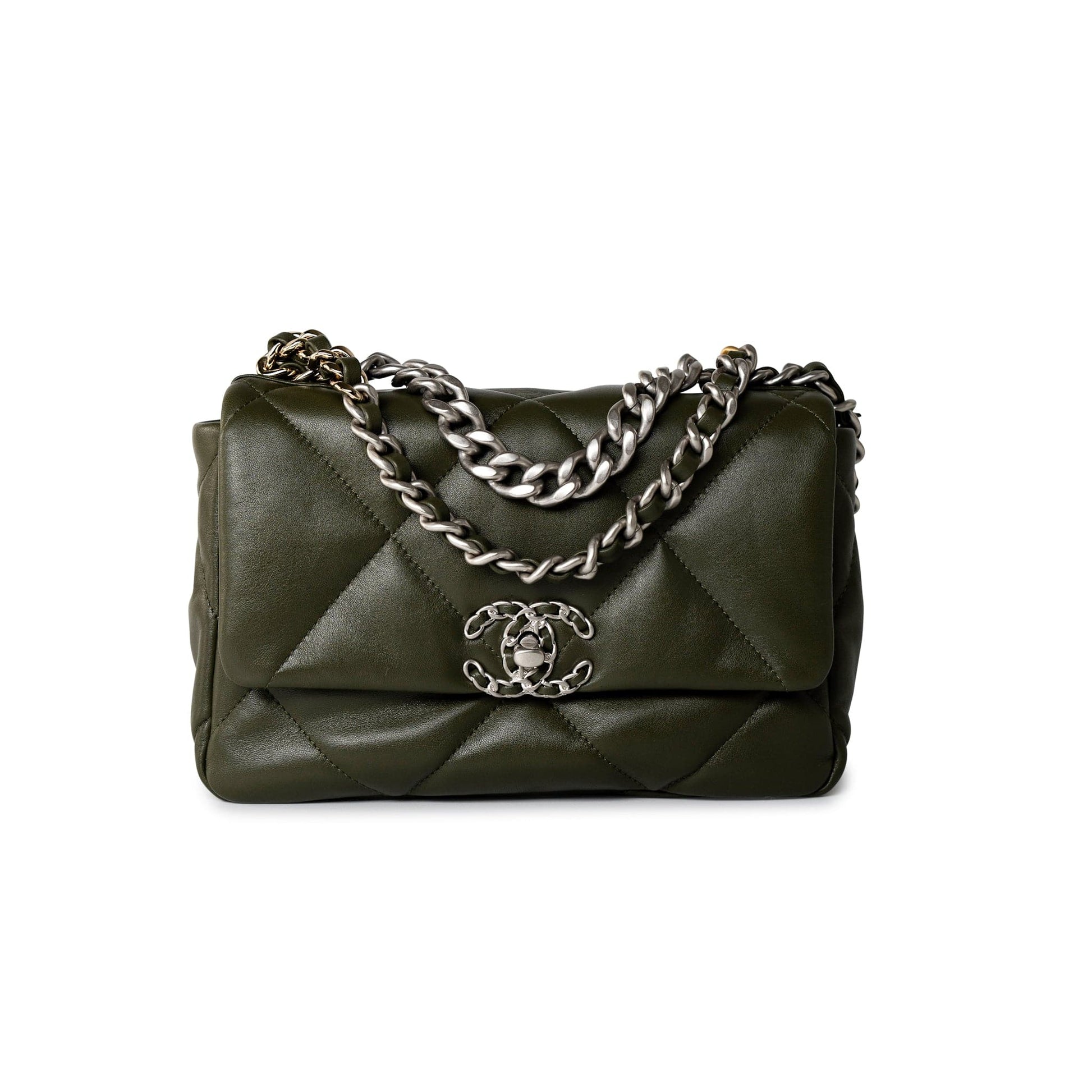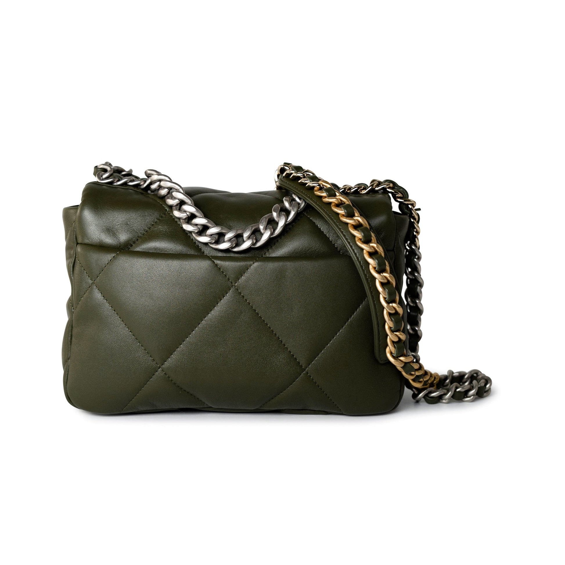 Khaki/ Olive Green Lambskin Quilted 19 Flap Small