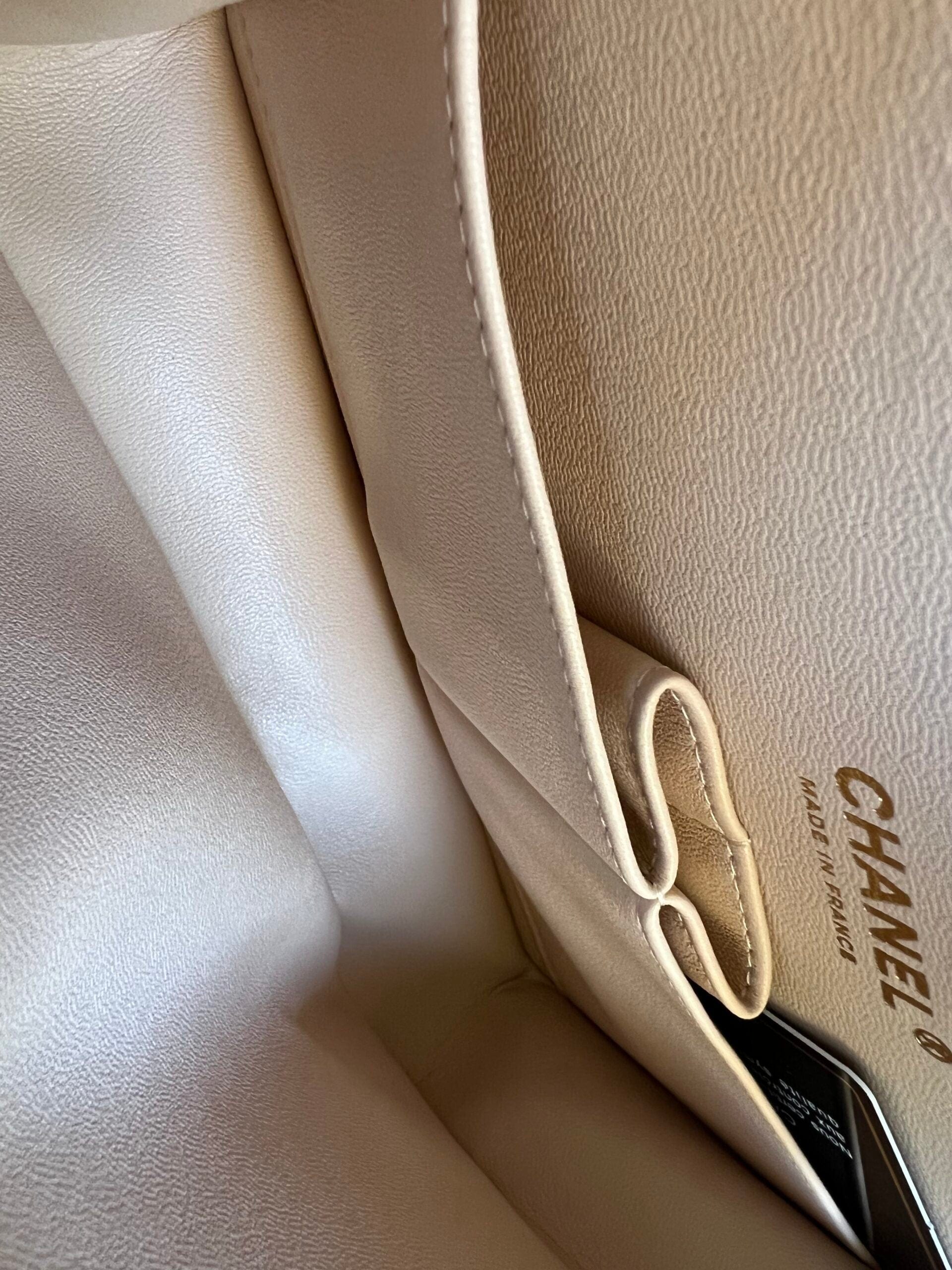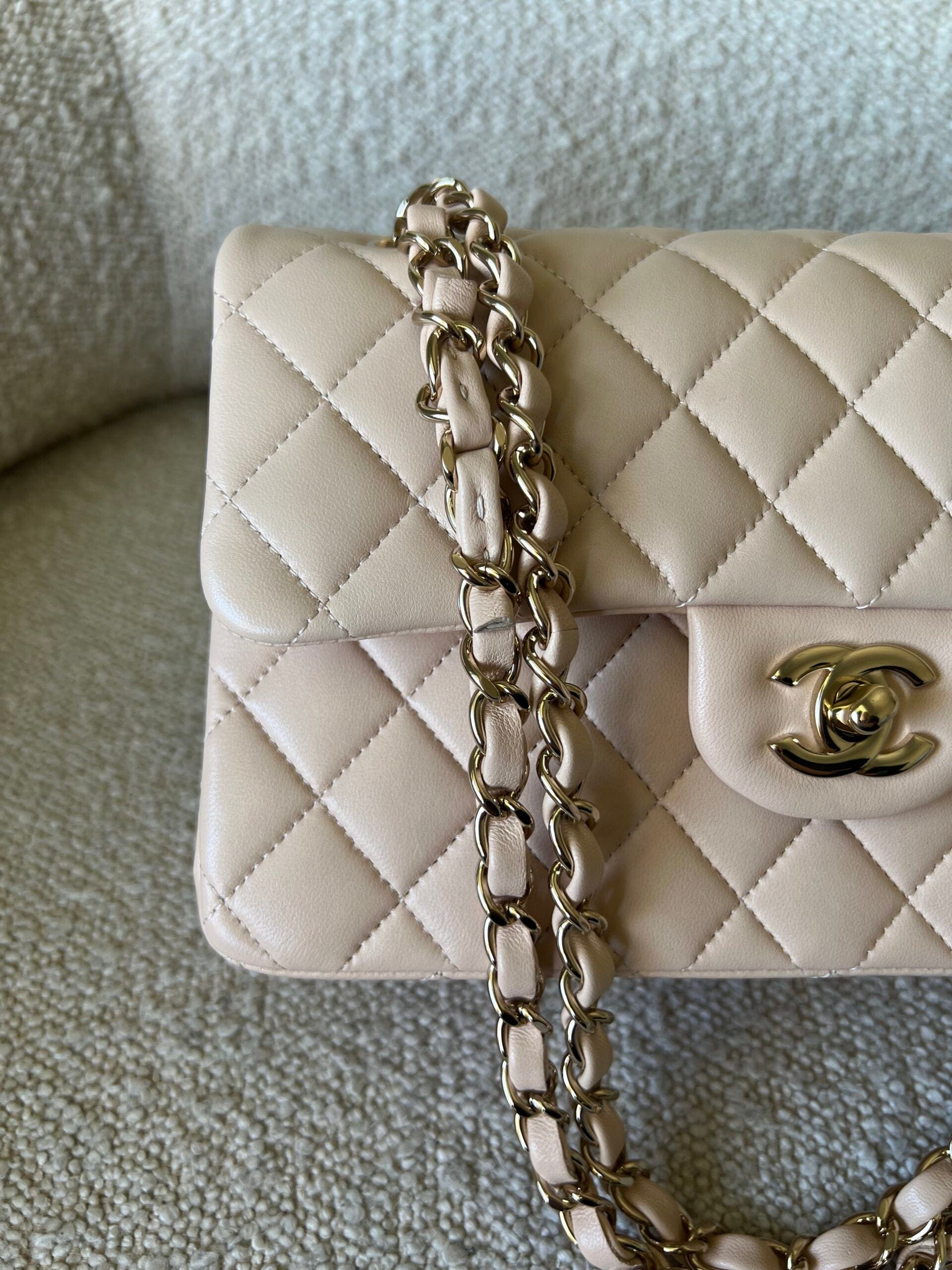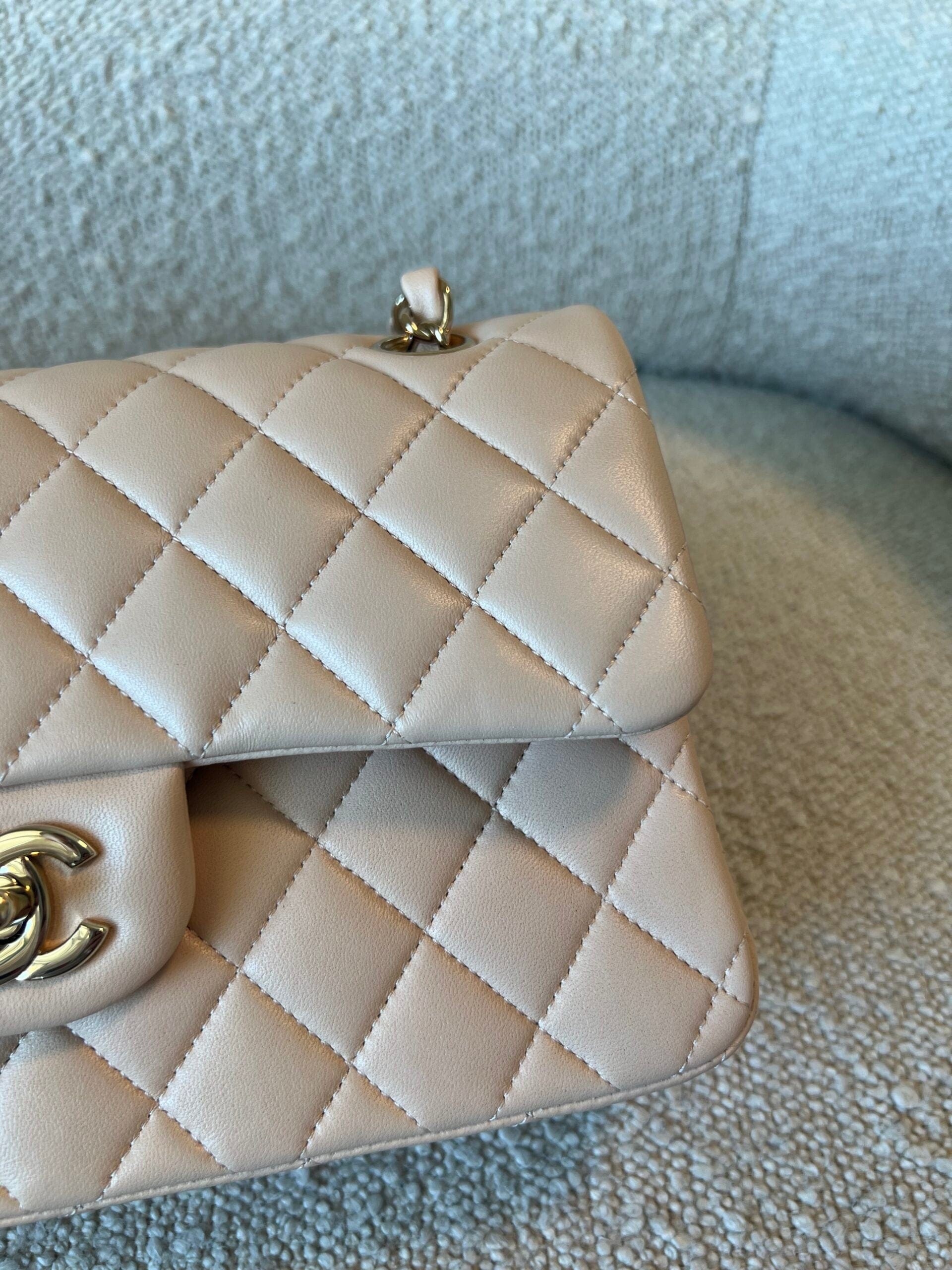 Light Beige Lambskin Quilted Classic Double Flap Small Light Gold Hardware
