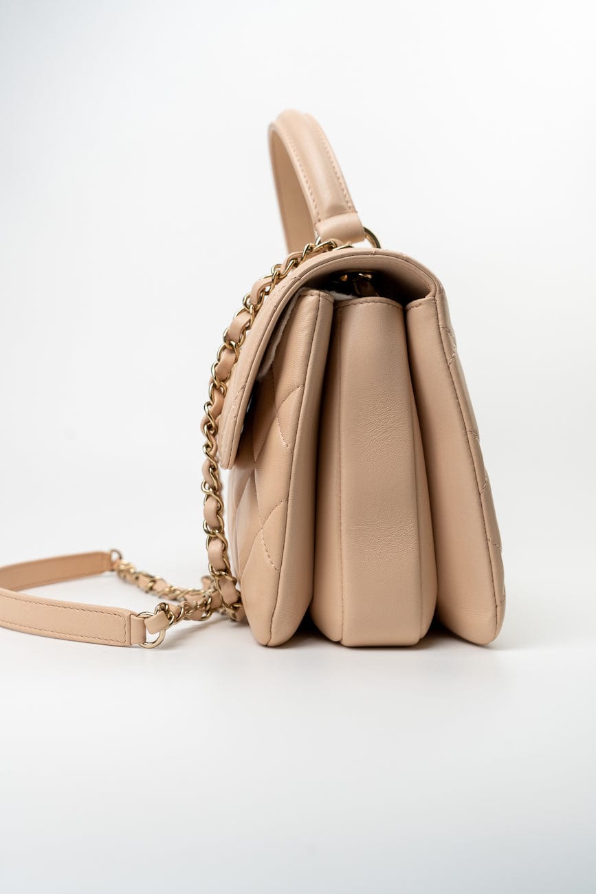 Light Beige Lambskin Quilted Trendy CC Small LGHW