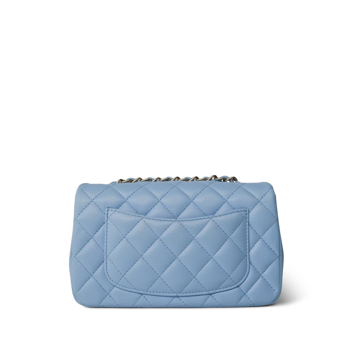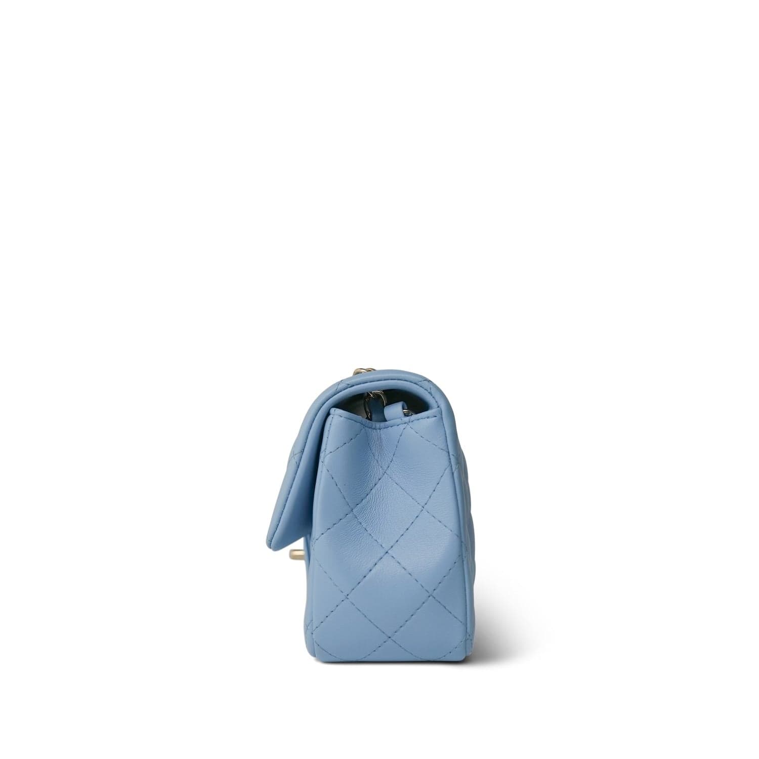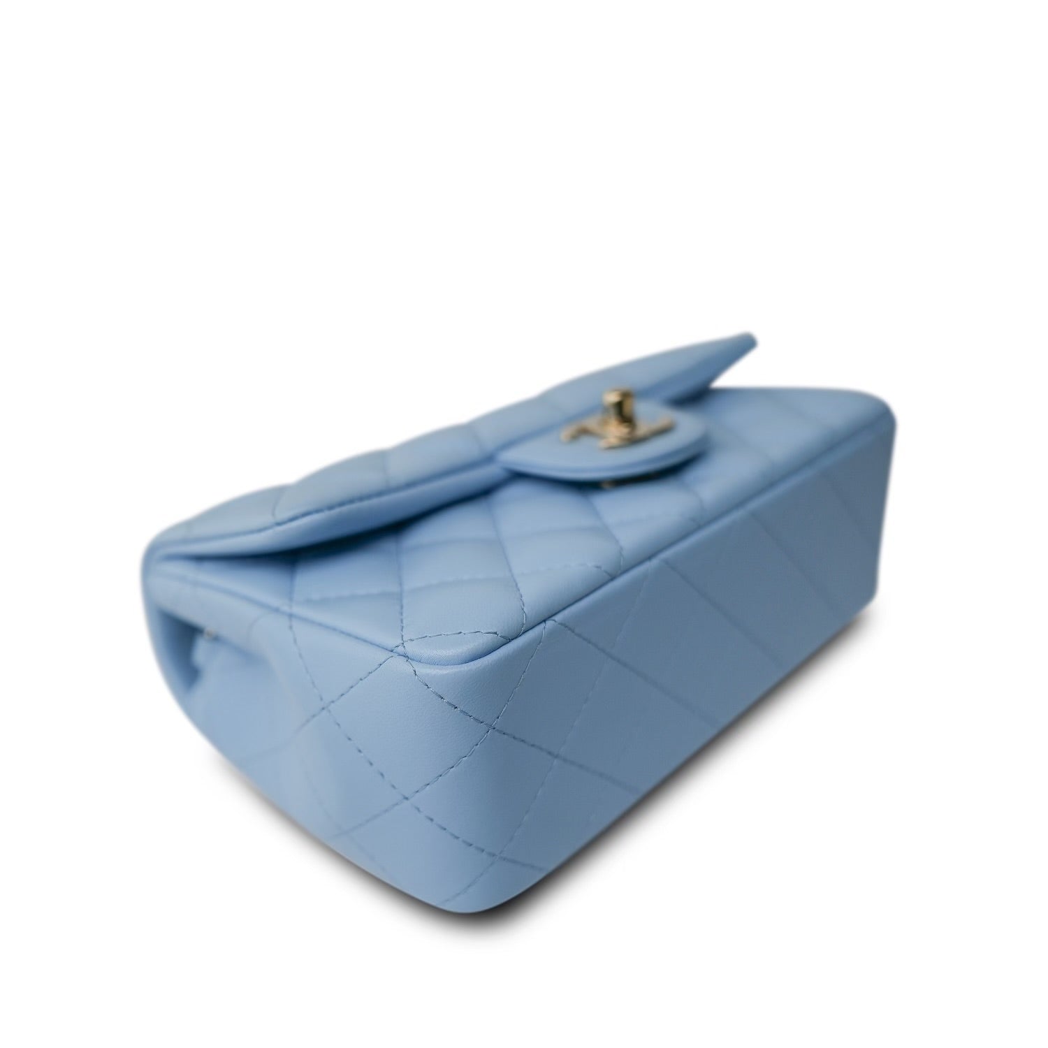 Light Blue Lambskin Quilted Mini Rectangular Flap LGHW