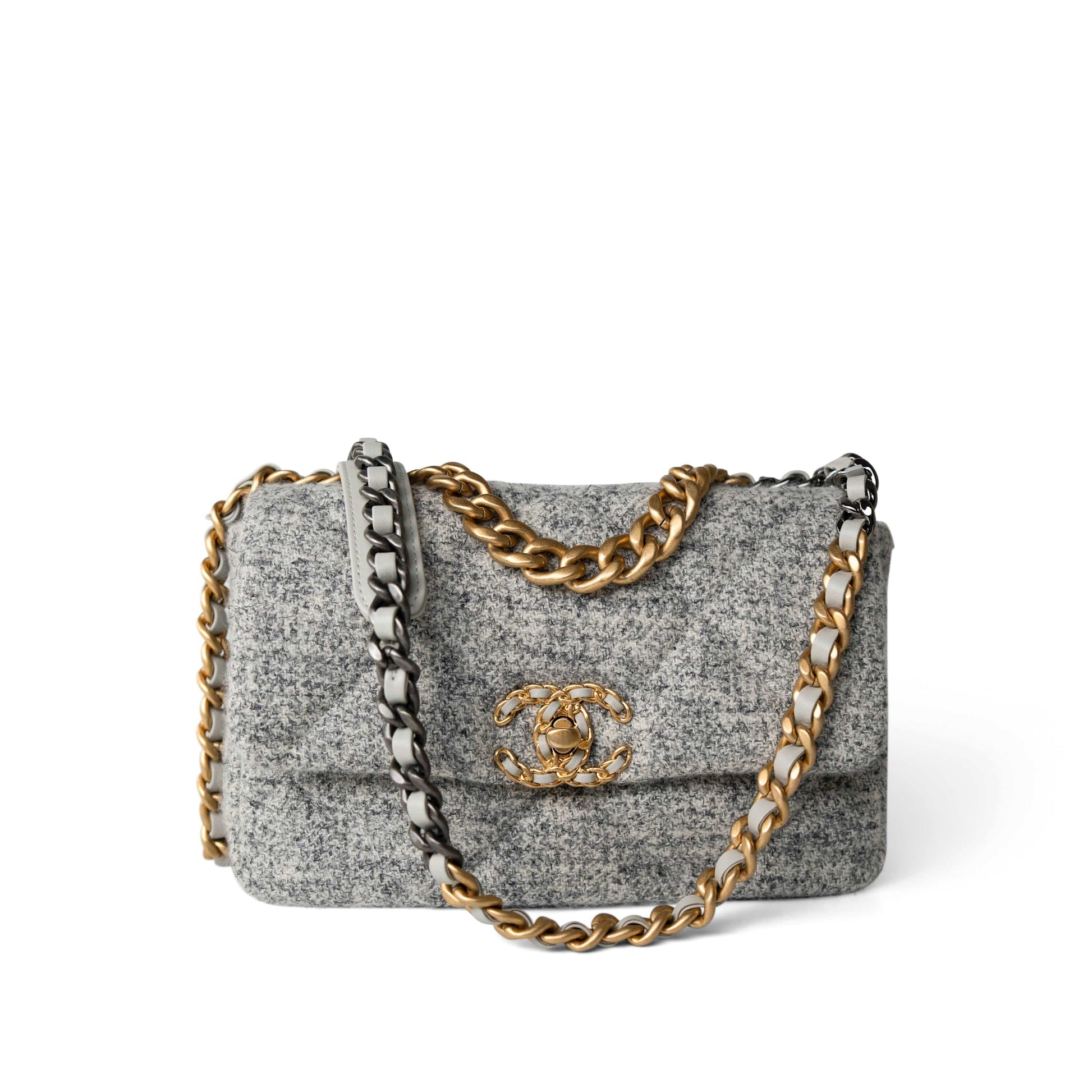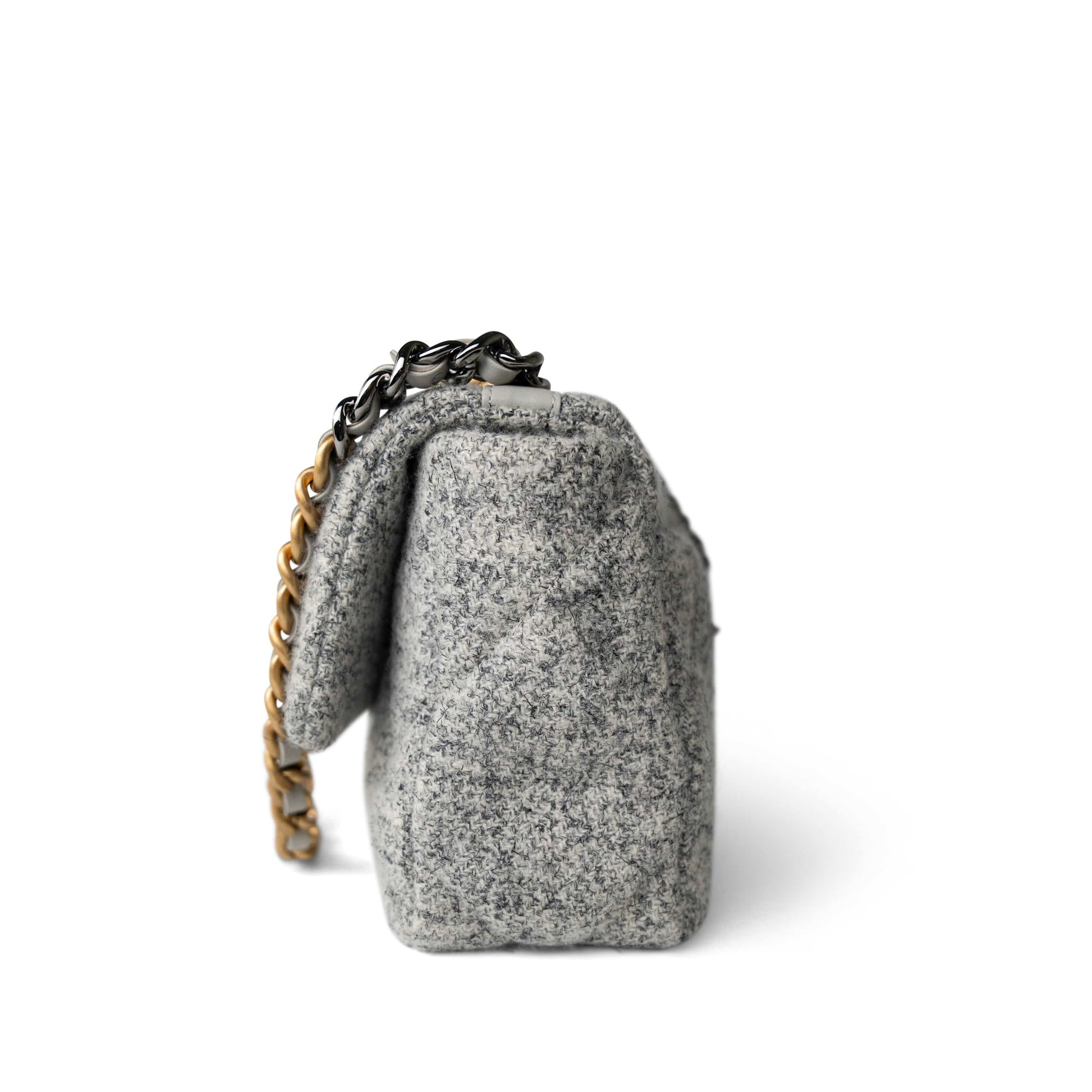 Light Grey Ecru Quilted 19 Flap Small Mixed Hardware