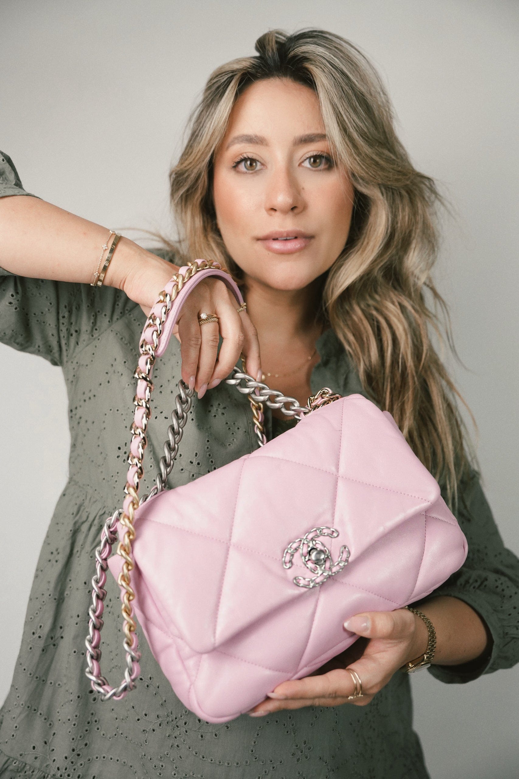 Light Pink Lambskin Quilted 19 Flap Small MHW
