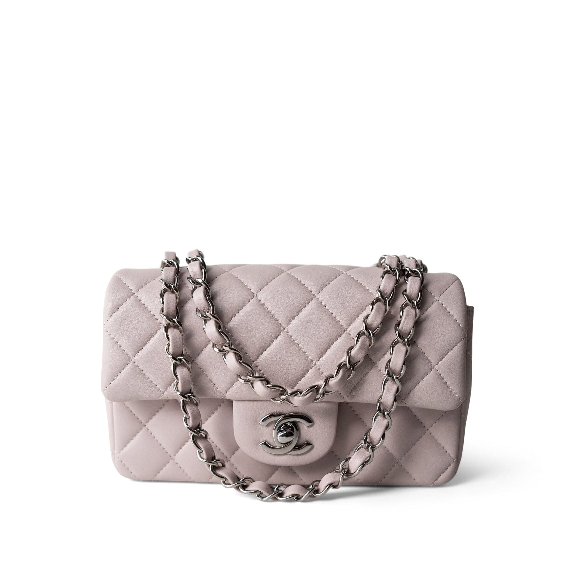 21B Lilac Lambskin Quilted Mini Rectangular Flap Silver Hardware