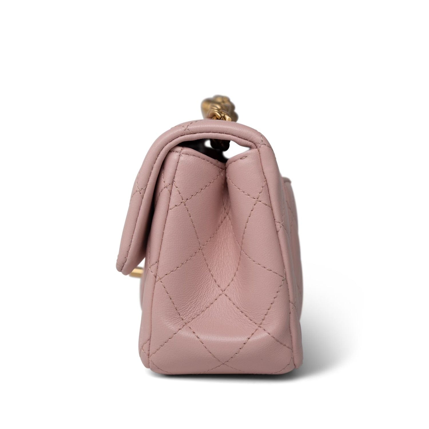 Light Pink Lambskin Quilted Sweet Camelia Single Flap Aged GHW