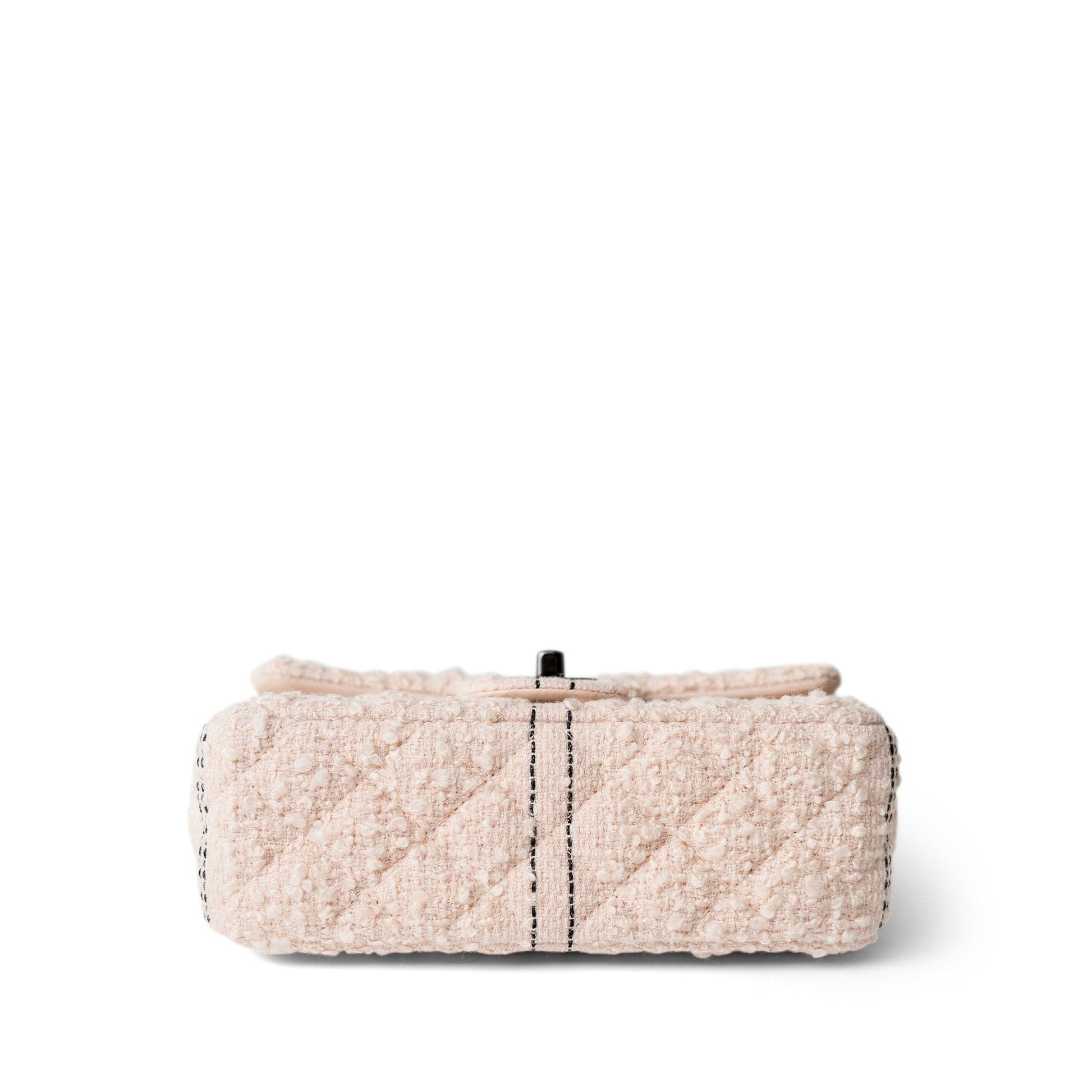 Light Pink Tweed Quilted Mini Rectangular Single Flap Black Metal Hardware