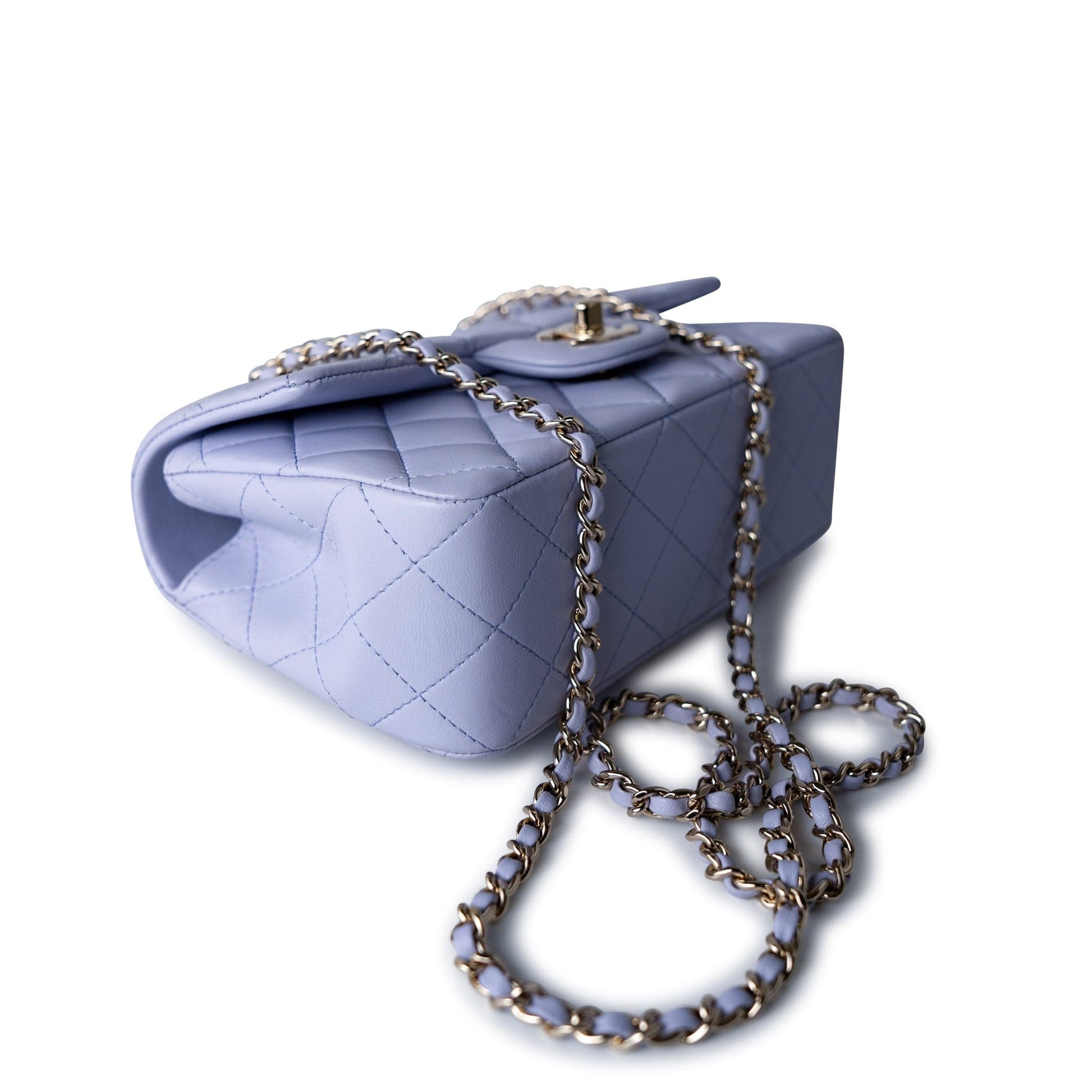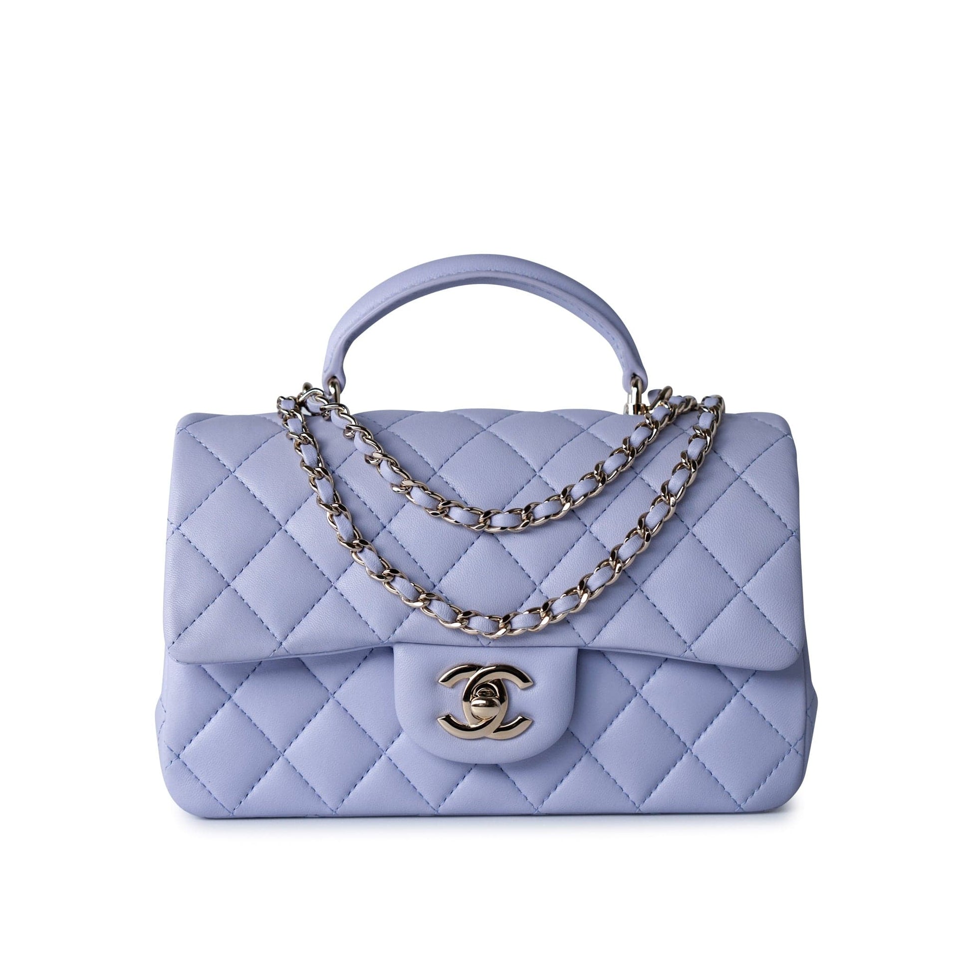 21k Lavender/ Light Purple Lambskin Quilted Mini Top Handle Light Gold Hardware